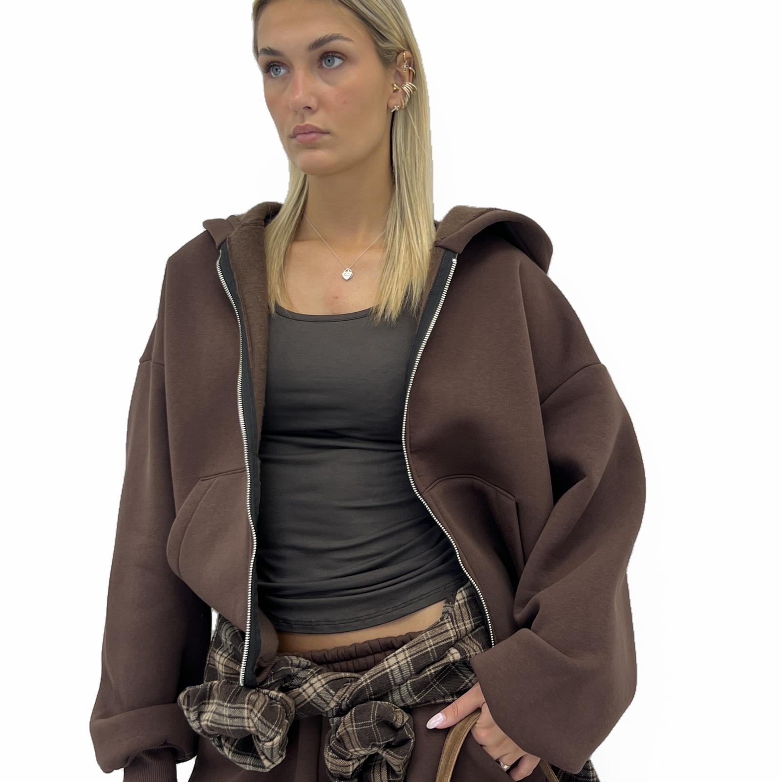 Felpa con cappuccio, zip e tasche sul davanti