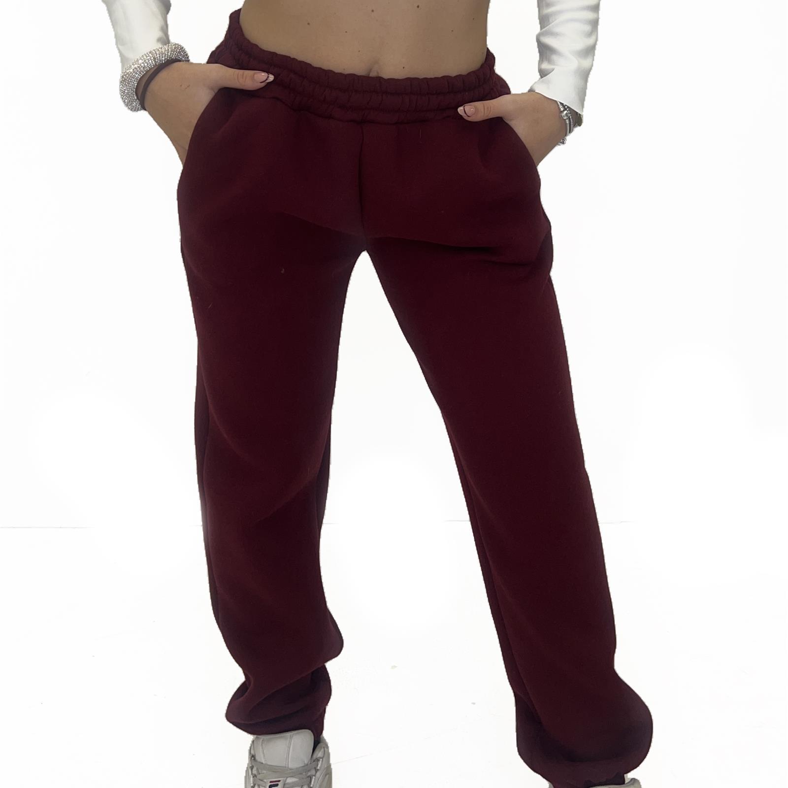 Pantalone felpato con elastico in vita, polsino e tasche laterli