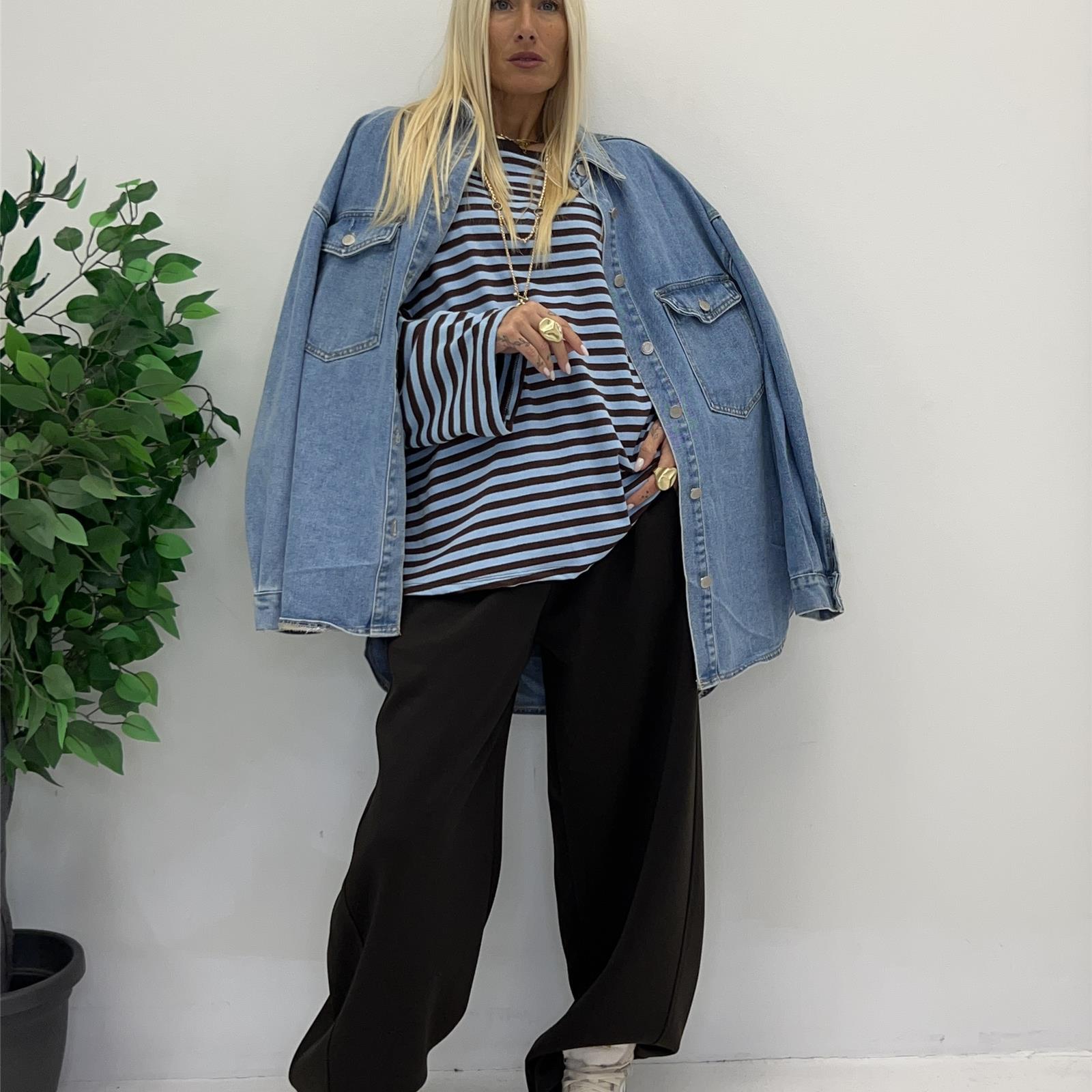 Pantalone con elastico e laccio in vita, tasche laterali , modello balloon bielastico. banda laterale (12cm)