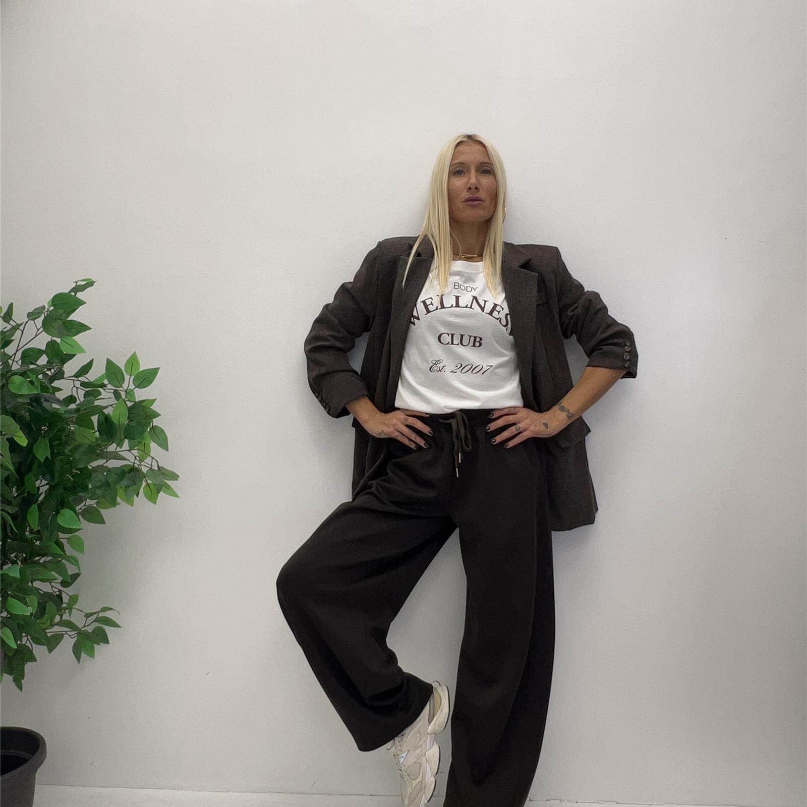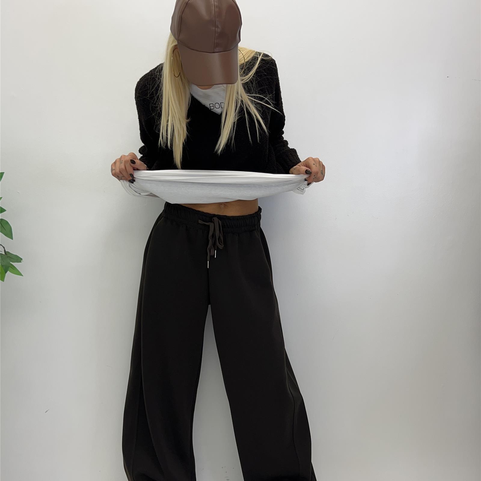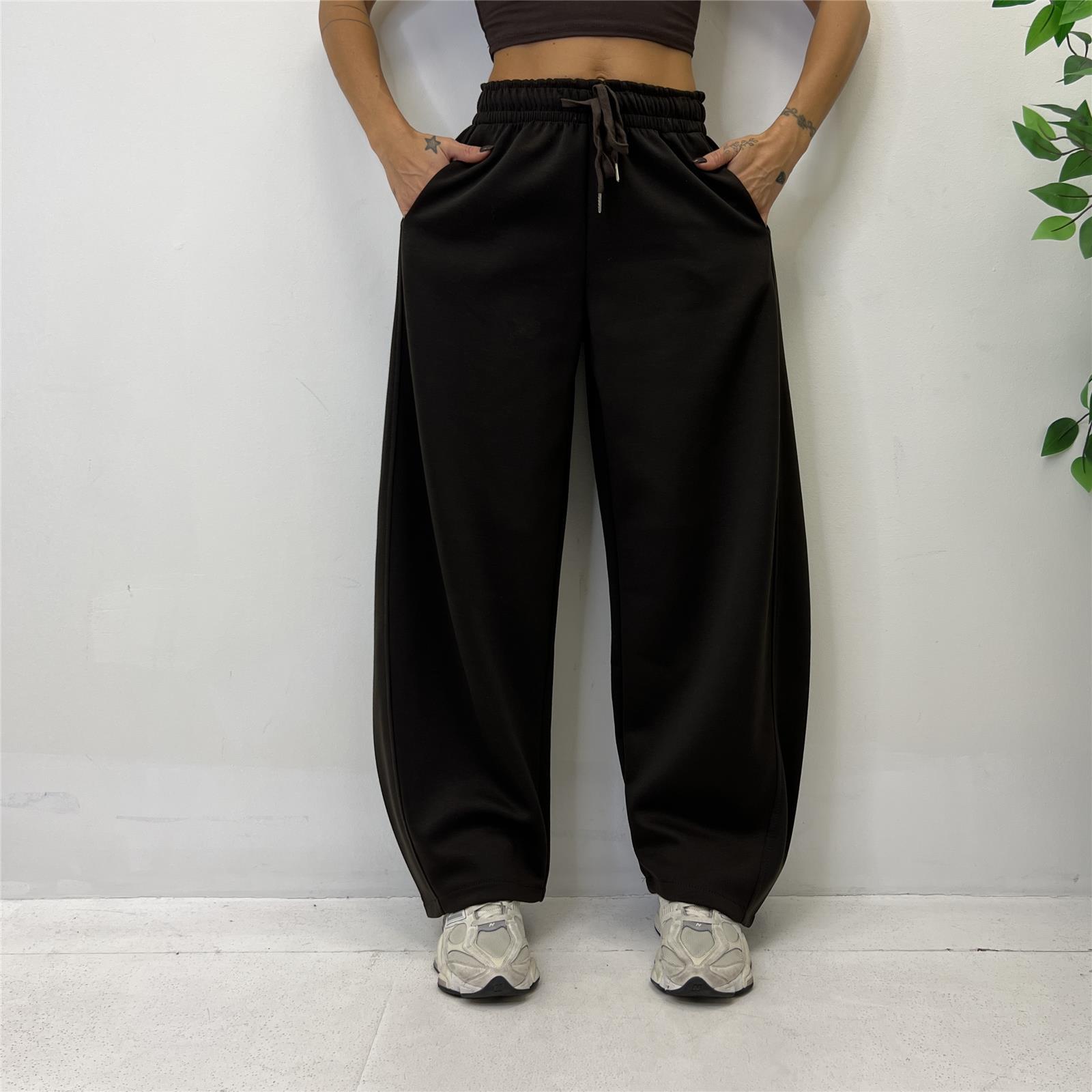 Pantalone con elastico e laccio in vita, tasche laterali , modello balloon bielastico. banda laterale (12cm)