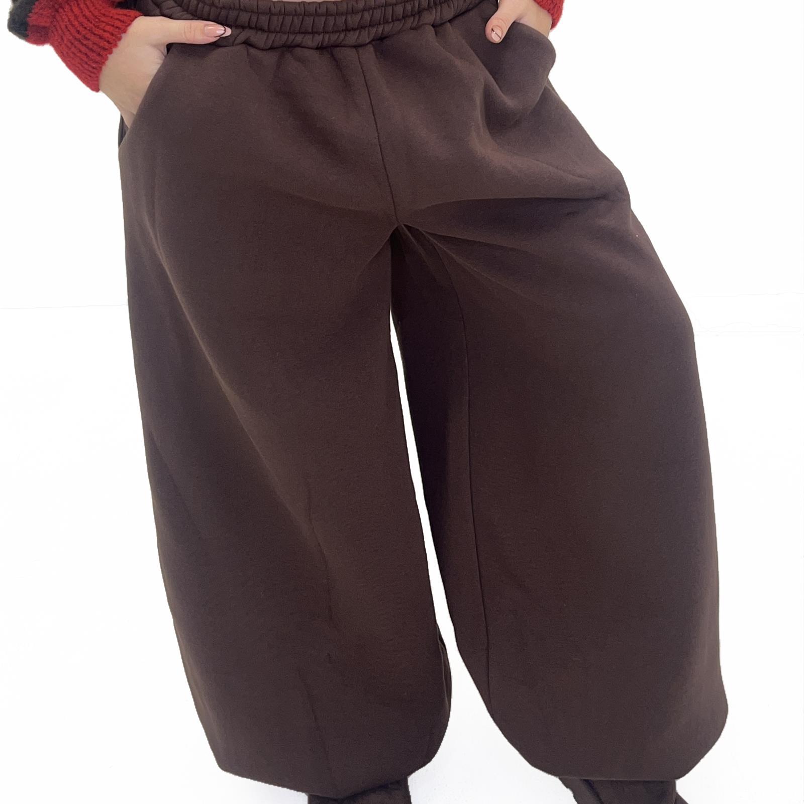 Pantalone modello balloon , polsino sul fondo, con elastico in vita, tasche laterali