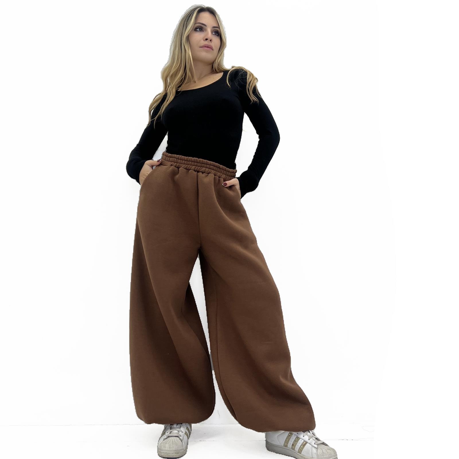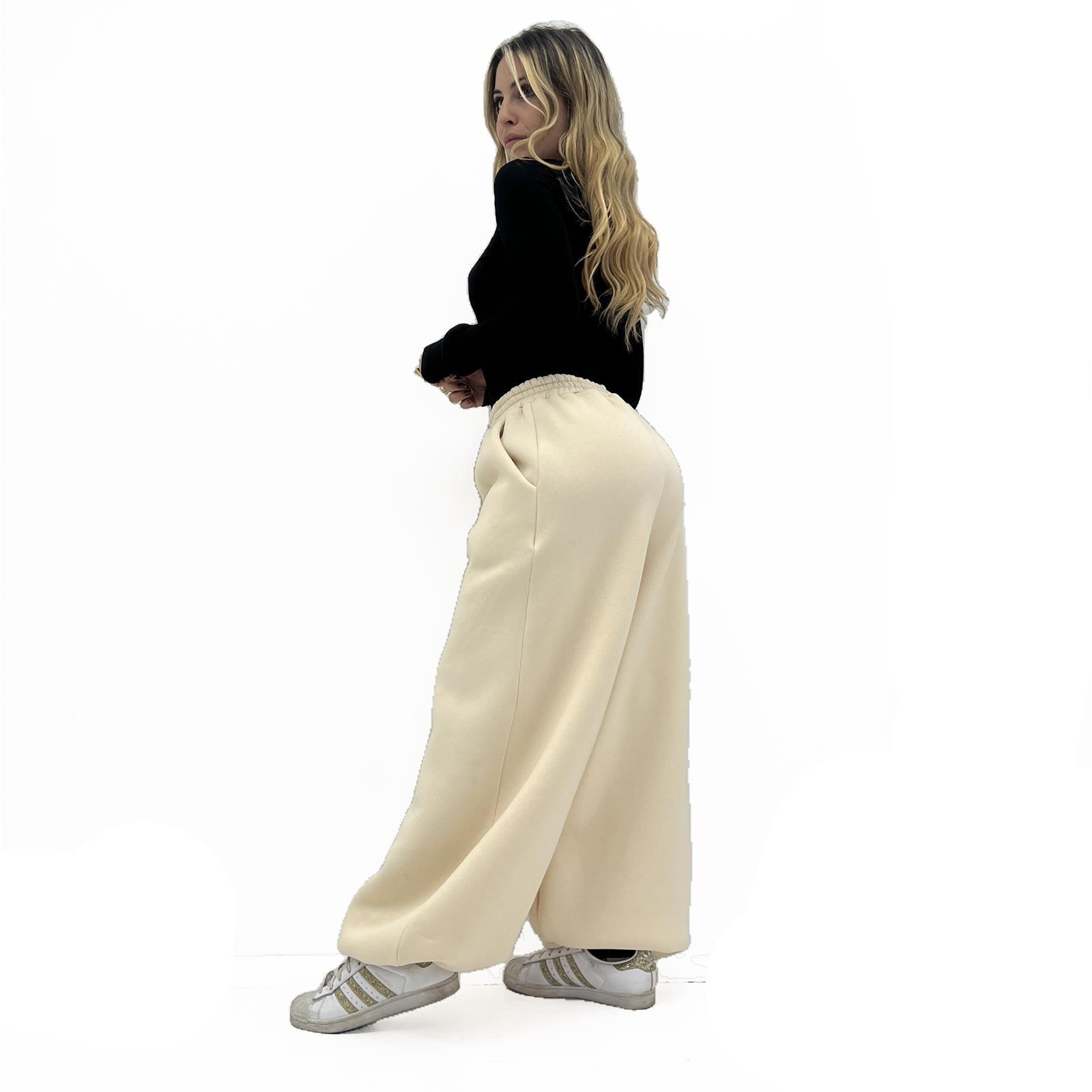 Pantalone modello balloon , polsino sul fondo, con elastico in vita, tasche laterali