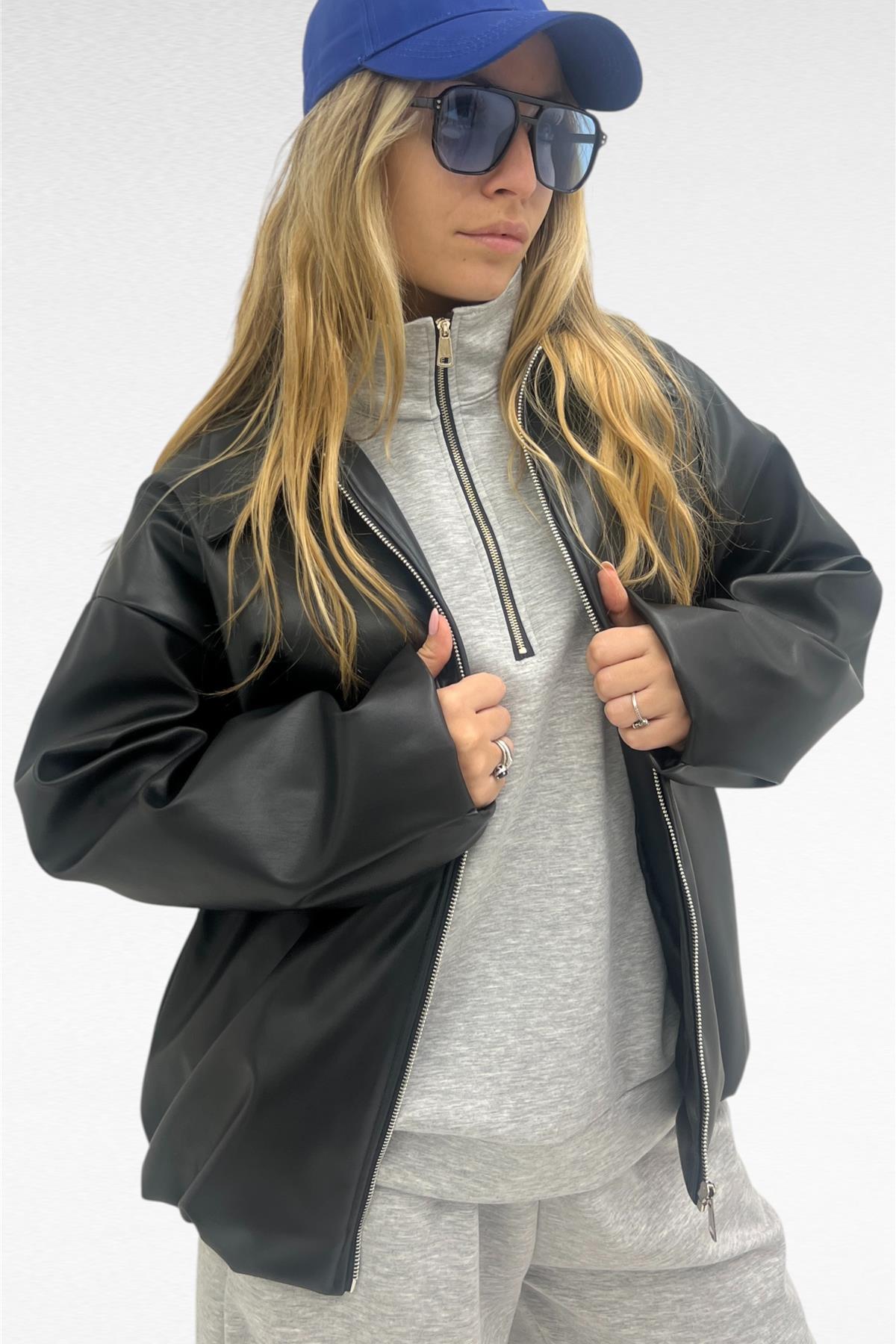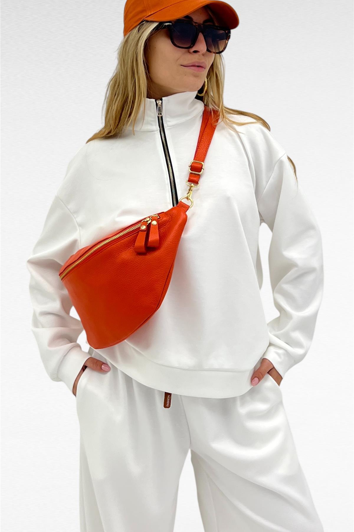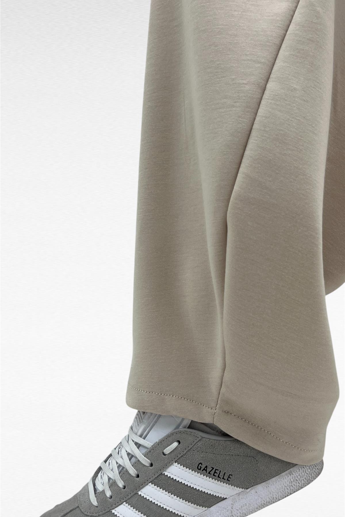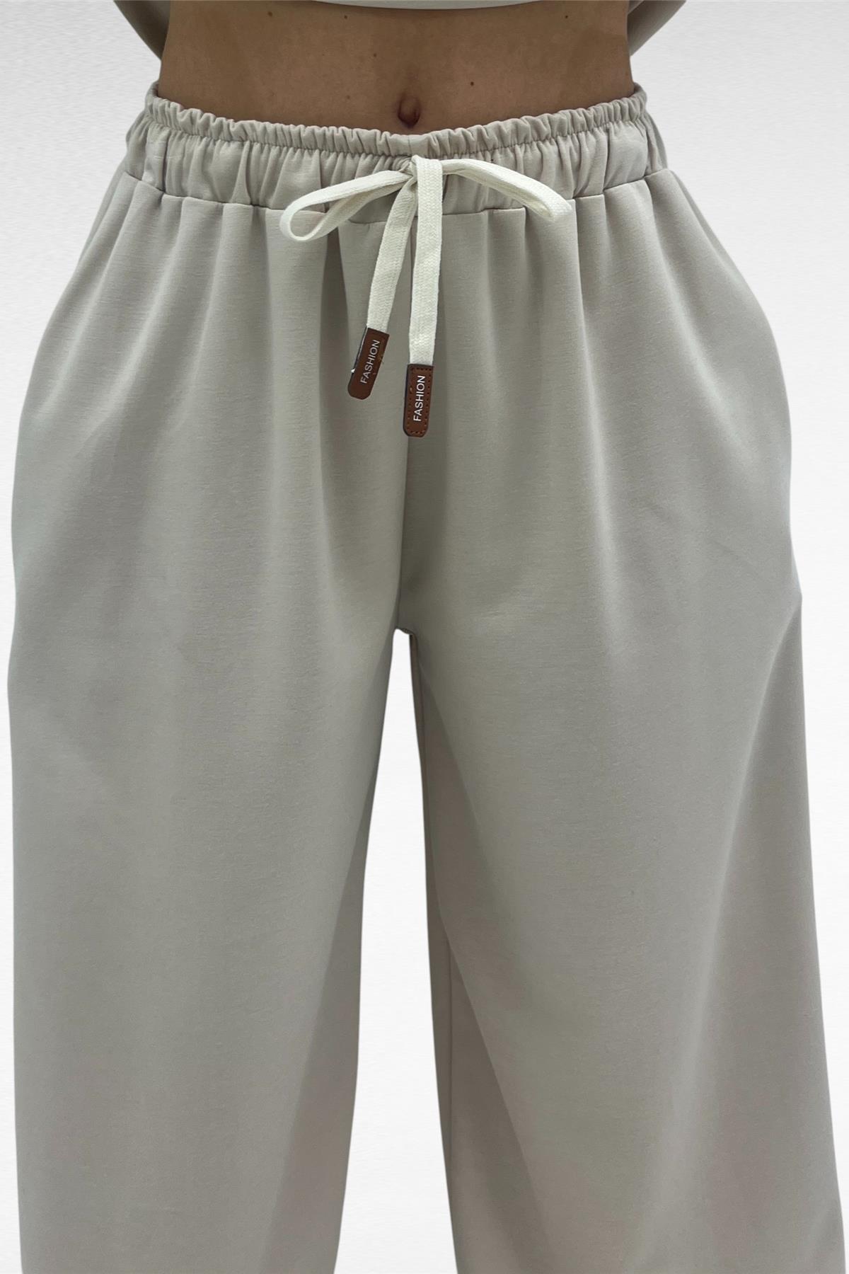 Completo due pezzi con felpa mezza zip e pantalone gamba larga con elastico in vita e laccio regolabile, tessuto elasticizzato.