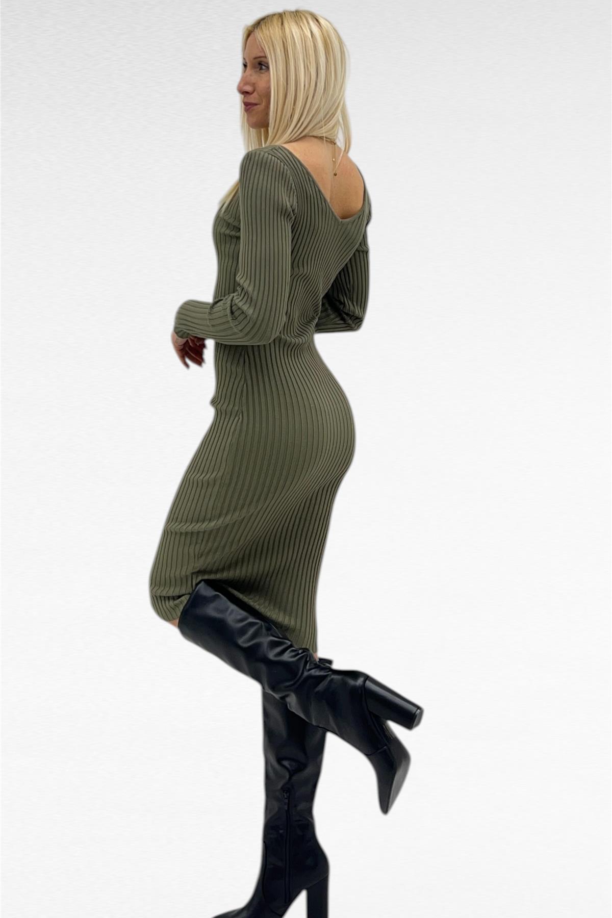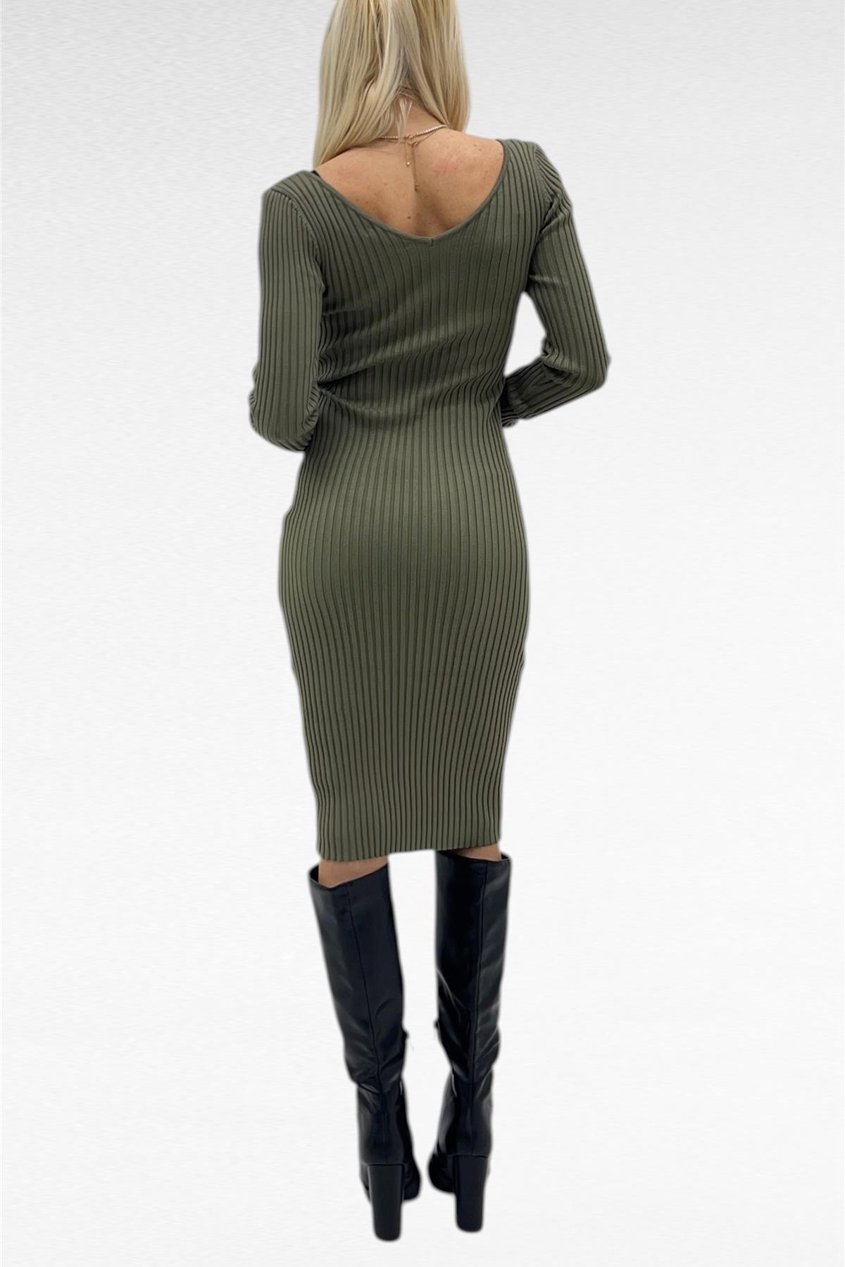 Abito con scollo a V e in costina larga.