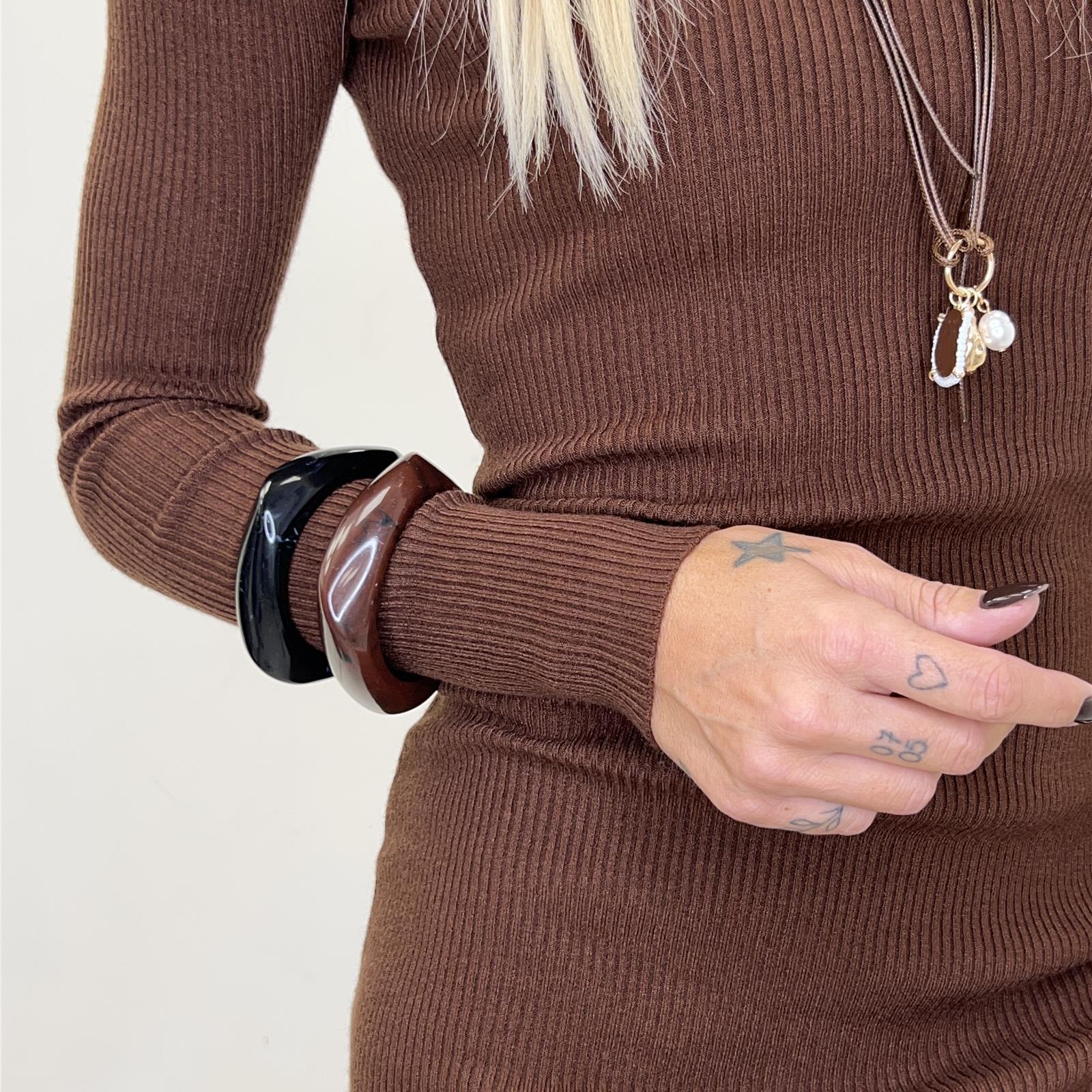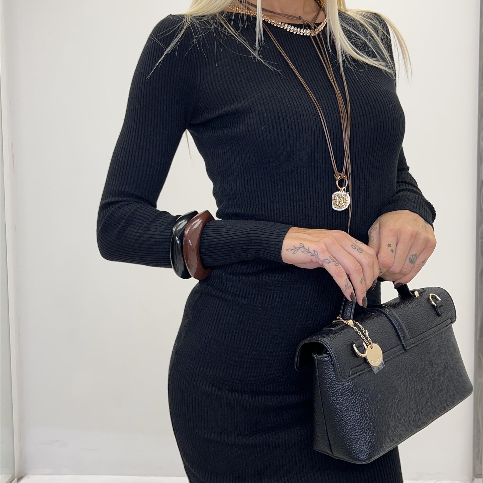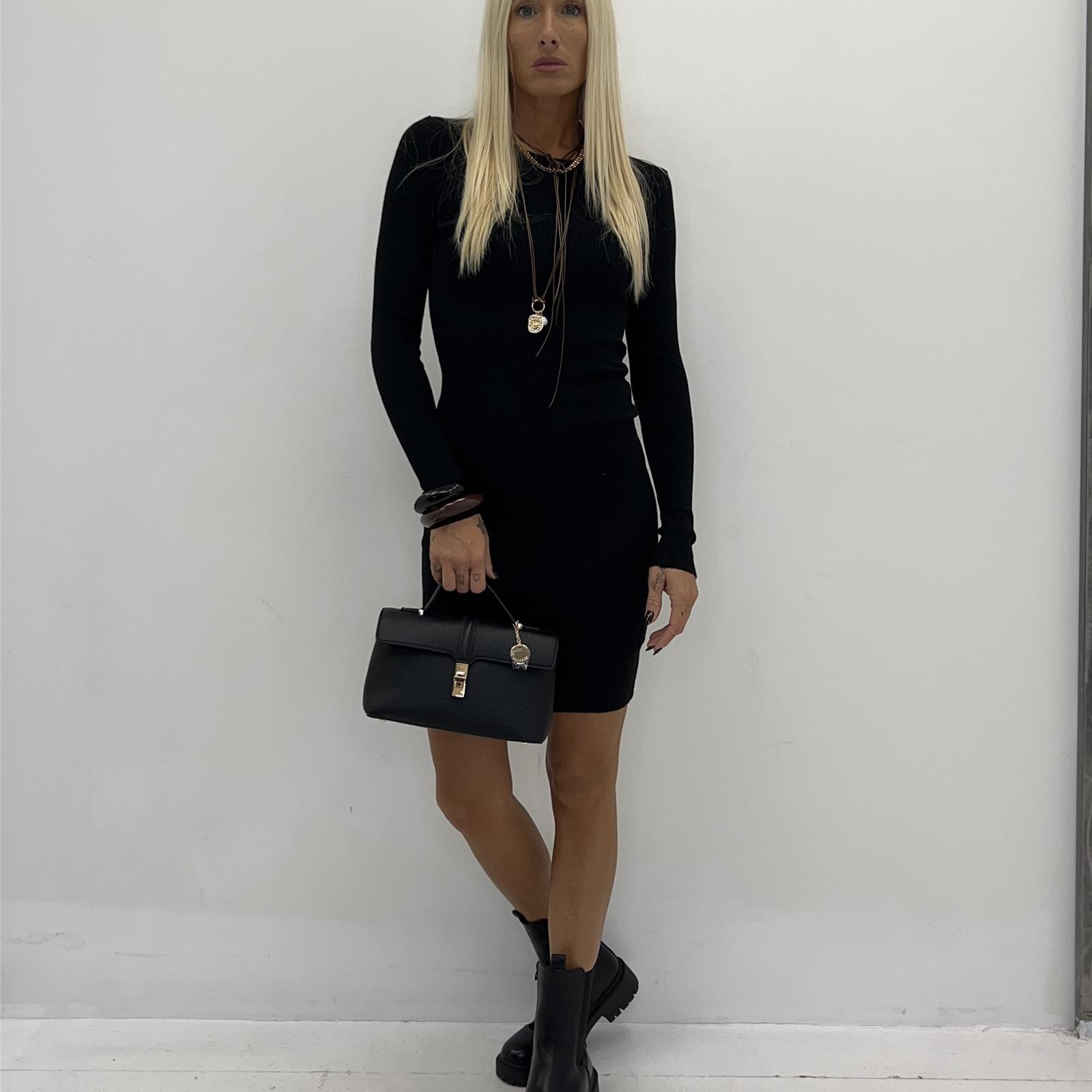 Abito in costina girocollo, manica lunga