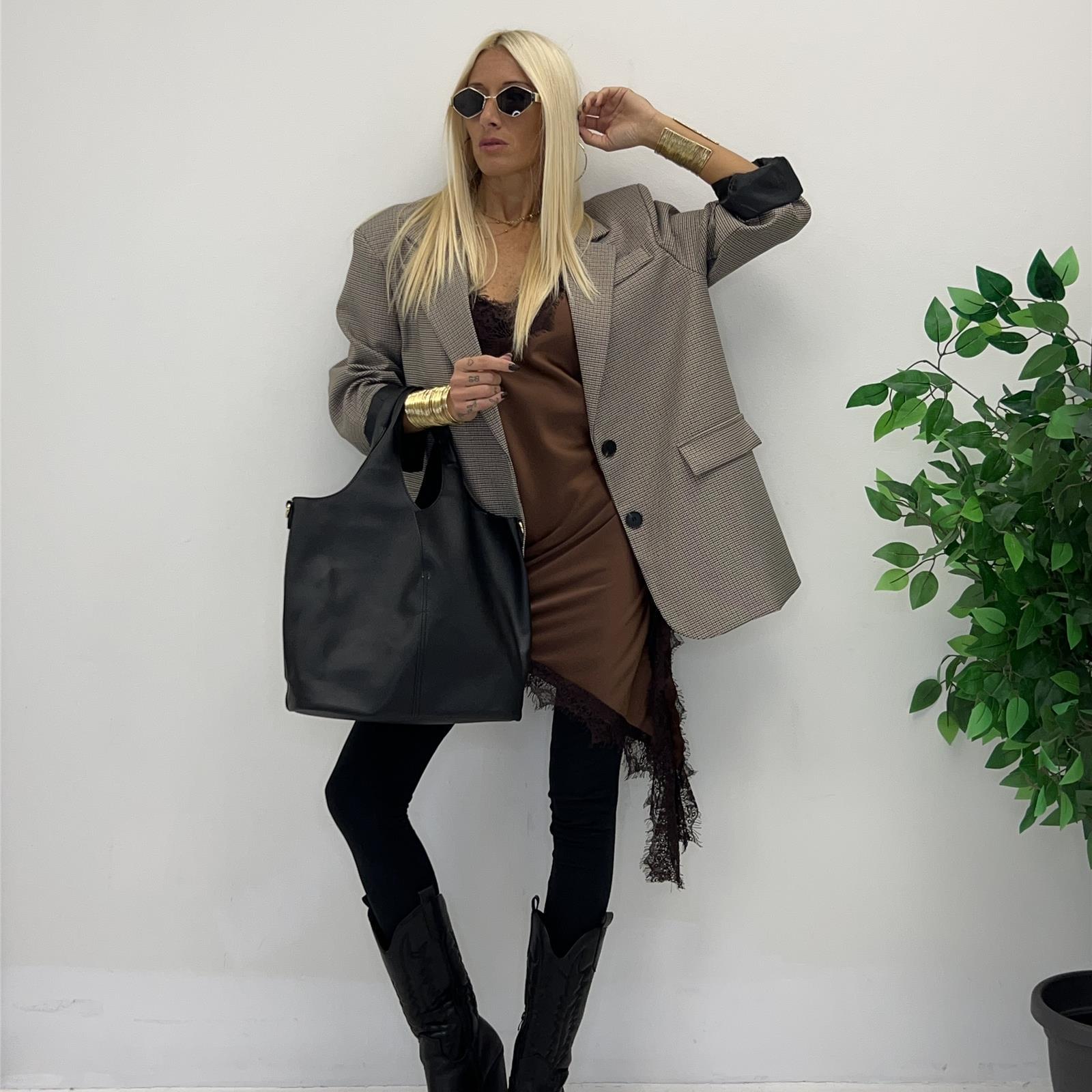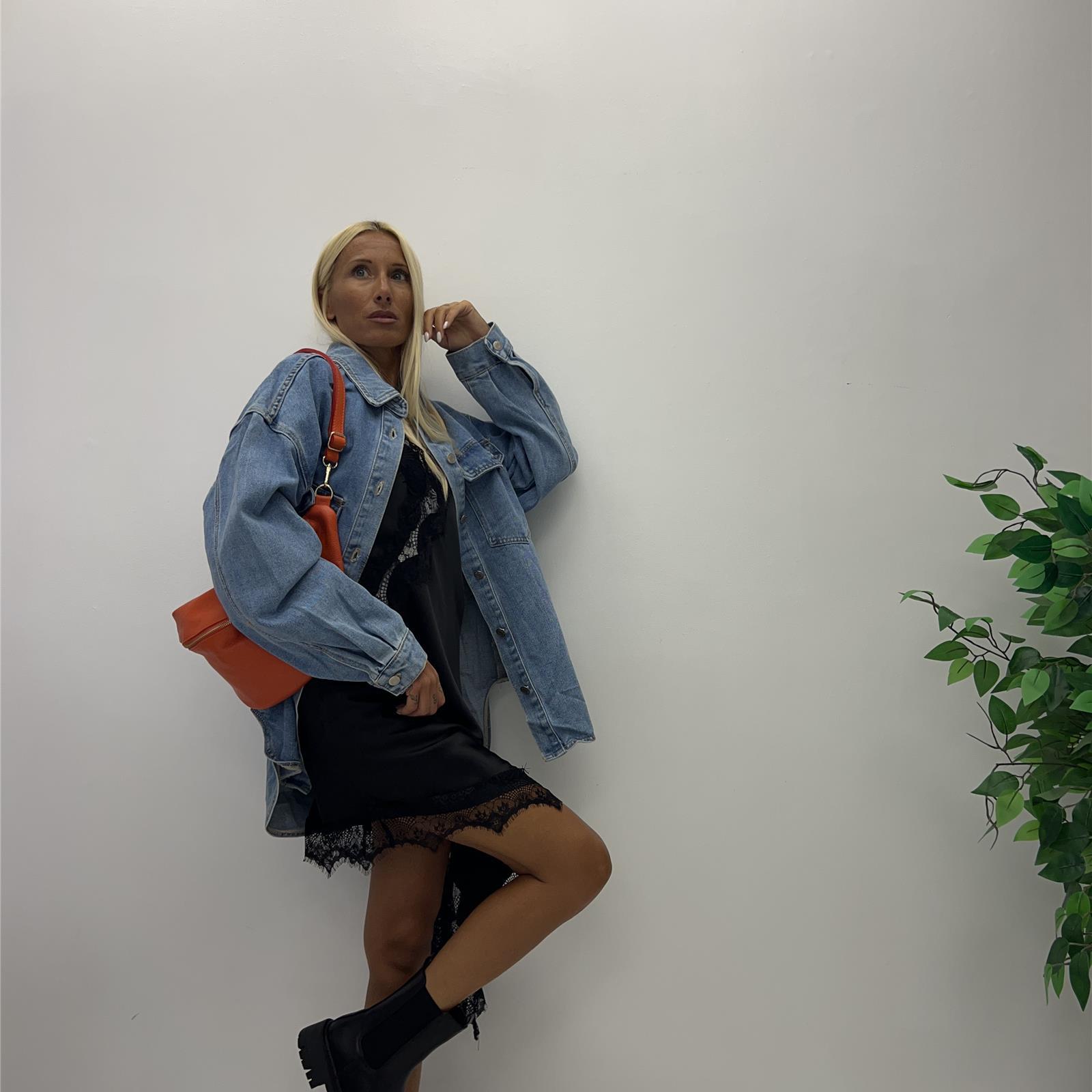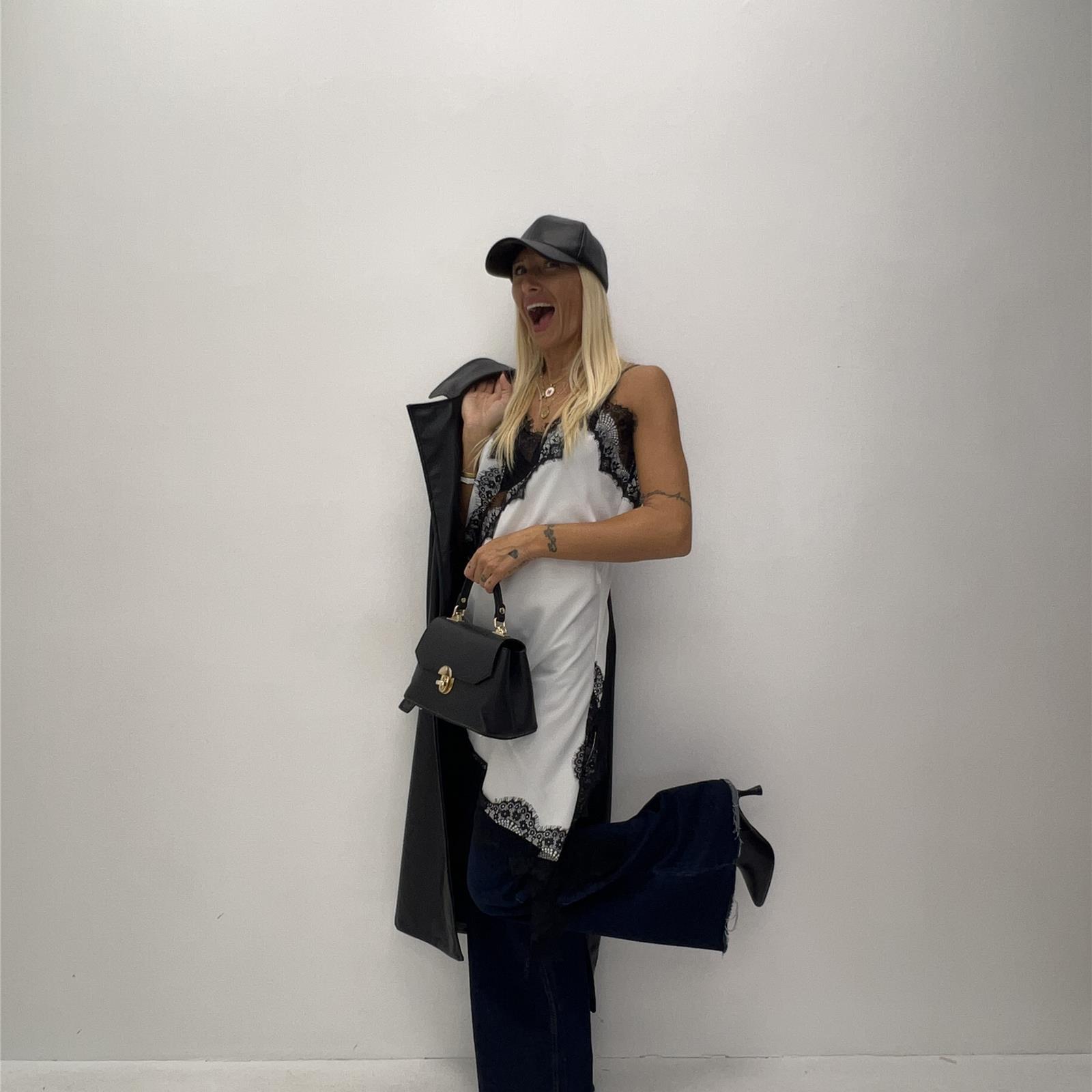 Abito effetto raso spallino fine applicazioni in pizzo asimmetrico