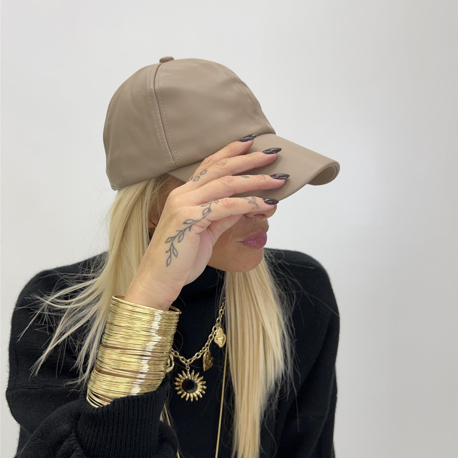 Cappello in ecopelle con visiera
