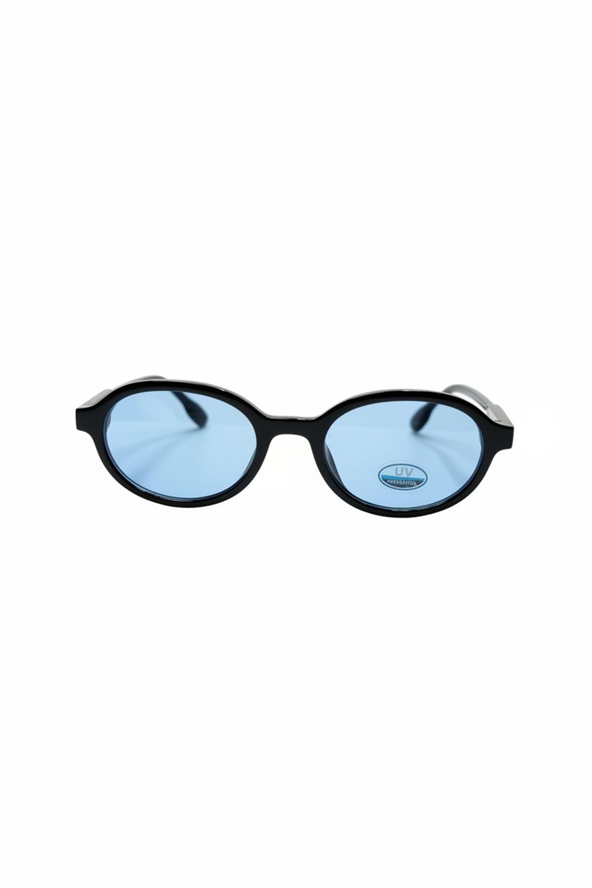 montatura nera lucida con lente celeste,