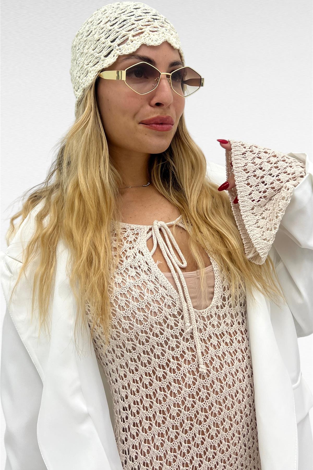 Cuffia effetto uncinetto con paillettes