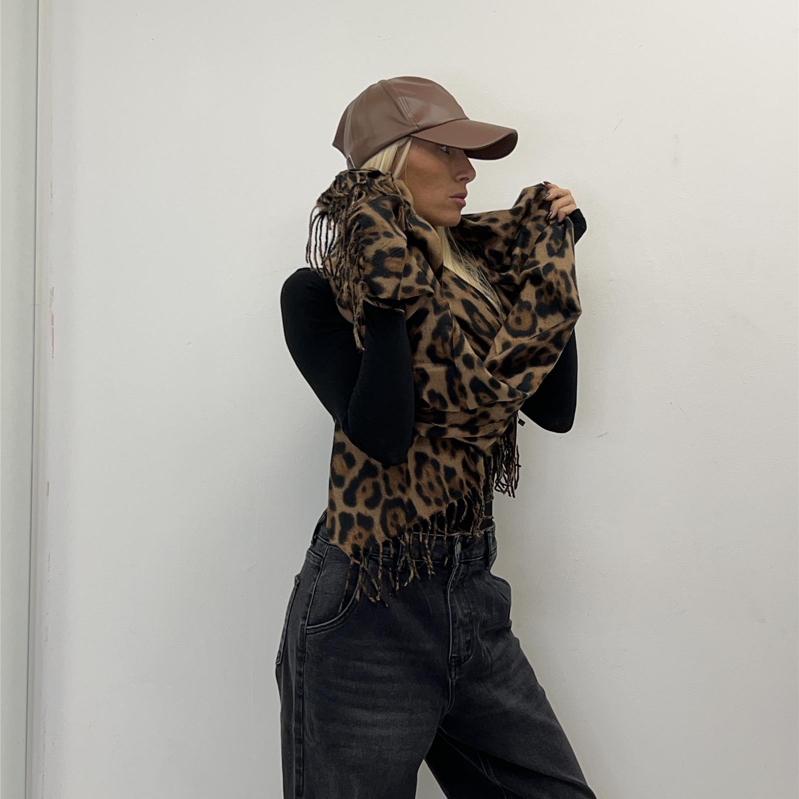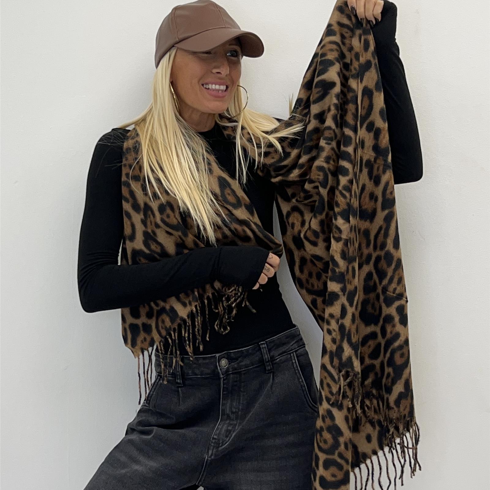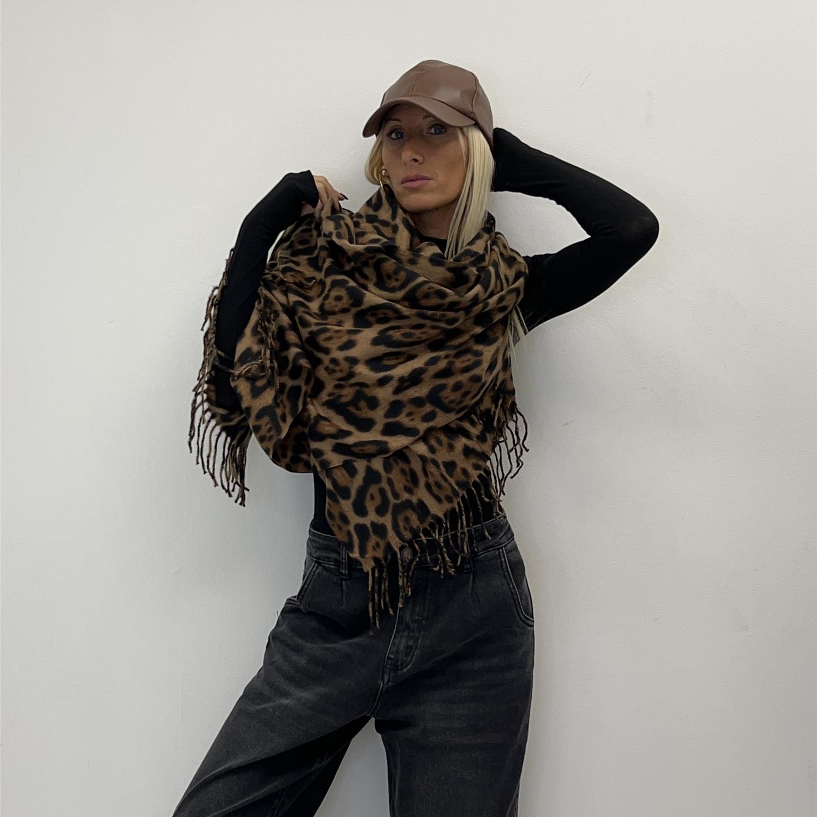 Maxi sciarpa in viscosa e cotone , frange all'estremità