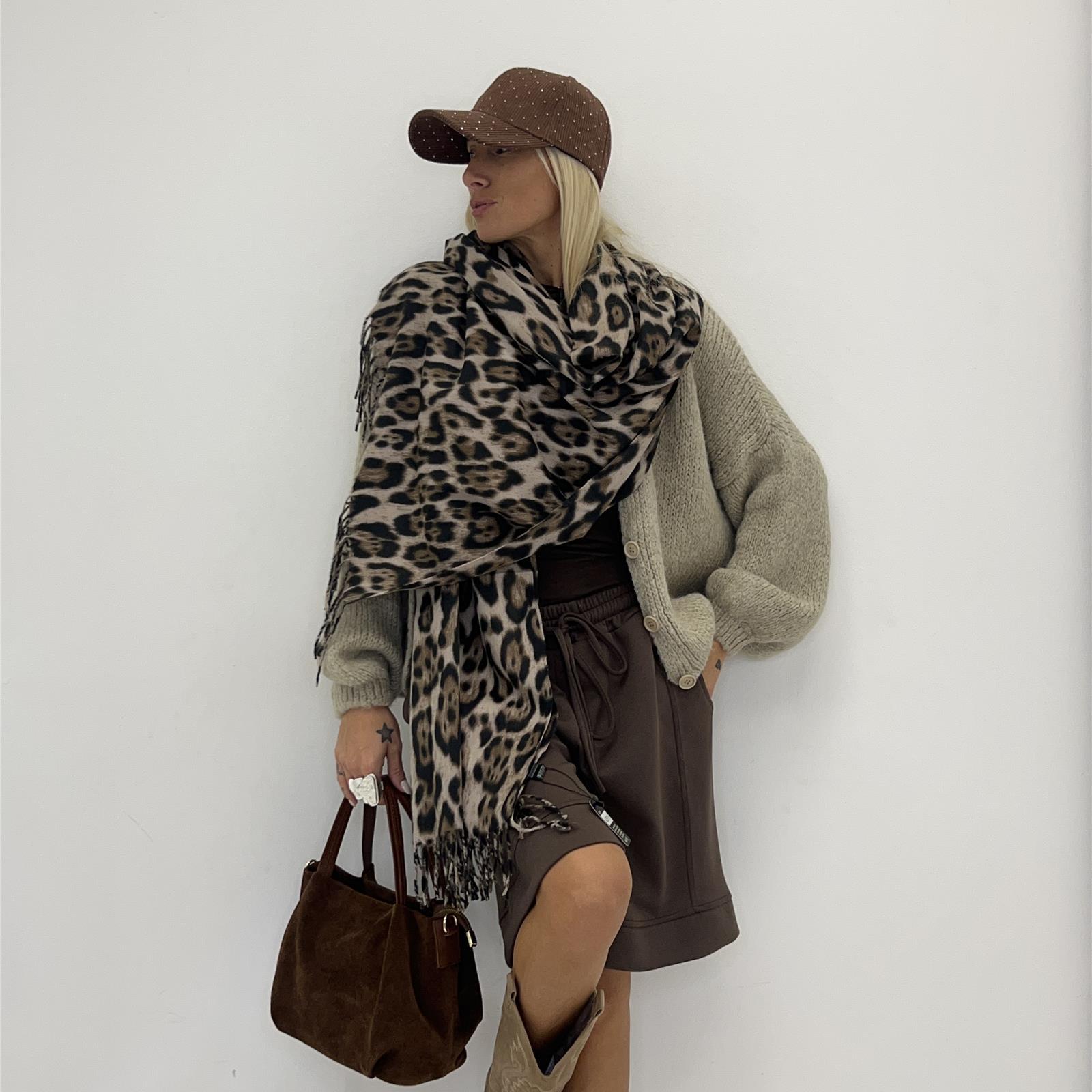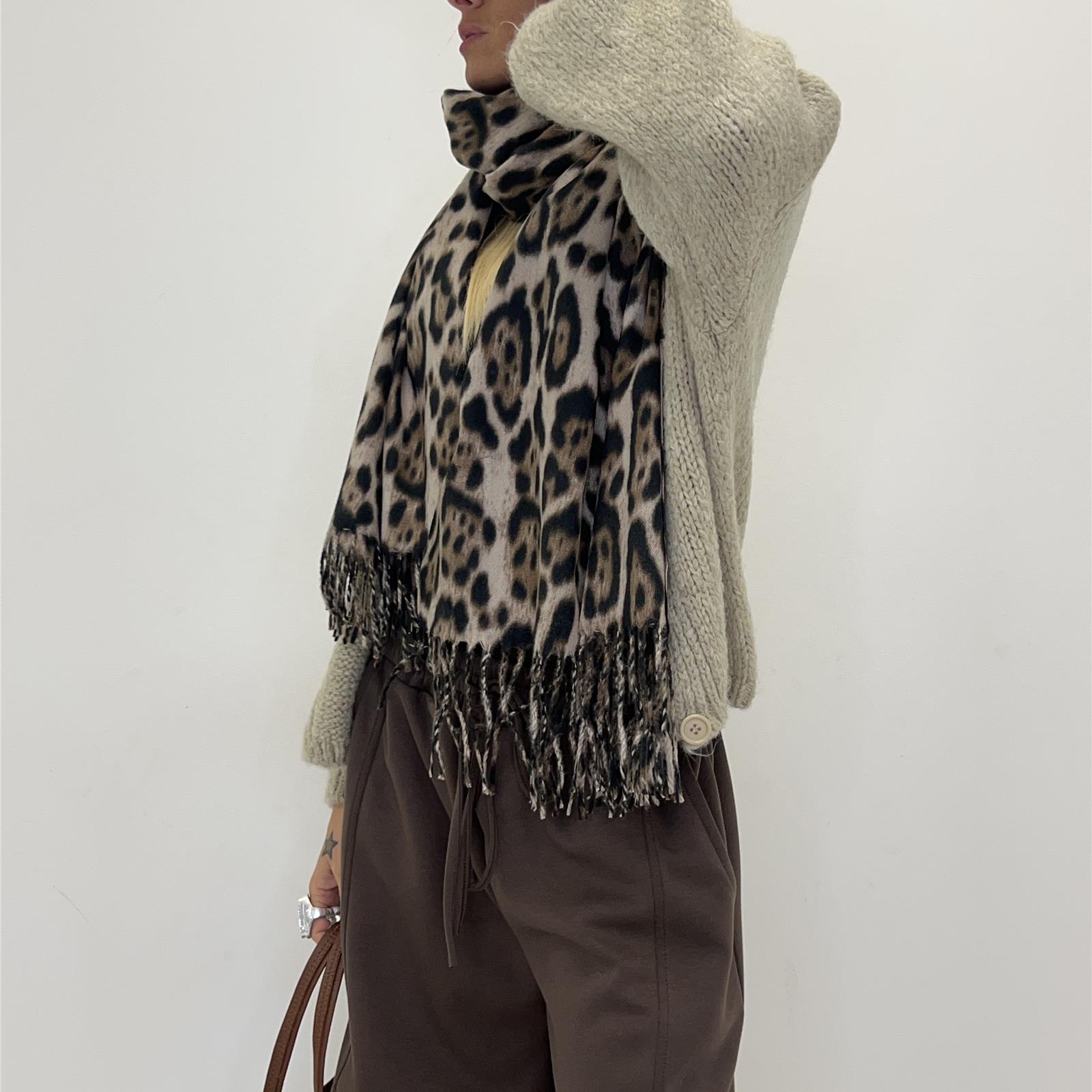 Maxi sciarpa in viscosa e cotone , frange all'estremità