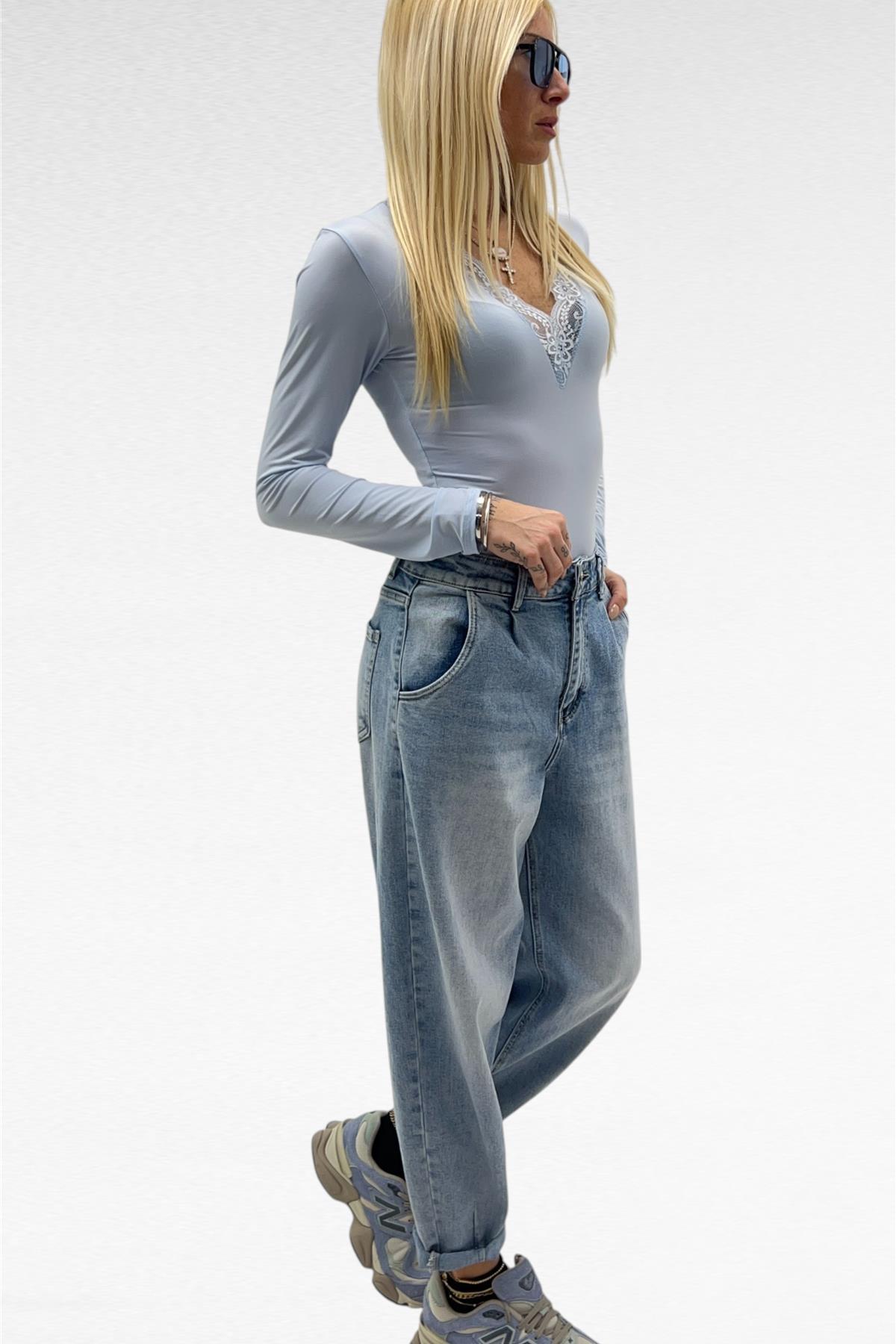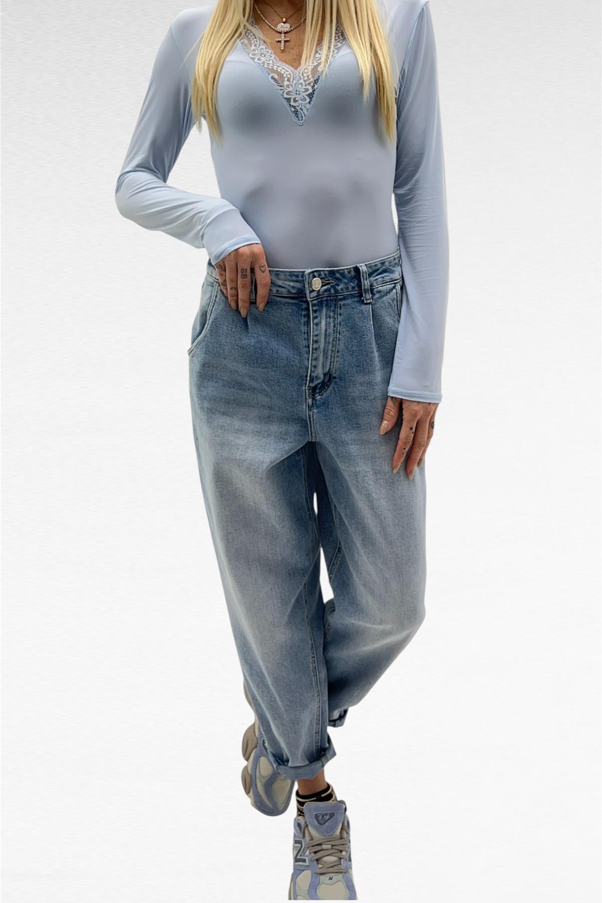 Body elasticizzato a manica lunga con pizzo e con scollo a V