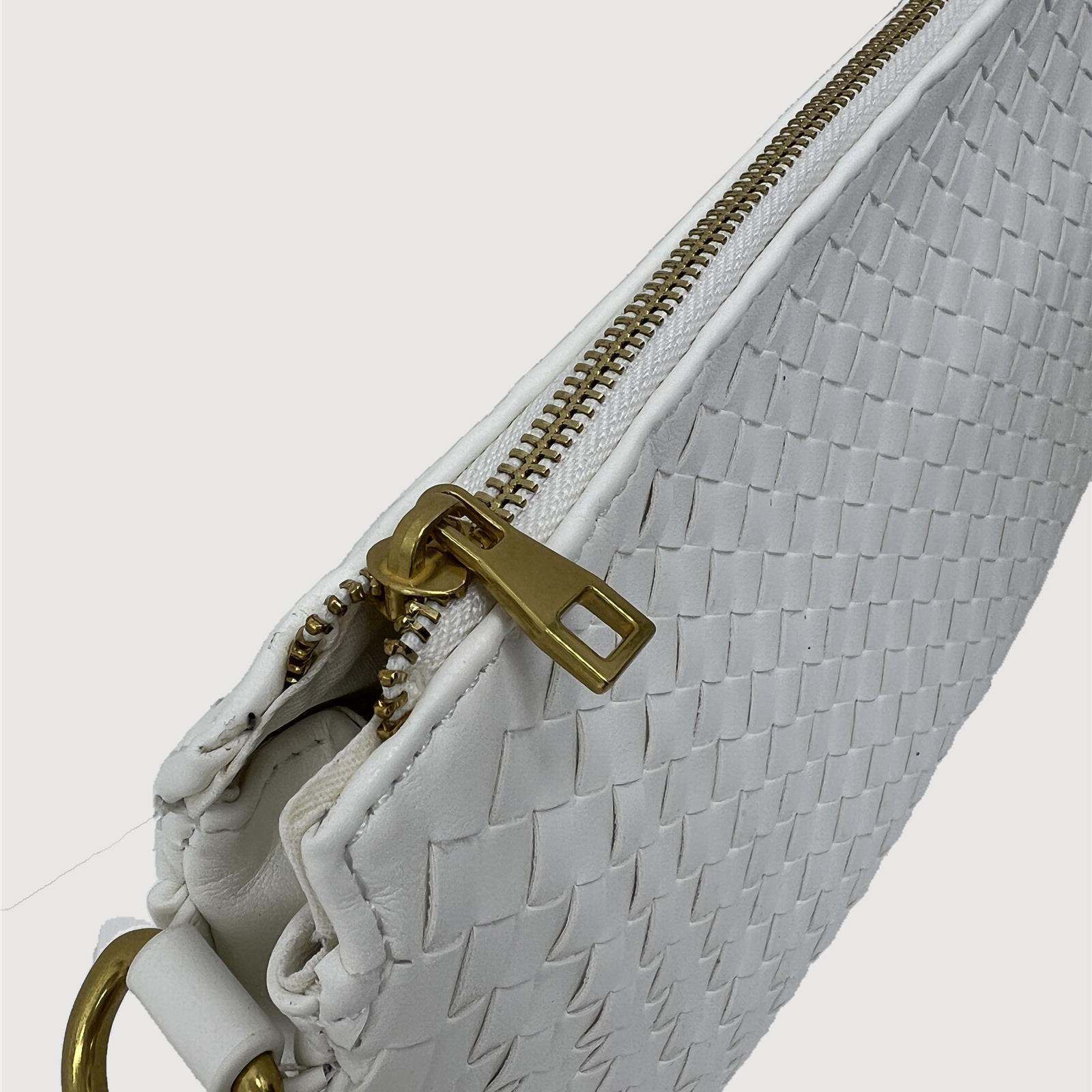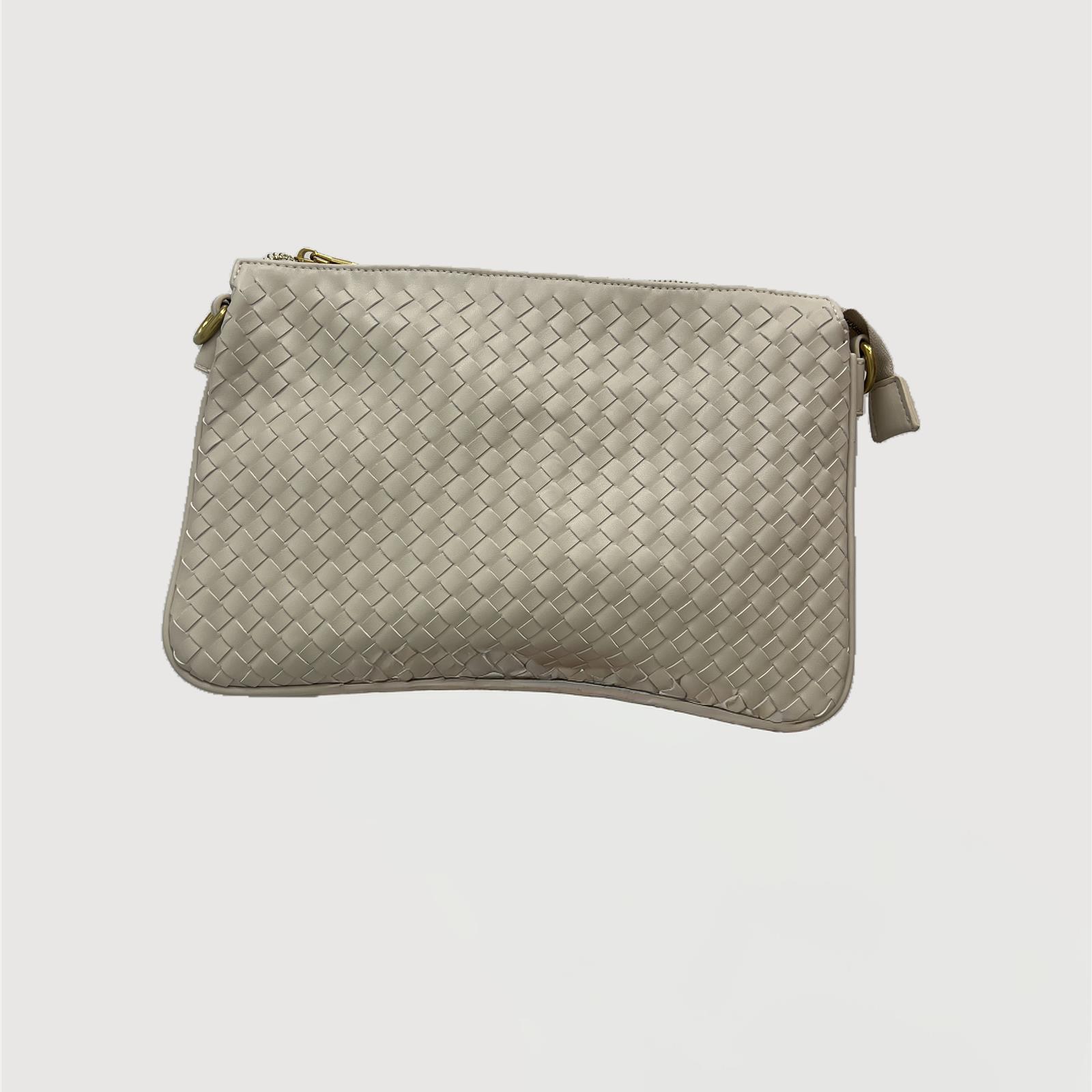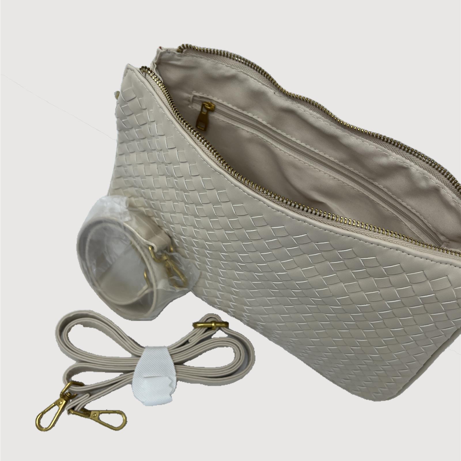 Borsa in simil pelle con ricami in rilevio, con doppia tracolla ( una da spalla e una da mano) removibili e regolabili , due tasche interne e chiusura con cerniera.
