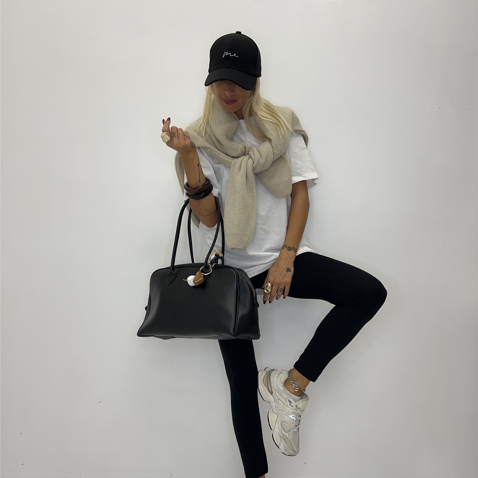 Borsa modello bauette con manici senza tracolla e cerniera di chiusura portachiavi incluso