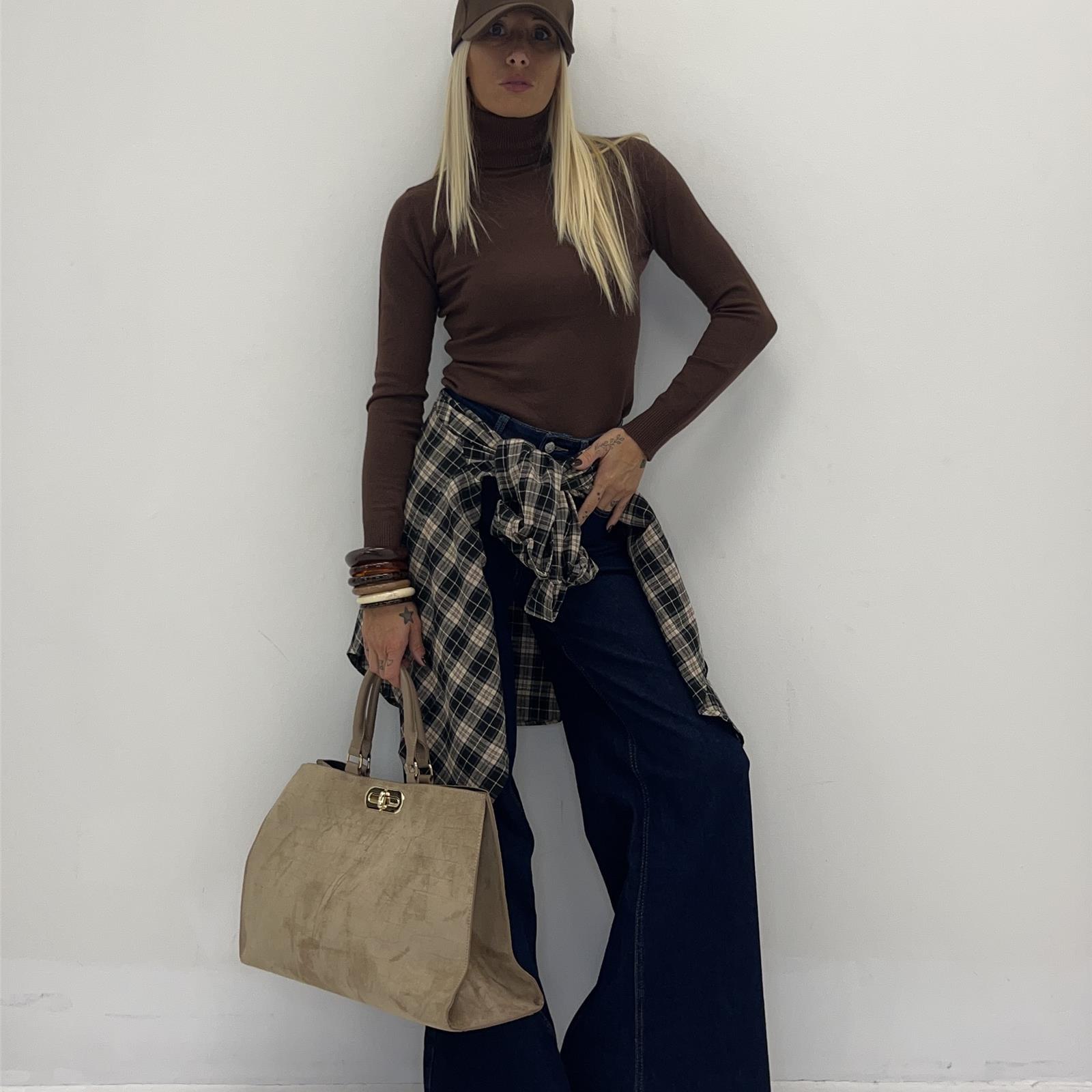 Borsa rigida effetto lavorato con manico e tracolla removibile