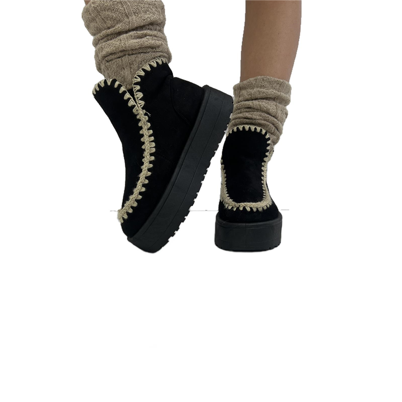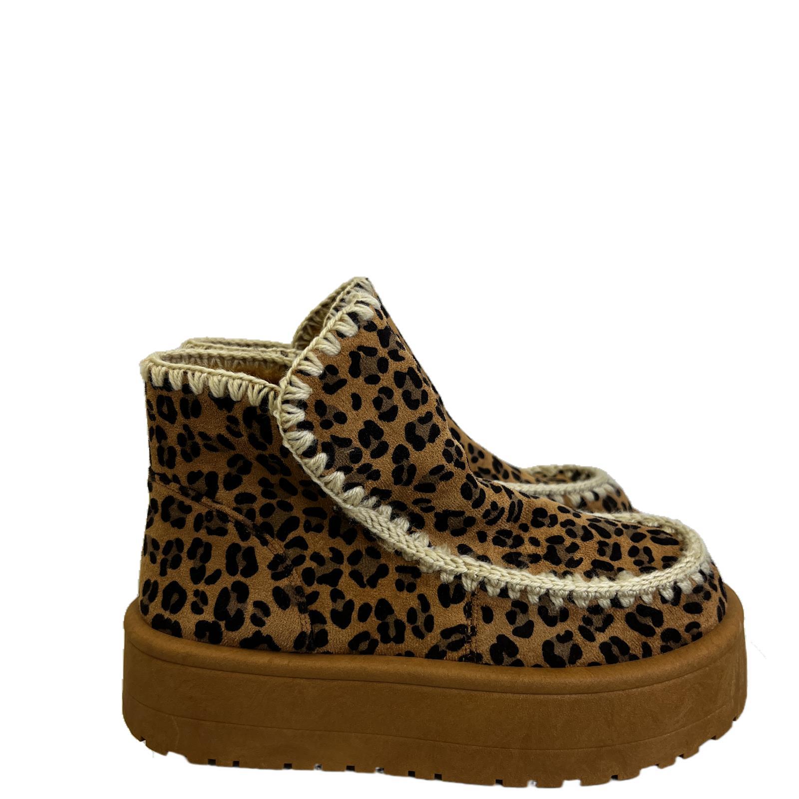 Stivaletti con paltform , fantasia maculata e con cuciture esterne in rilievo