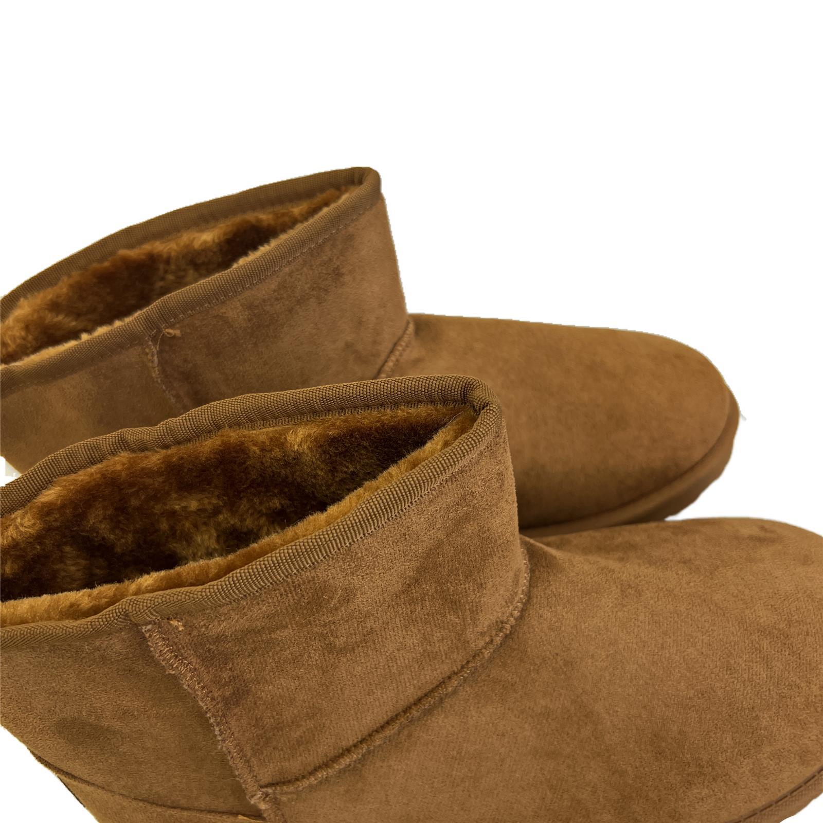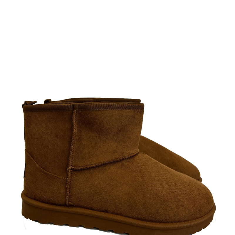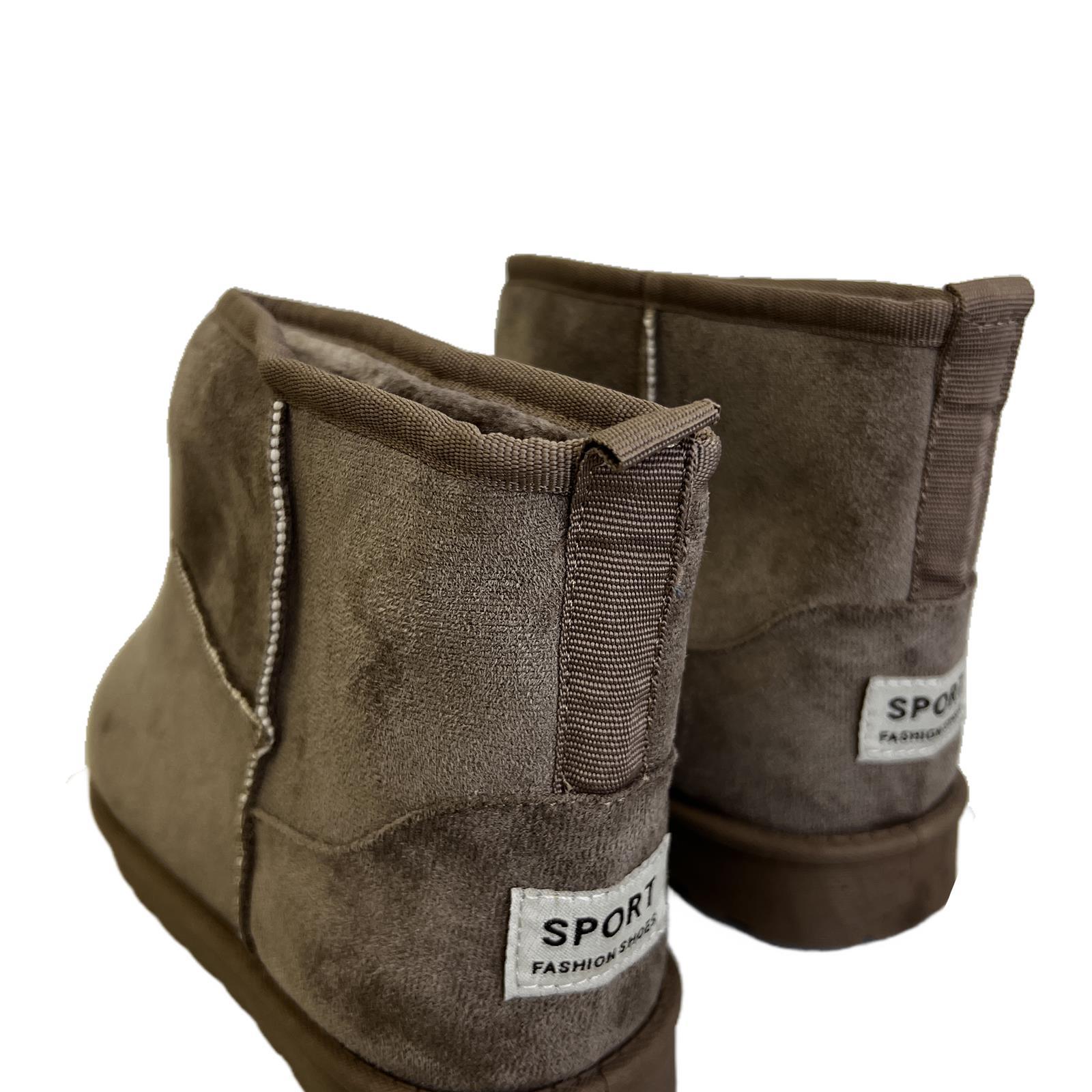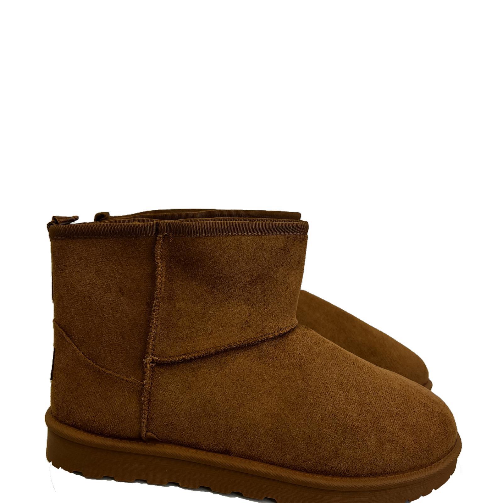 Stivaletti in simil camoscio con pelo interno e cuciture in rilievo esterno e patch sul retro