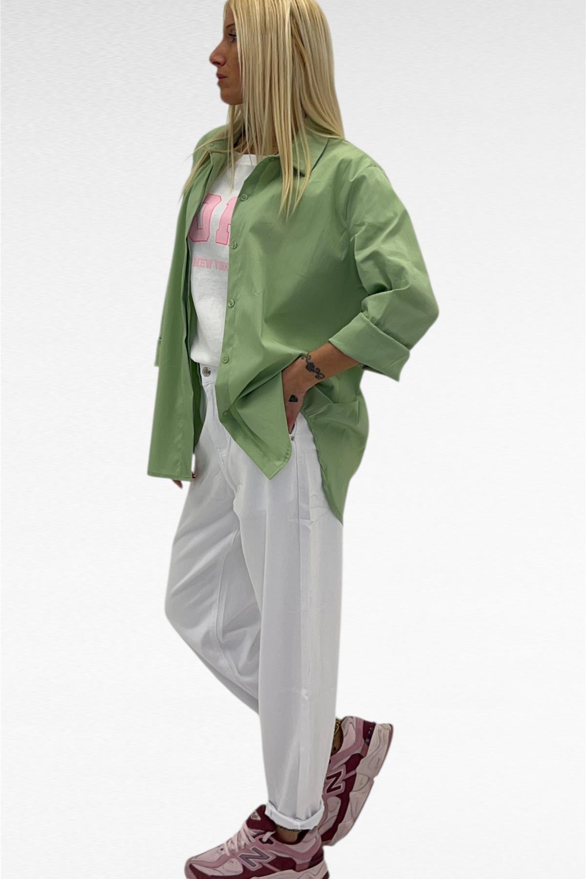 Camicia con bottoni a scomparsa, over con parte sul retro più lunga