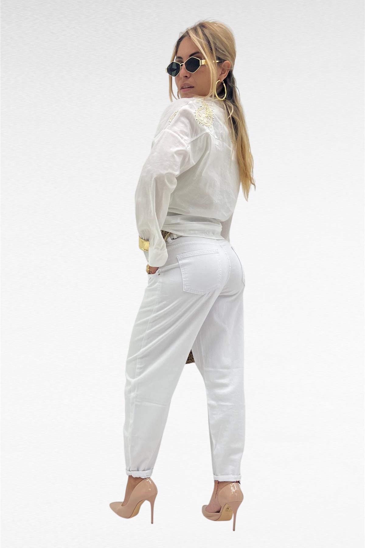 Camicia con bottoni reali e ricami oro