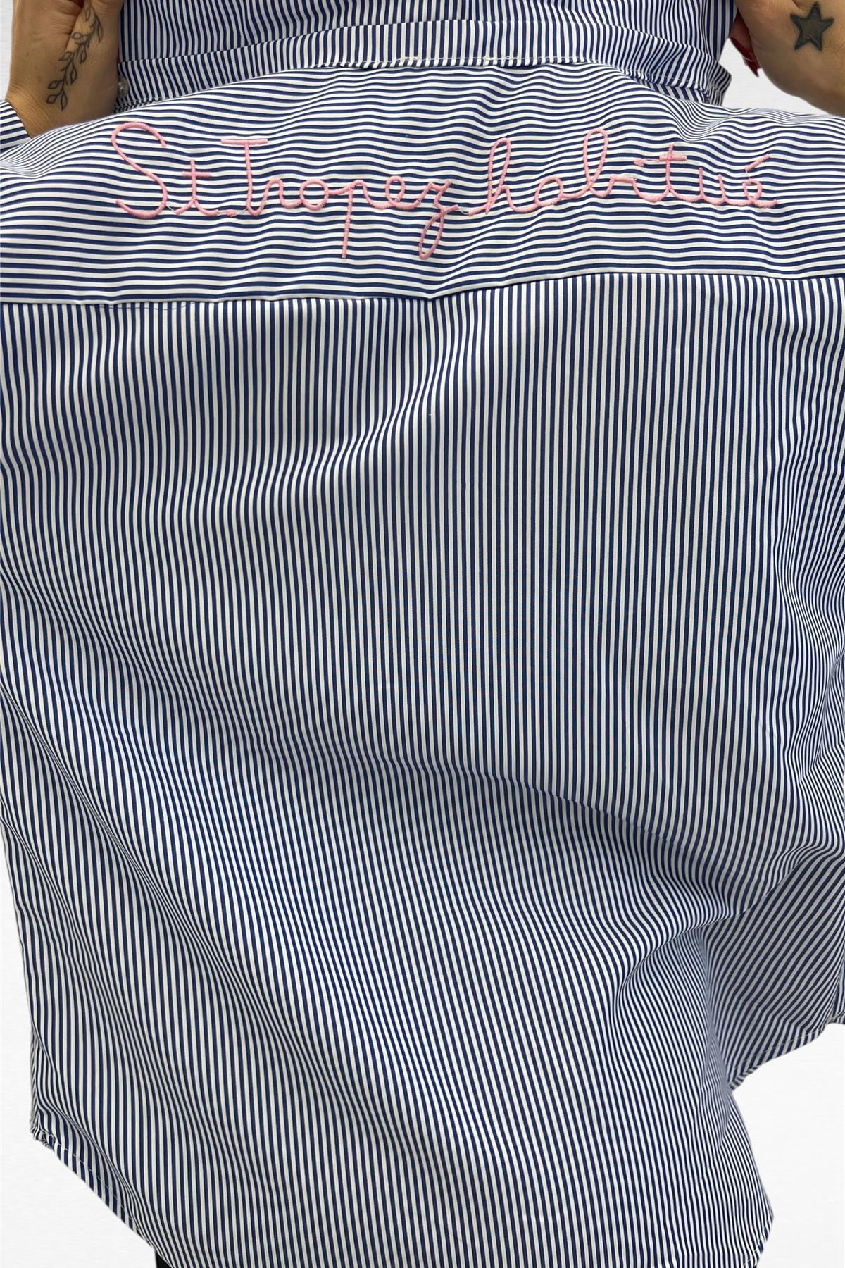 Camicia con bottoni reali , stampa sul retro "ST.TROPEZ HABITUE' "