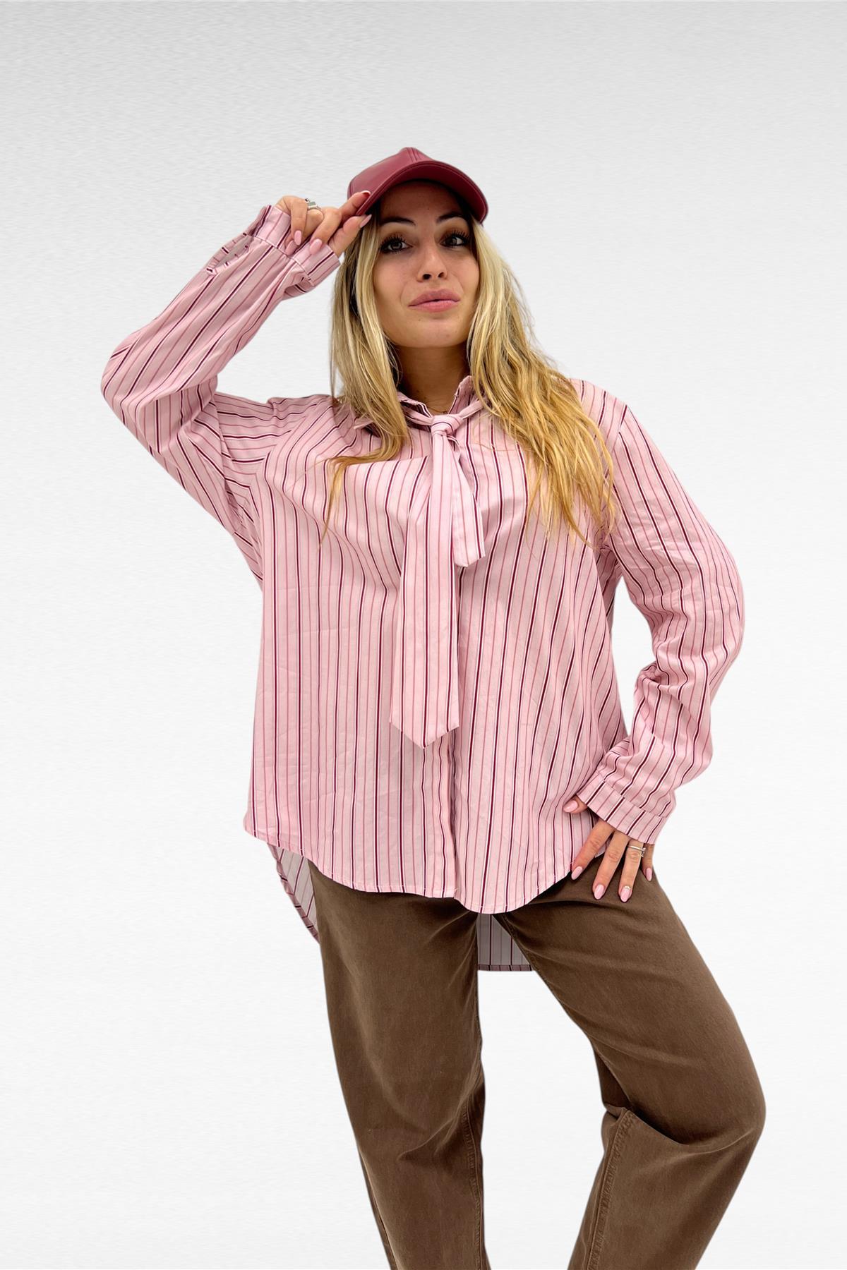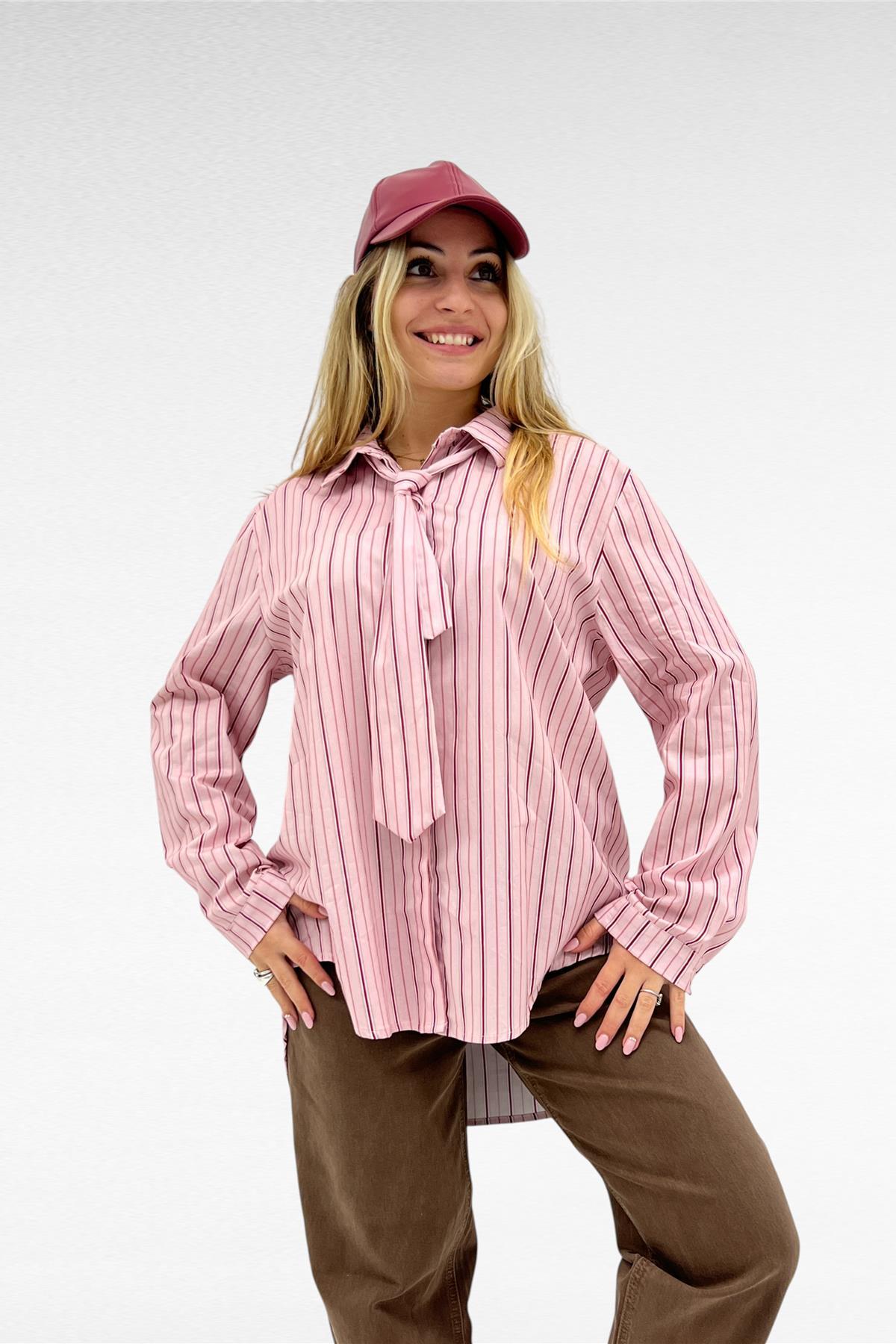 Camicia fantasia con cravatta leggermente più lunga sul retro