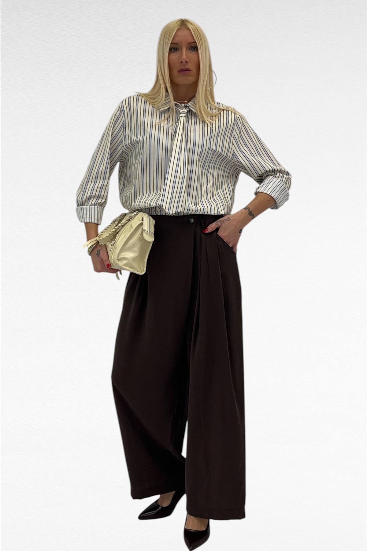 Camicia fantasia con cravatta leggermente più lunga sul retro