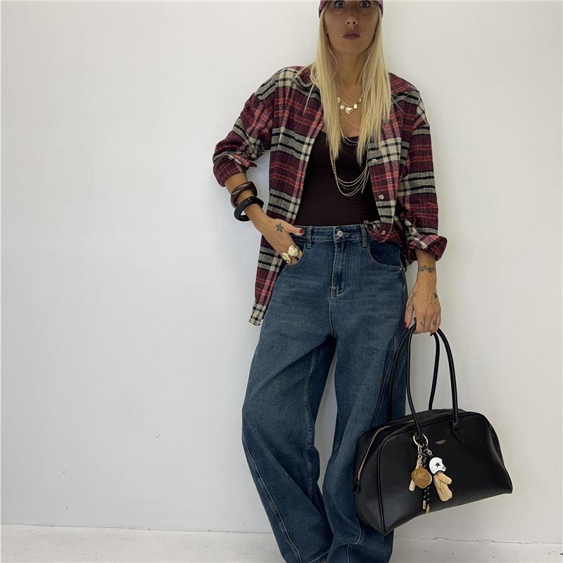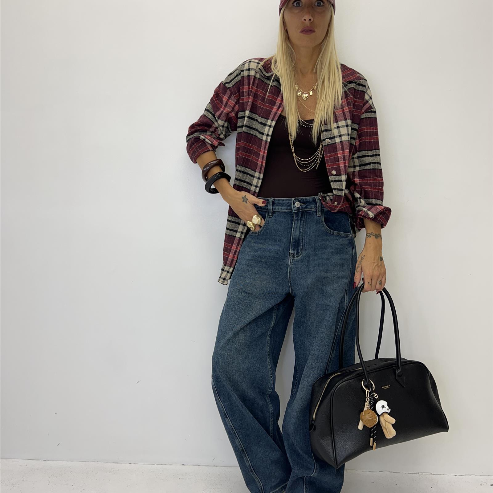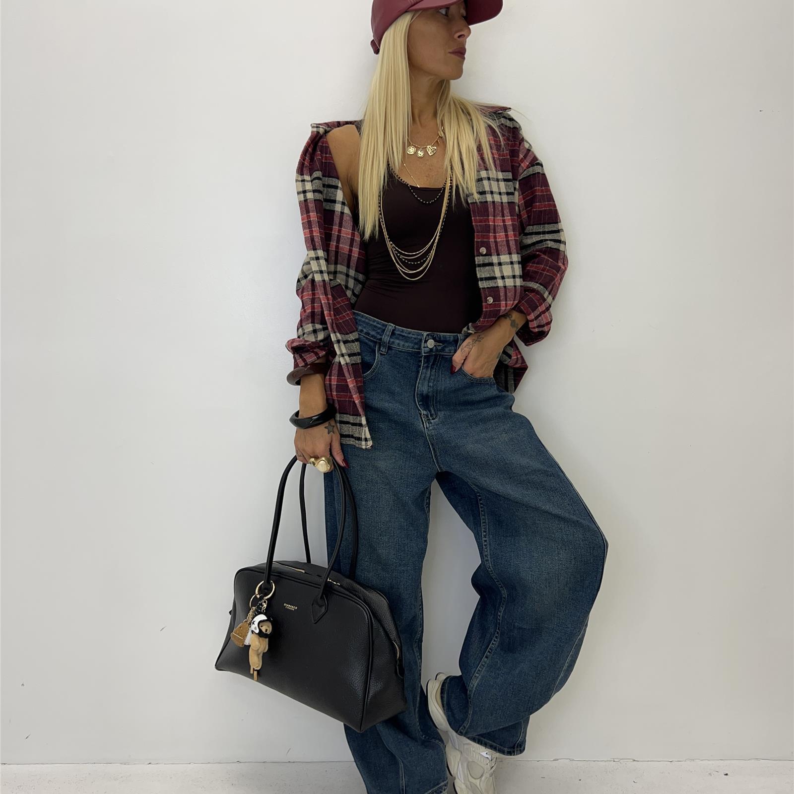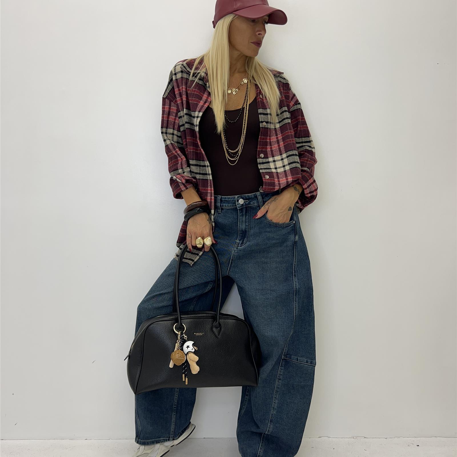 Camicione over con colletto e bottoni sul davani e sulla manica