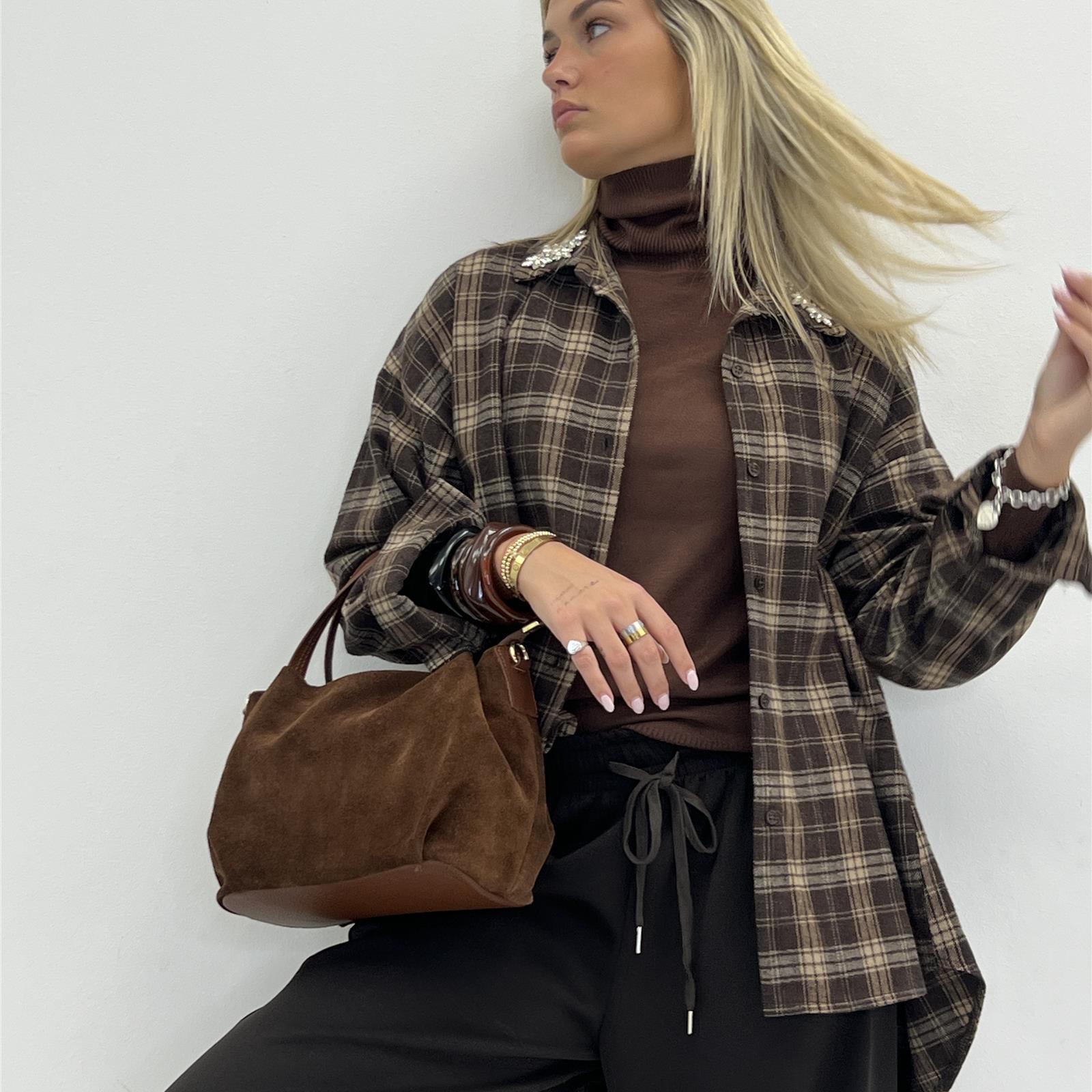 CAMICIA MARRONE la modella è alta 178cm 56kg taglia M