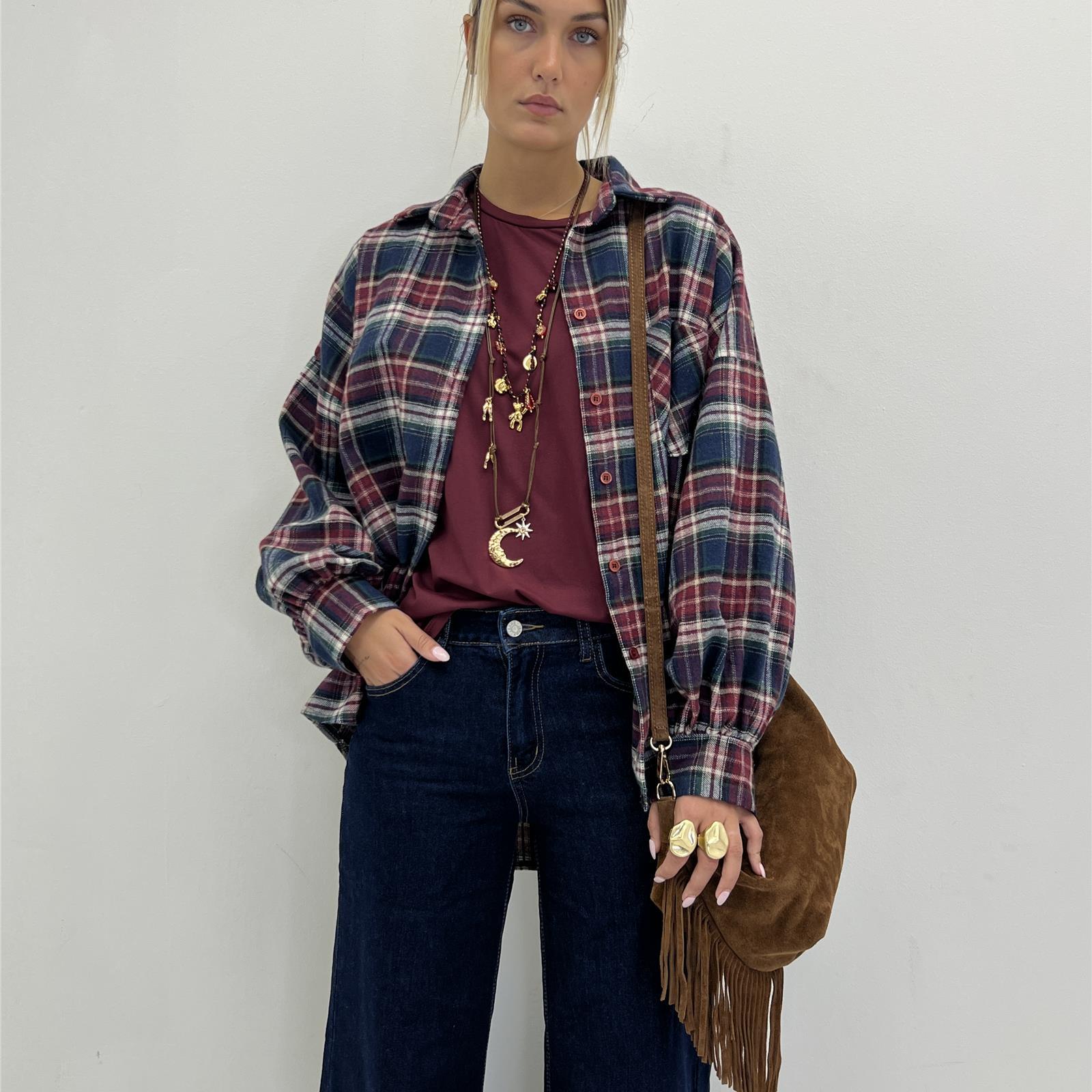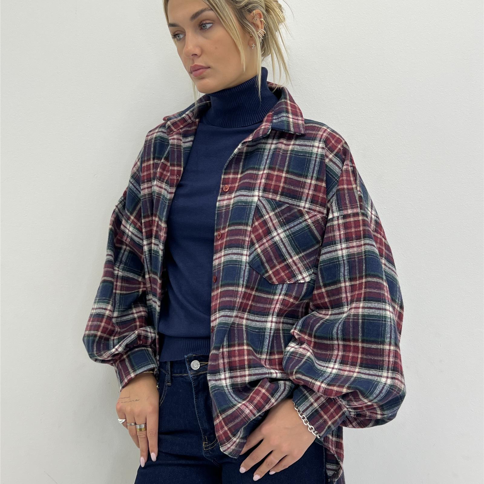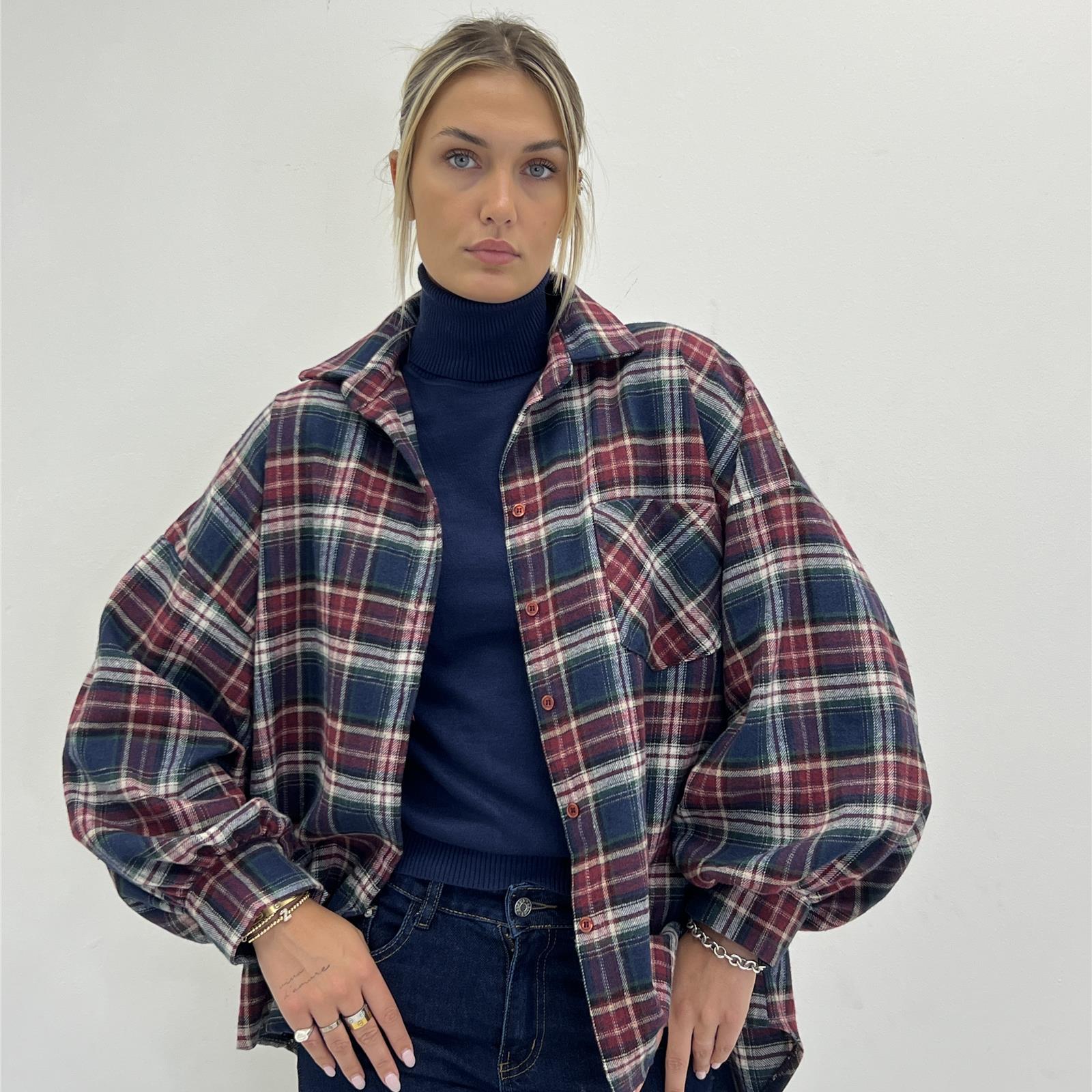 Camicia con bottoni sul davanti, manica a caramella , lunga sul retro e più corta sul davanti