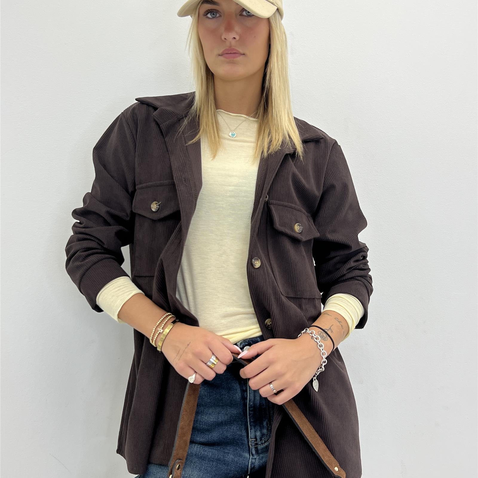 Camicia in costina di velluto con bottoni sul davanti, tasche con bottone frontale