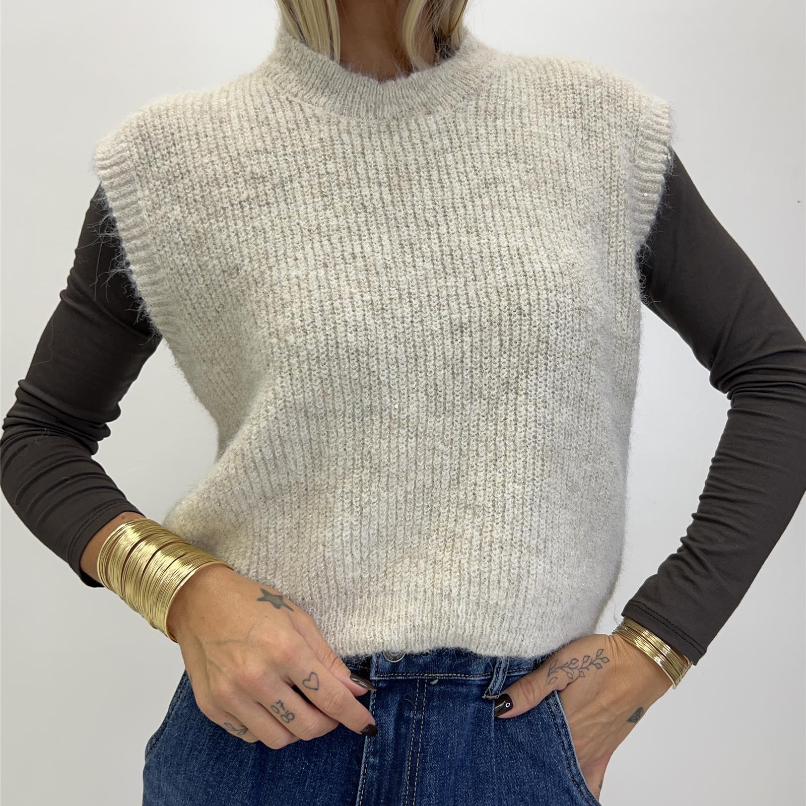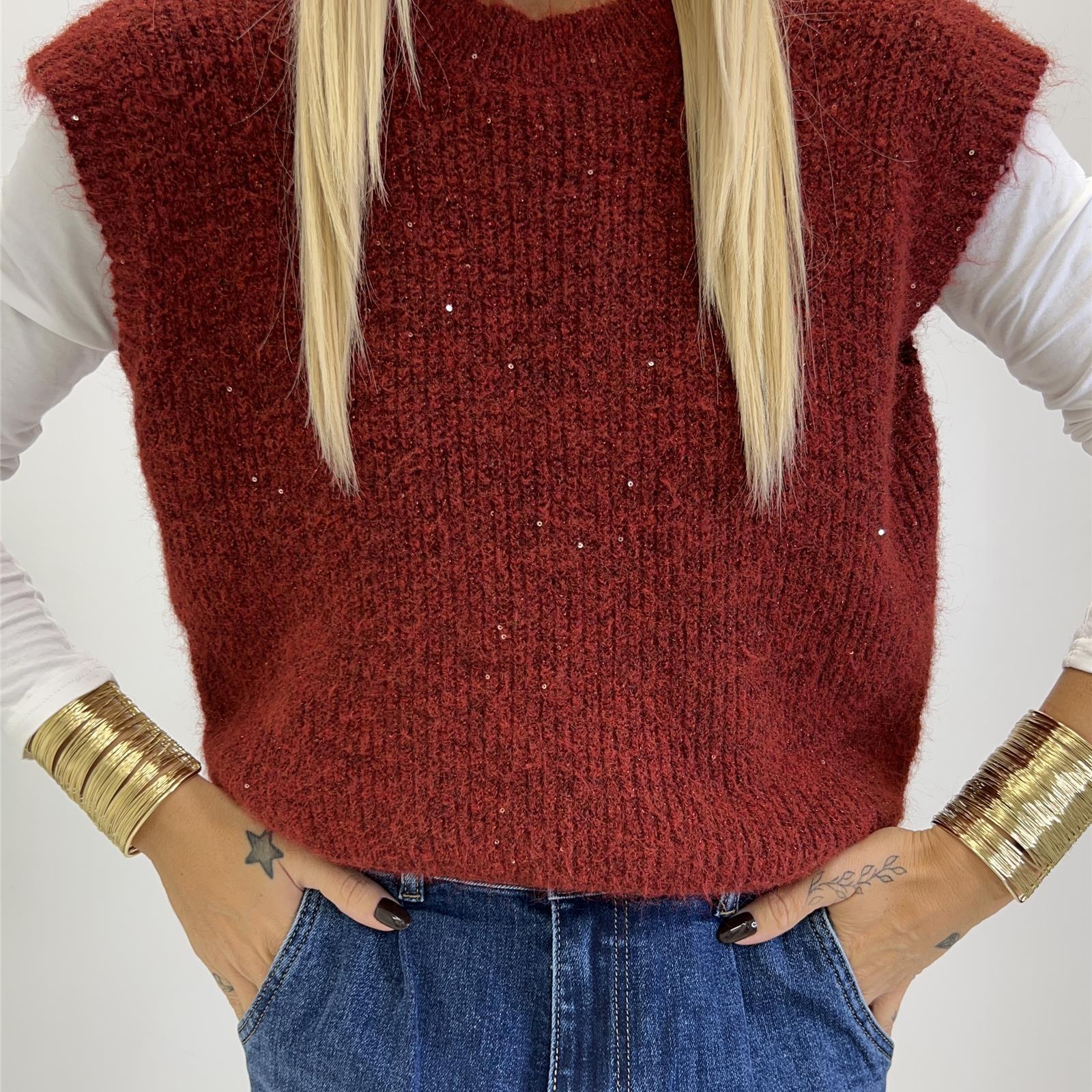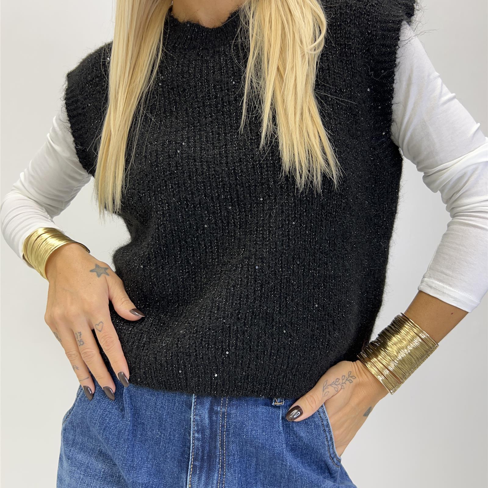 Gilet con scollo tondo e brillantini, in tessuto elasticizzato