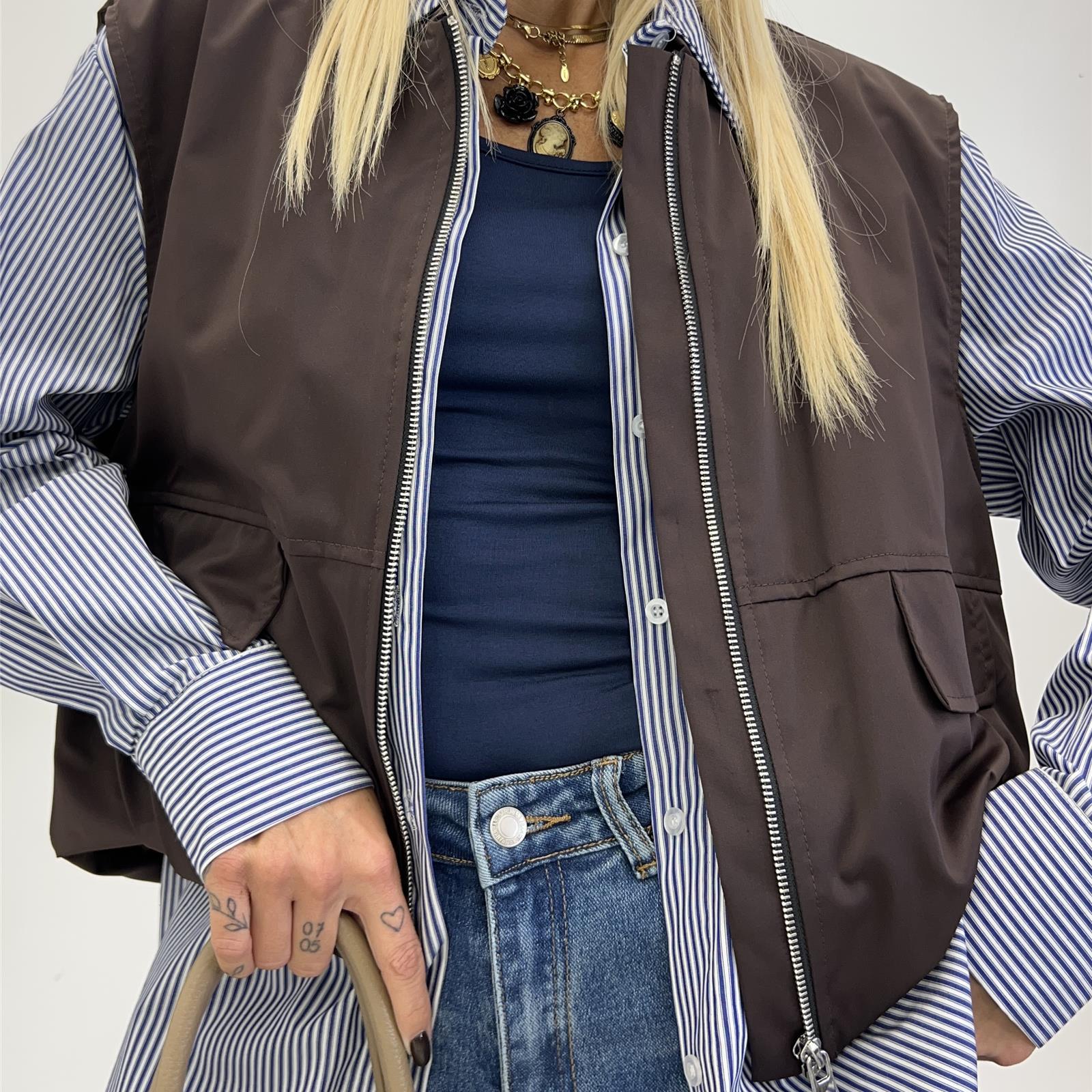 Smanicato in tessuto impermeabile, tasche sul davanti e zip sul davanti