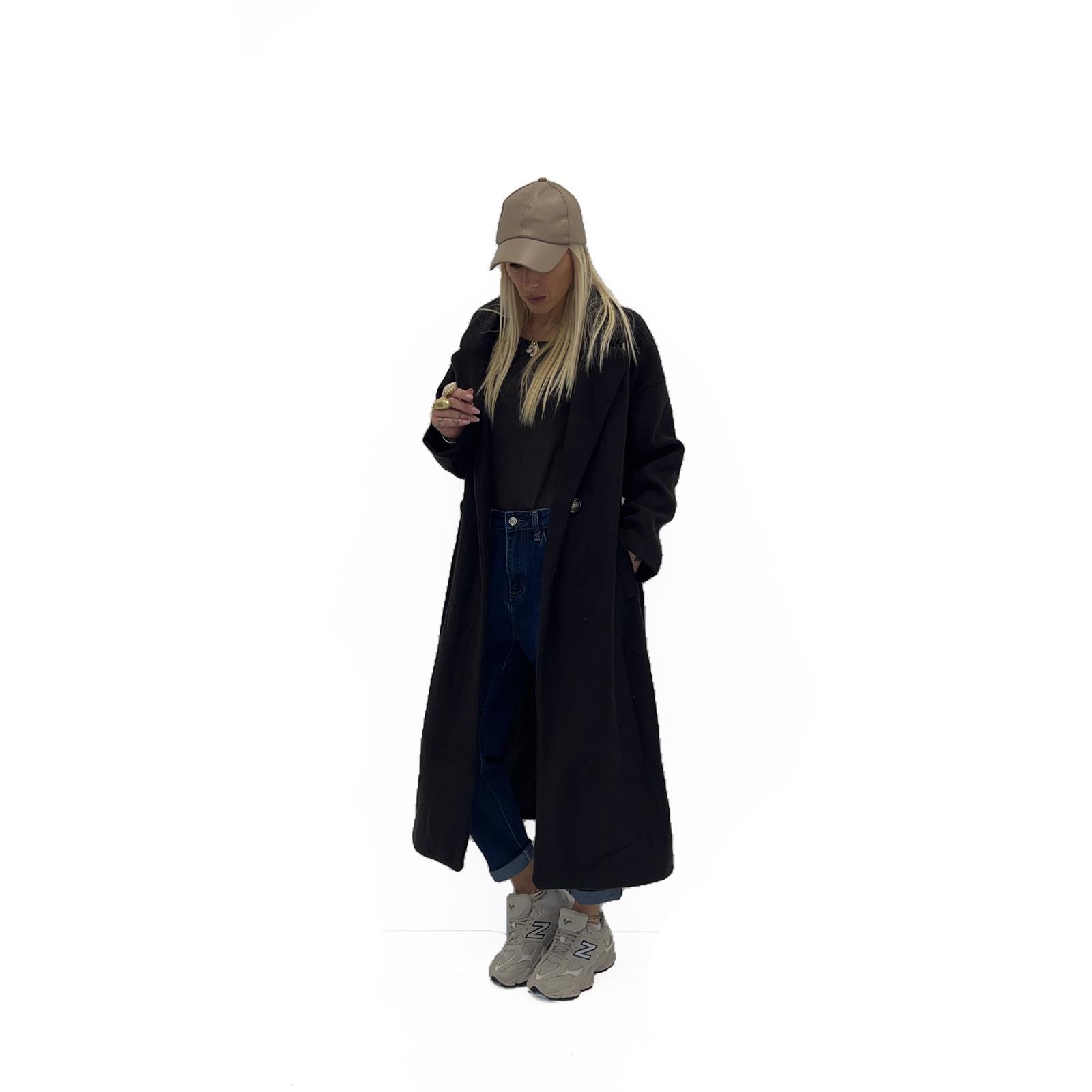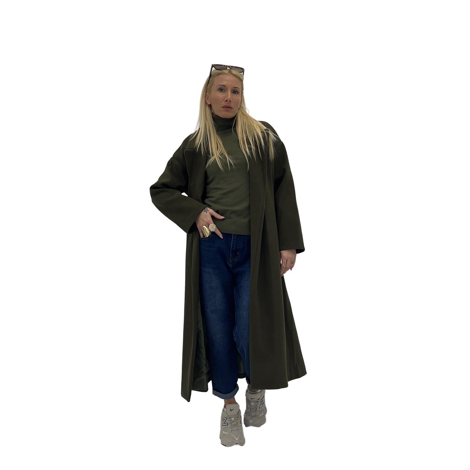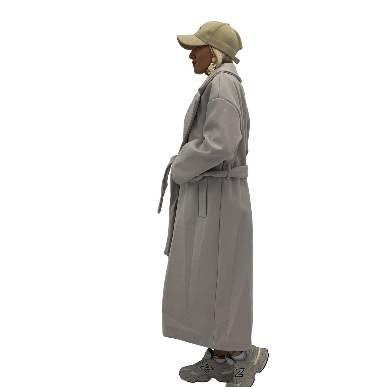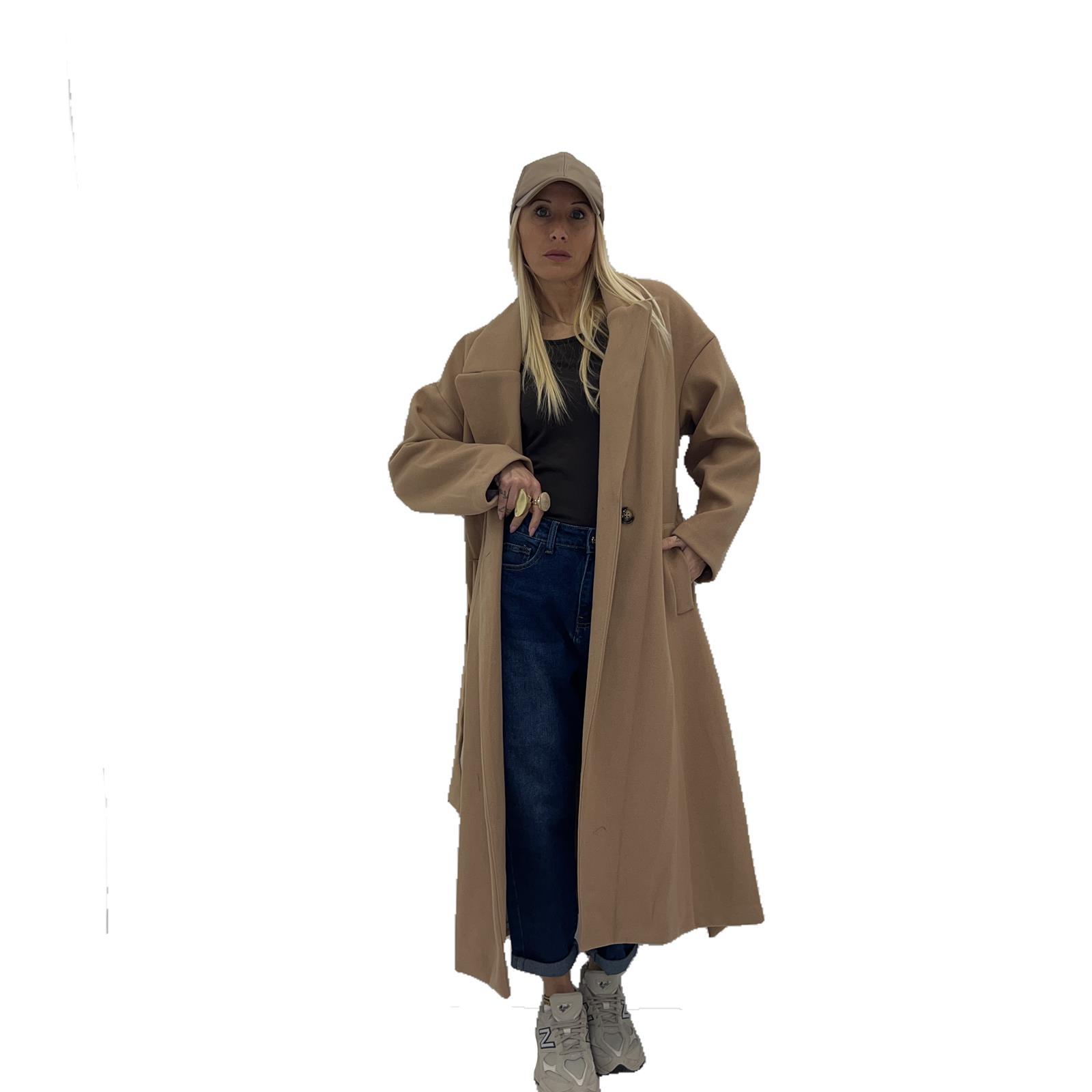 Cappotto con cinta abbinata, fodera interna , tasche laterali e bottoni frontali