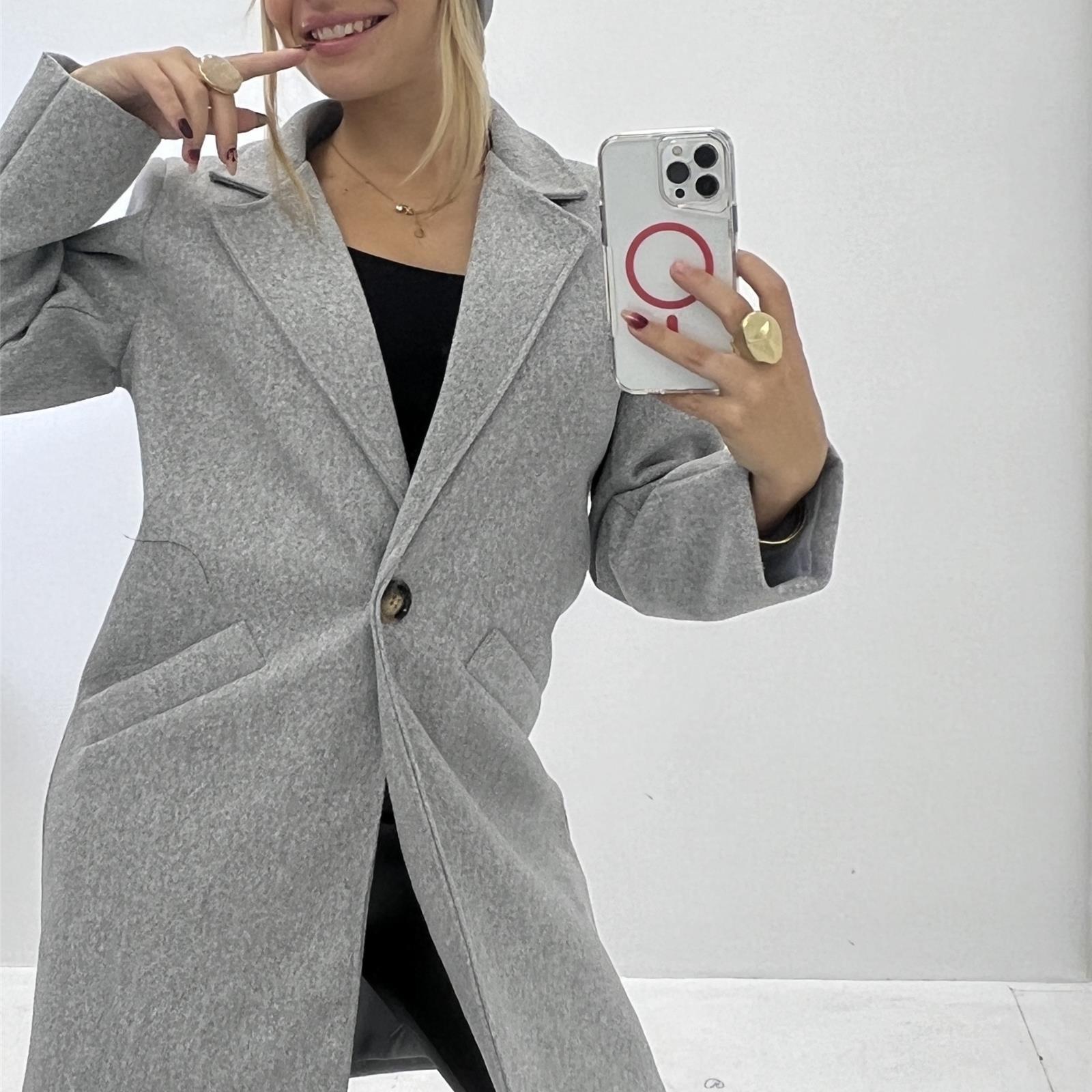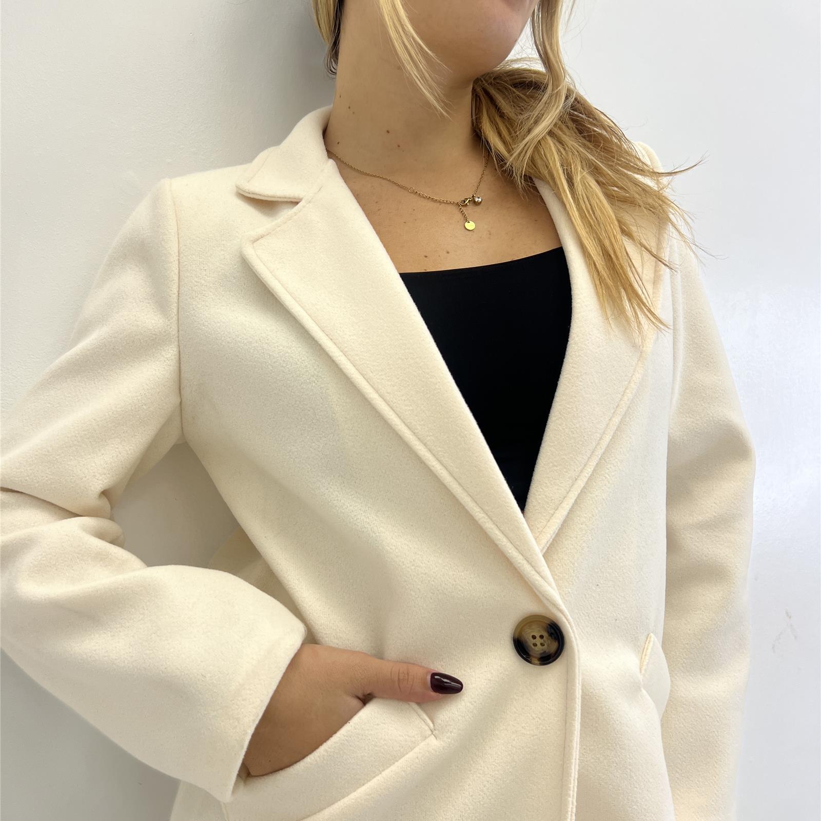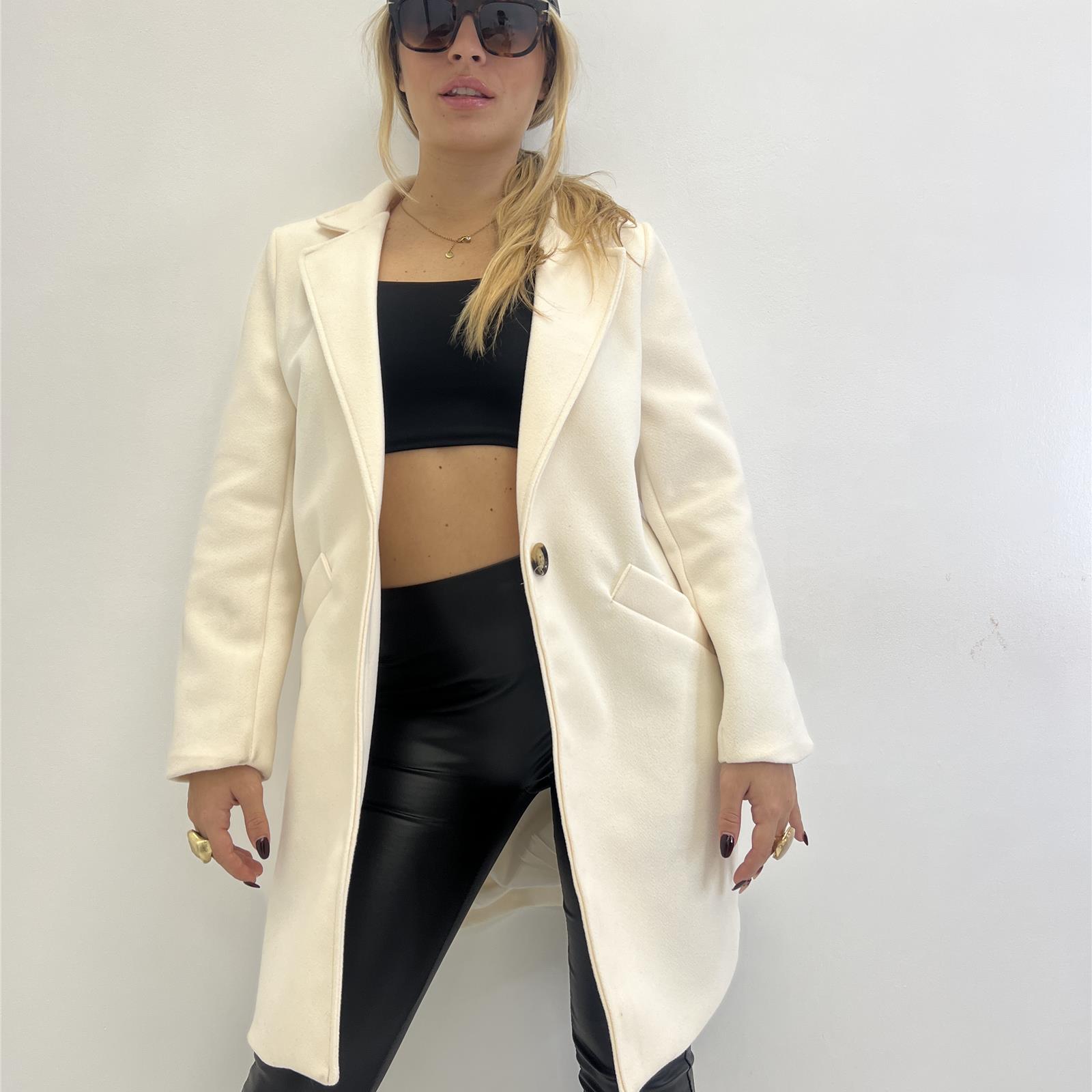 Cappotto media lunghezza foderato con bottone sul davanti e tasche oblique