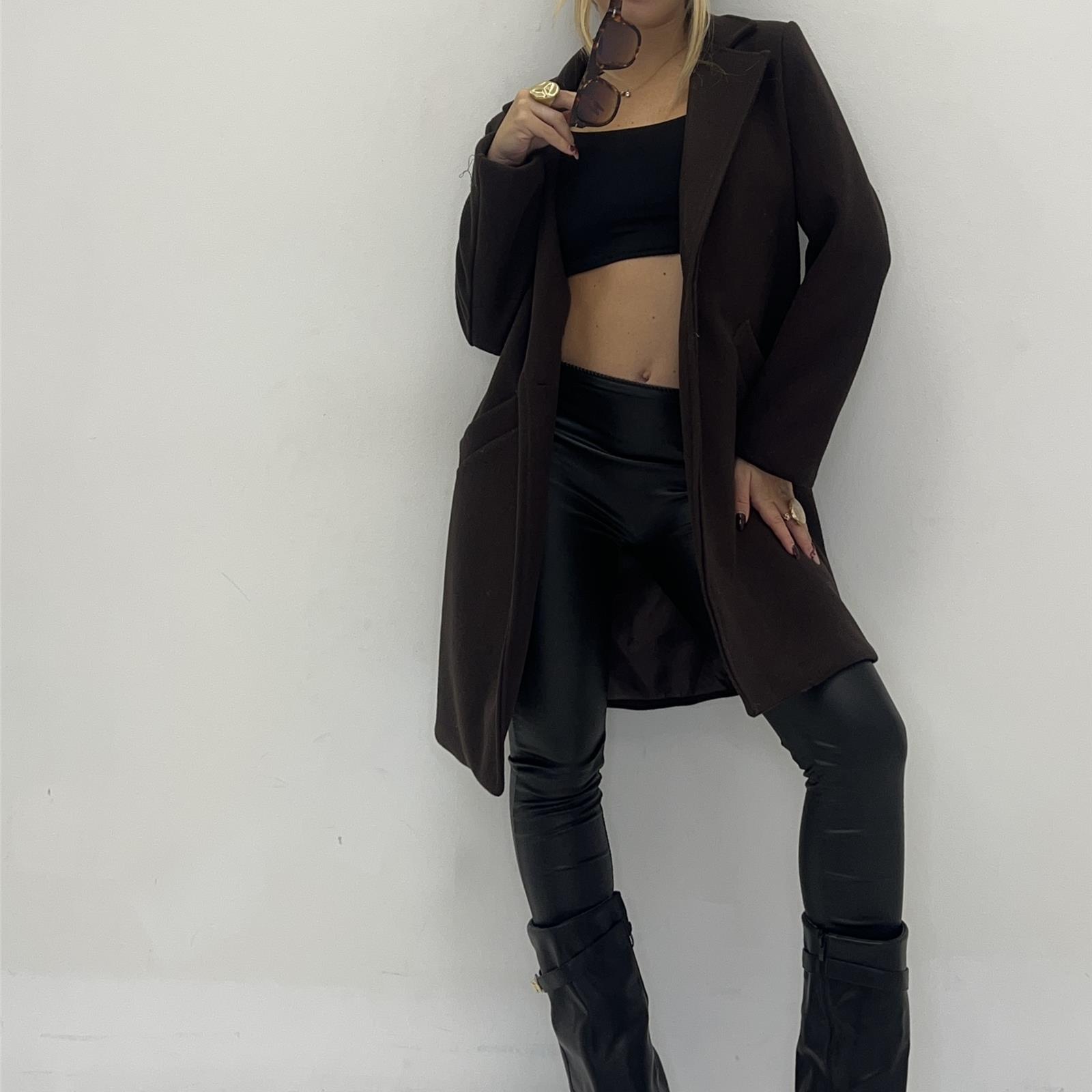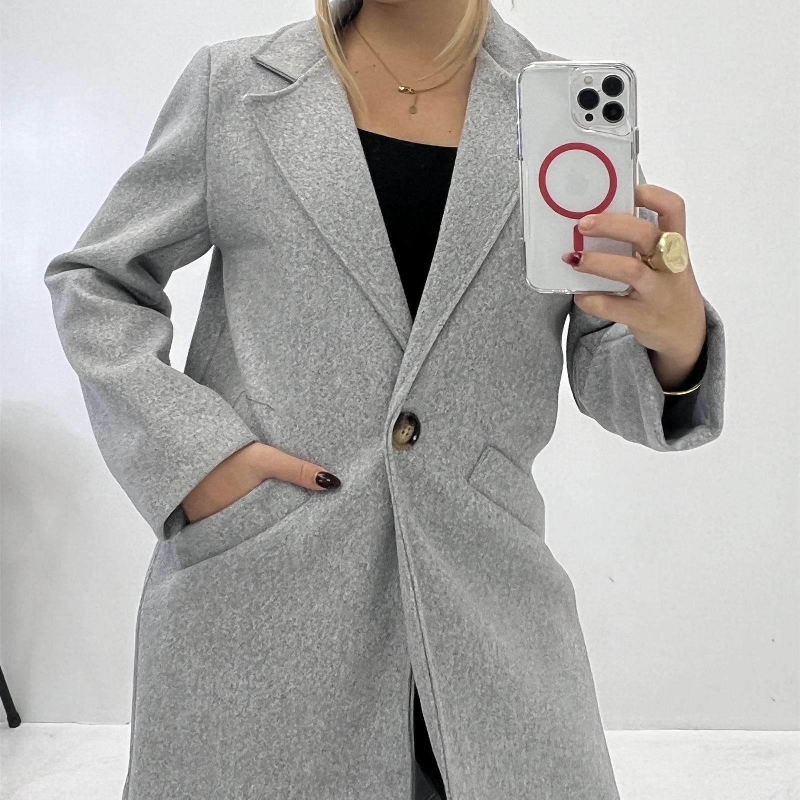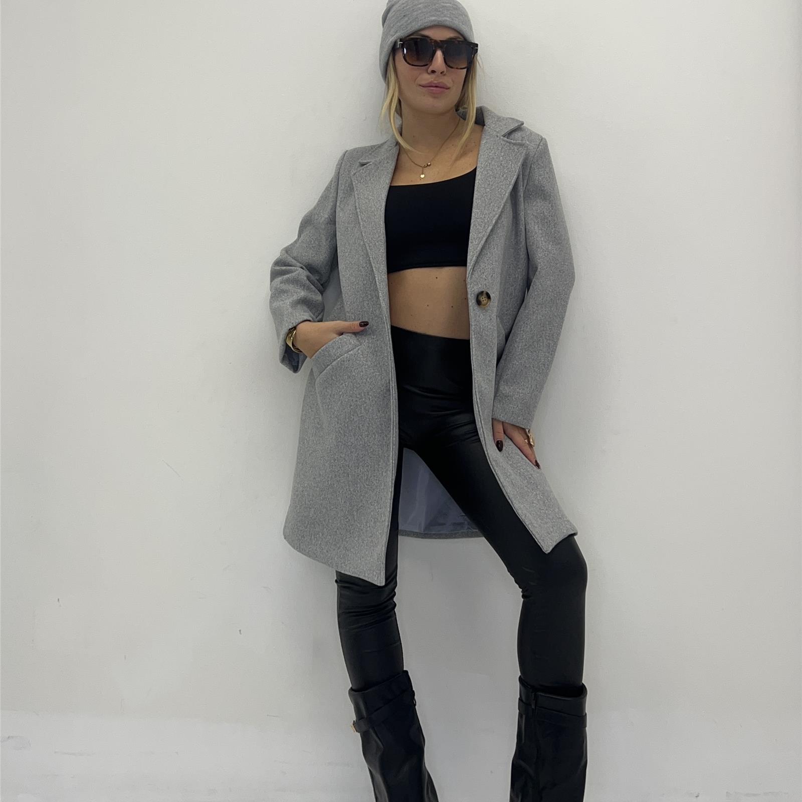 Cappotto media lunghezza foderato con bottone sul davanti e tasche oblique