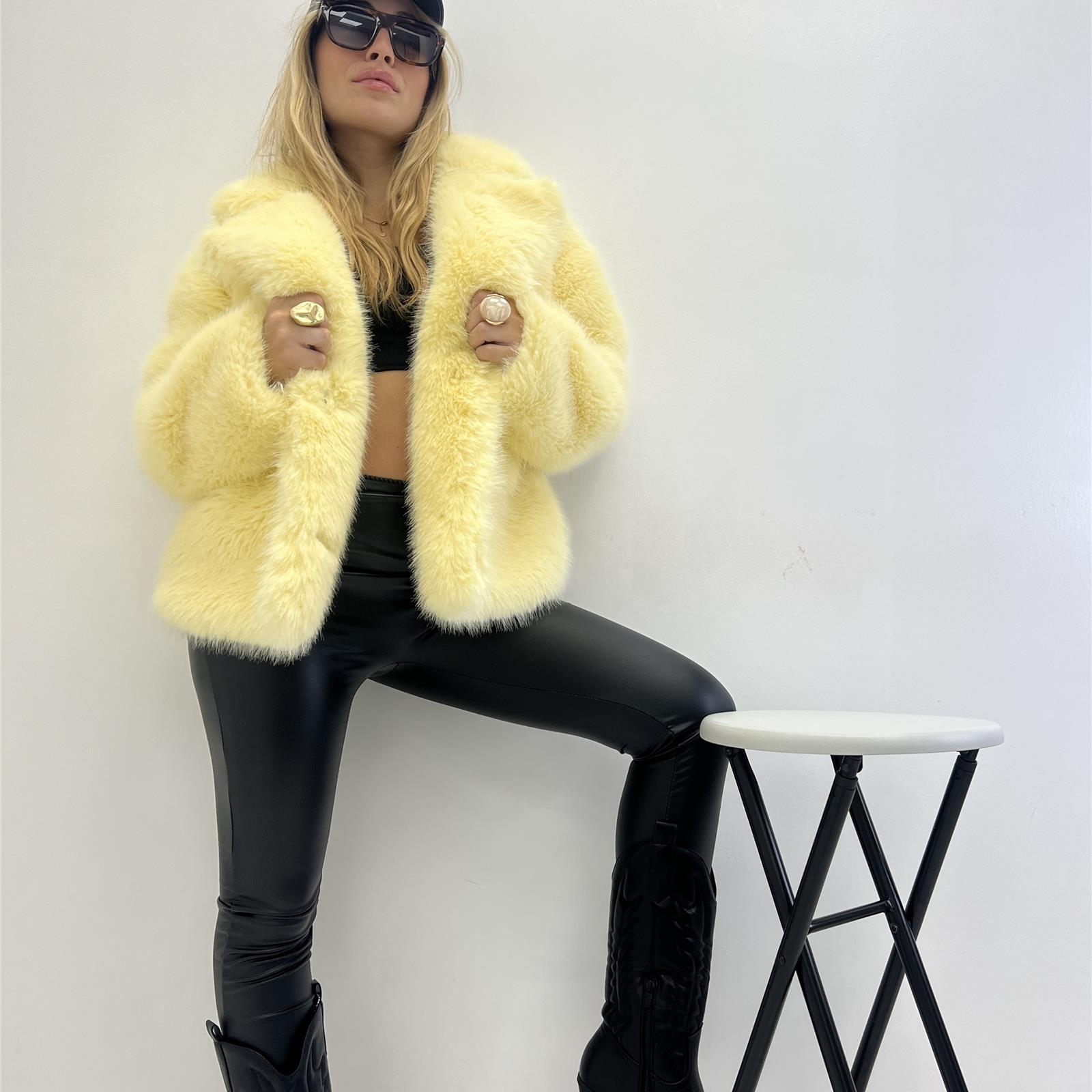 Pelliccia foderata, con bottoni frontali a scomparsa e tasche laterali anche queste a scomparsa