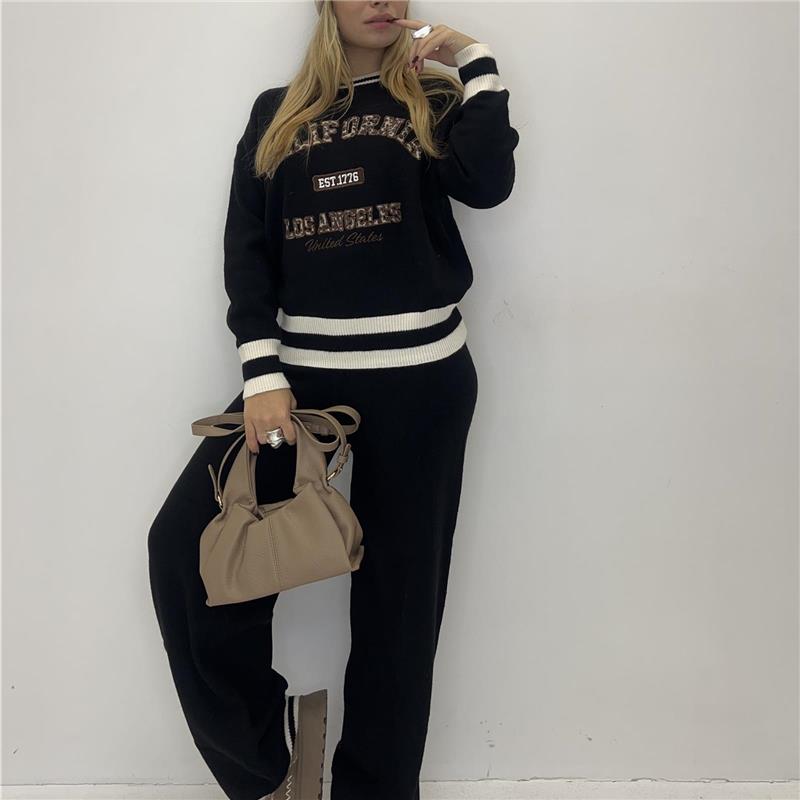 Completo due pezzi con maglia girocollo e pantalone ampio