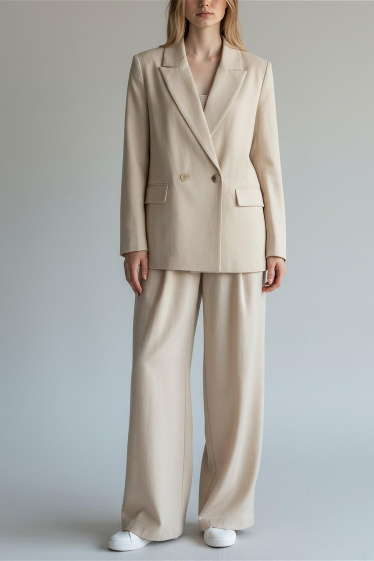 Giacca con spallino imbottito, foderata interna, doppio petto, tasche reali sul davanti