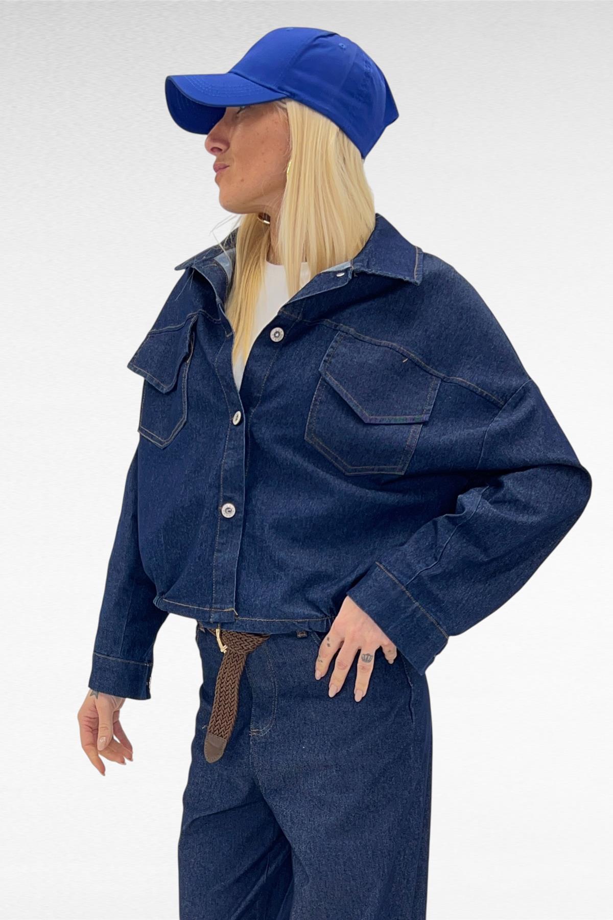 Giacca modello bomber , con bottoni frontali , tasche frontali ed elastico sul fondo