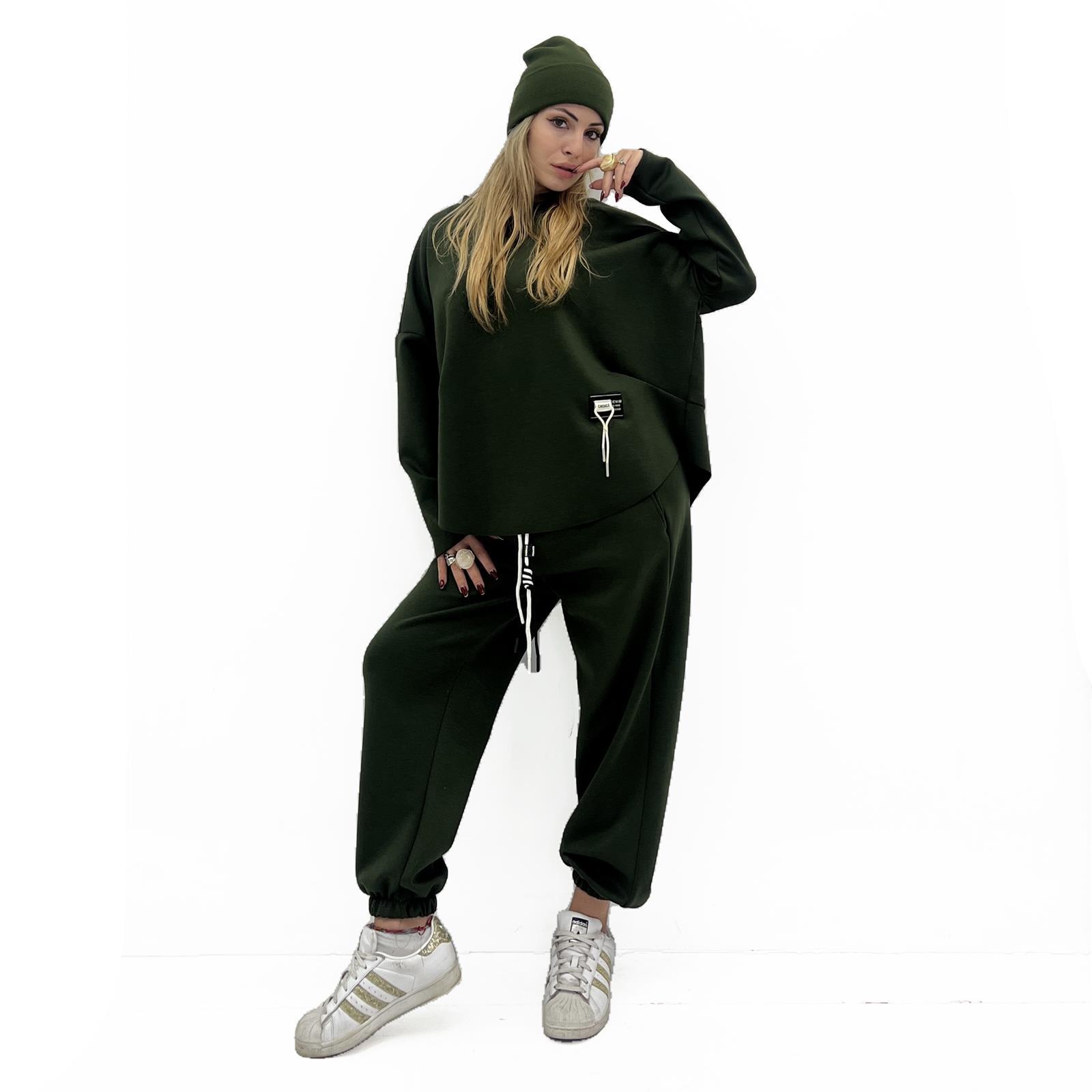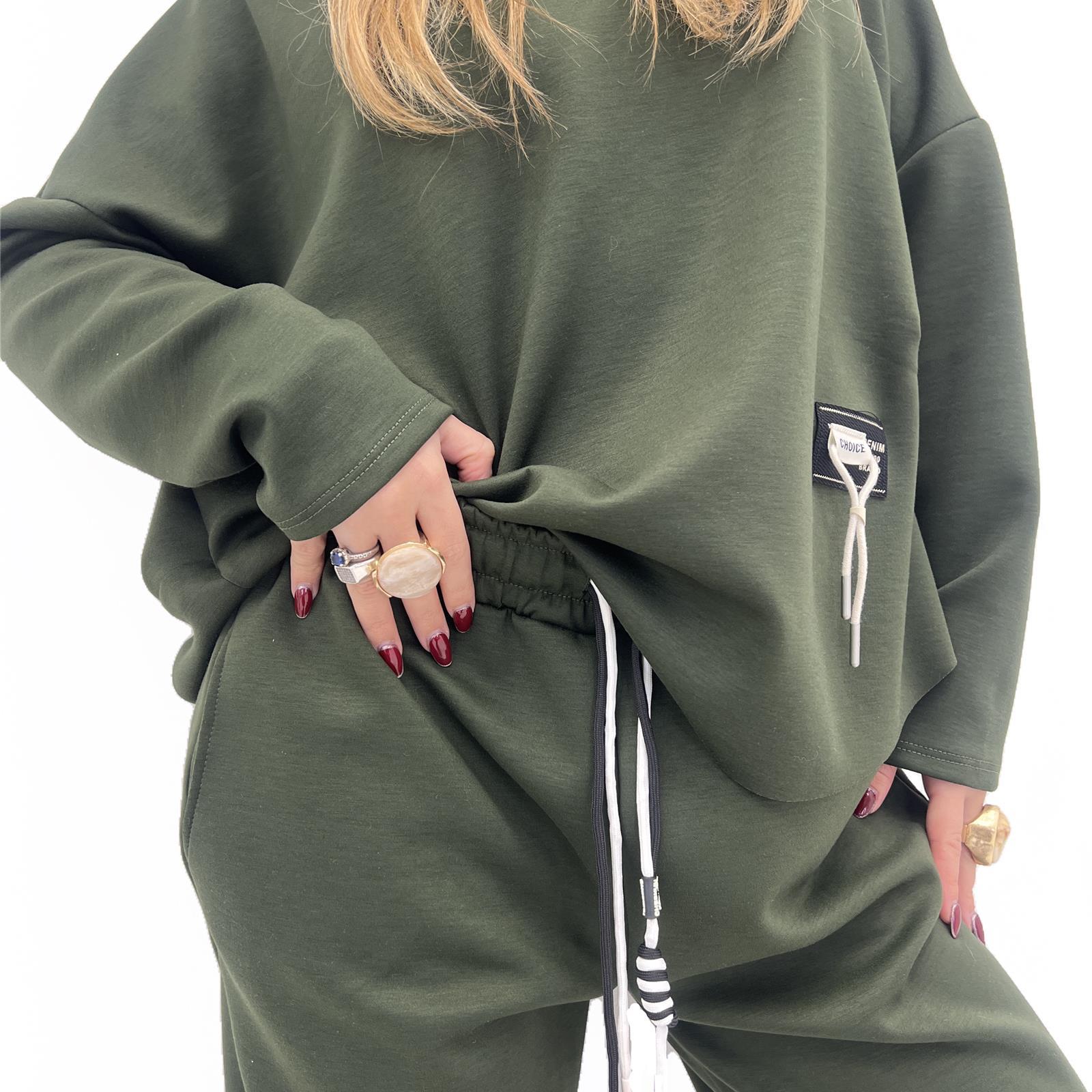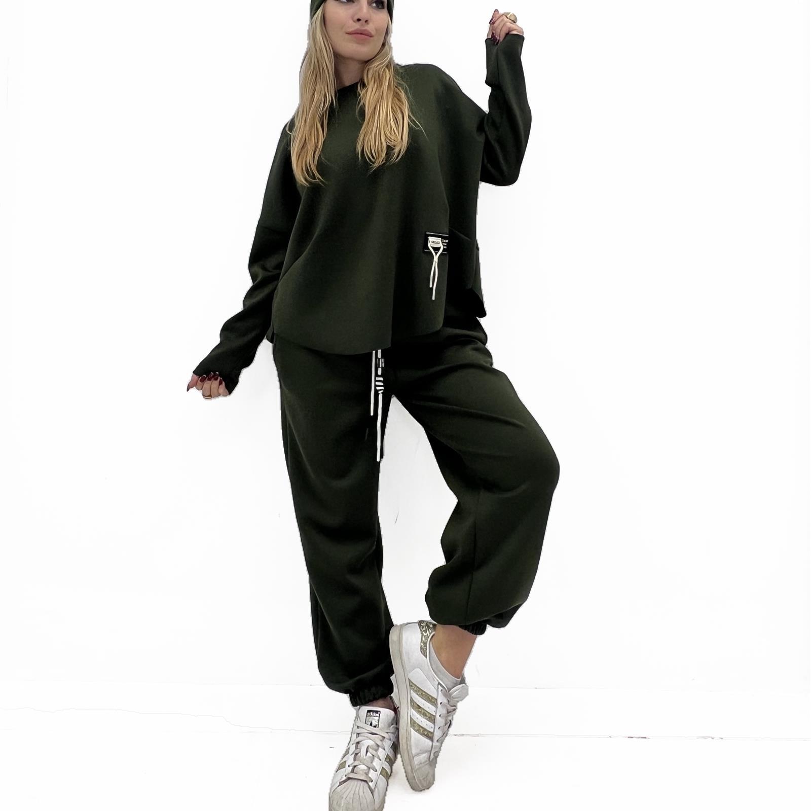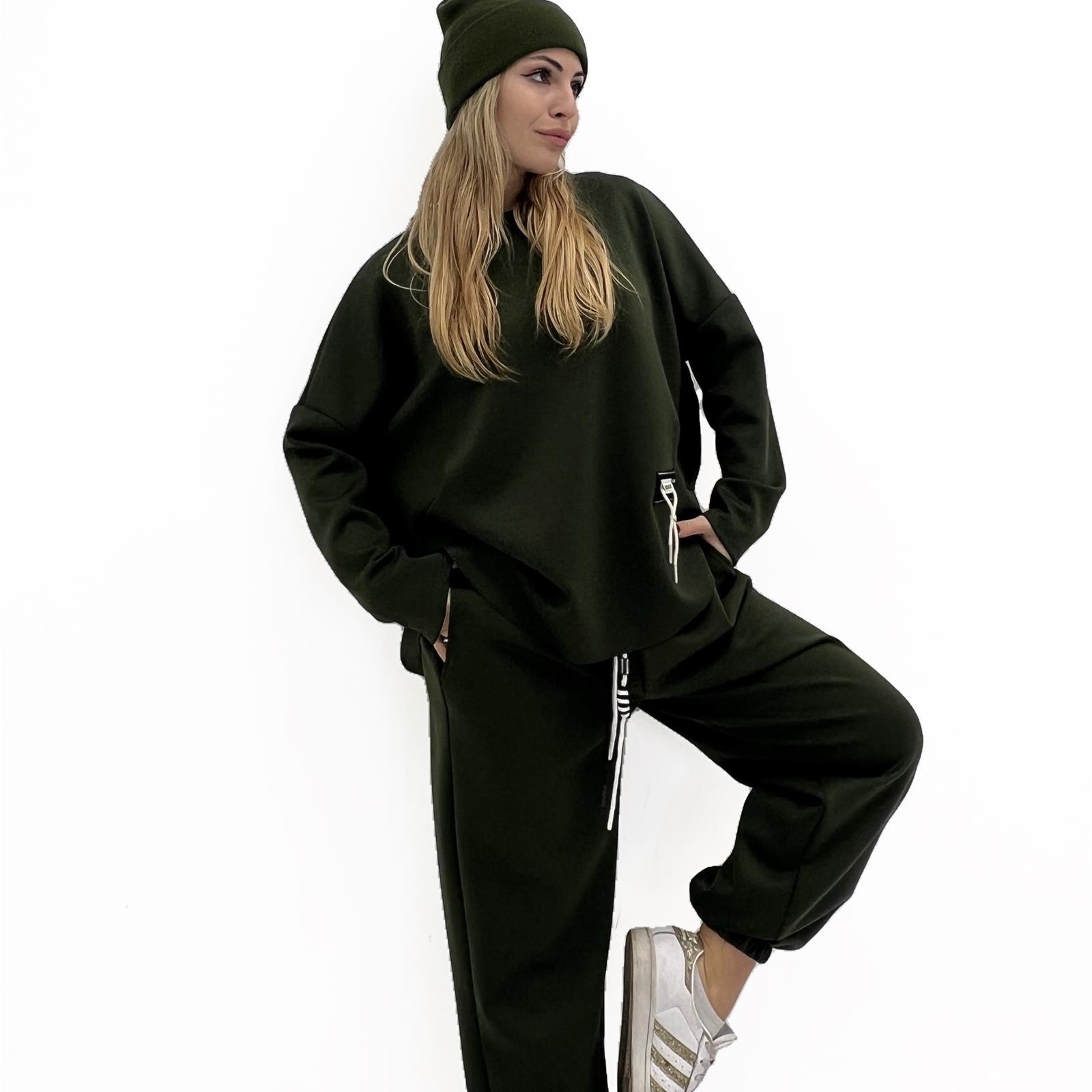 Pantalone con elastico in vita con laccio regolabile, tasche laterali e polsino sul fondo