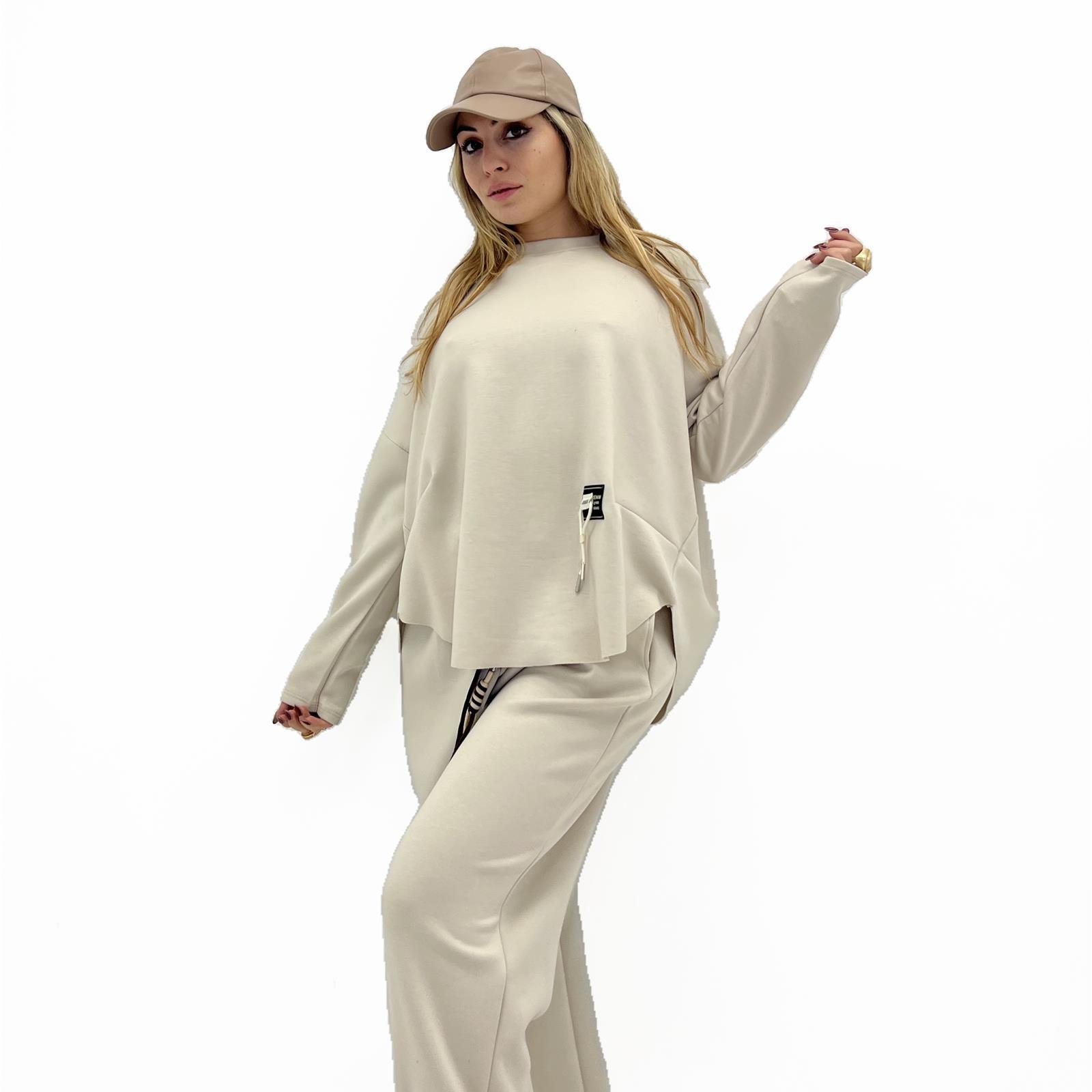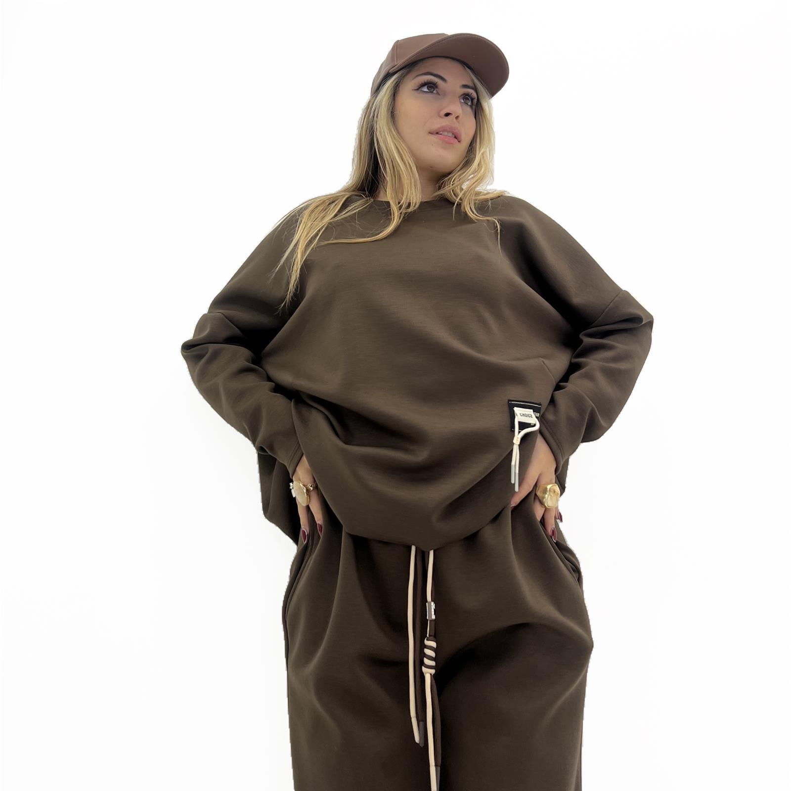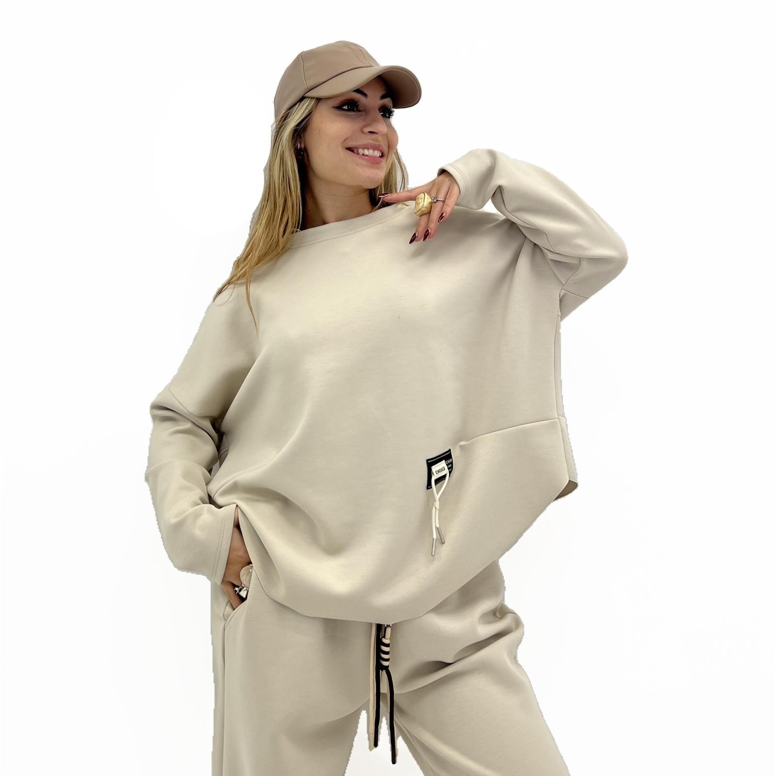 Maglia over girocollo , taglio vivo sul fondo e patch sul lato