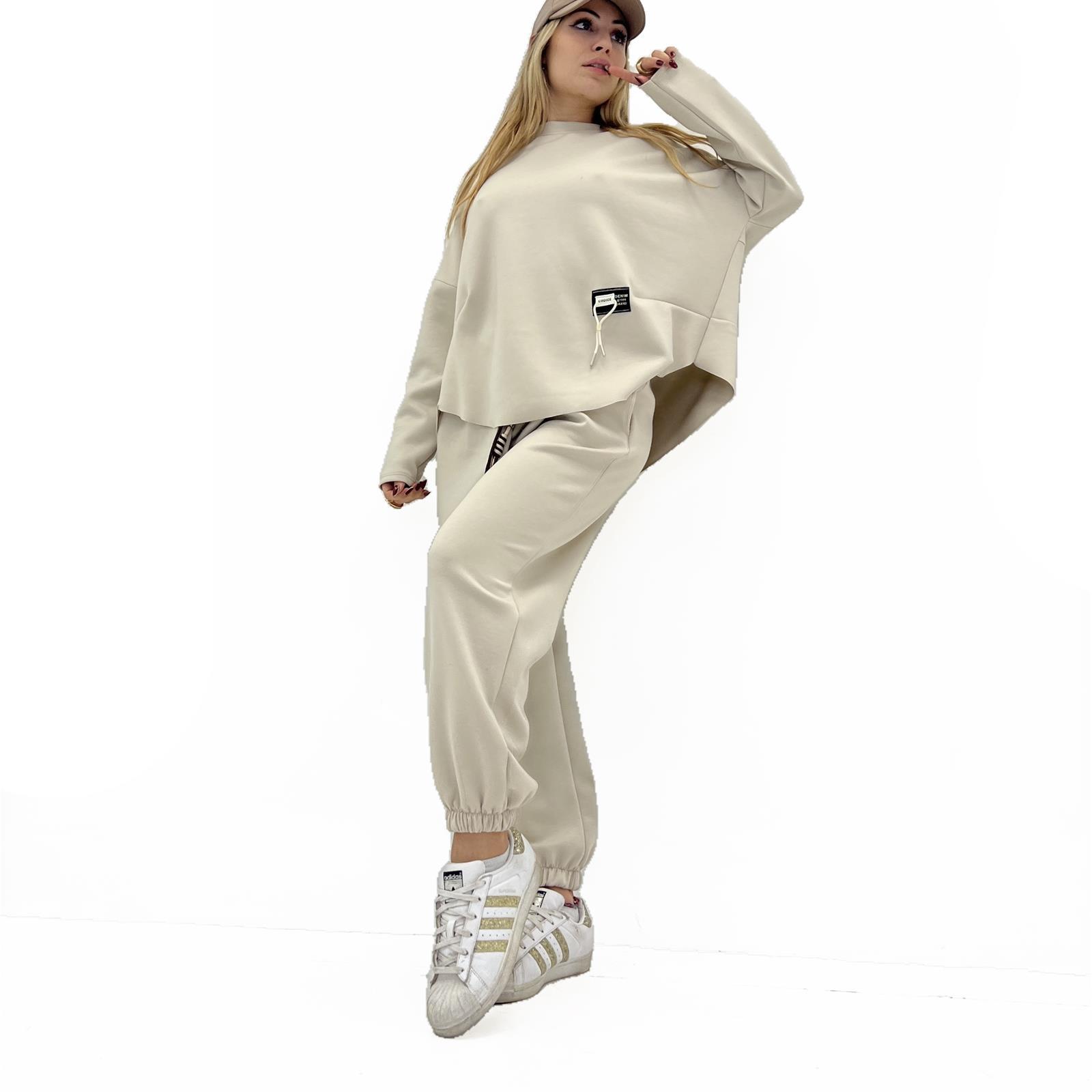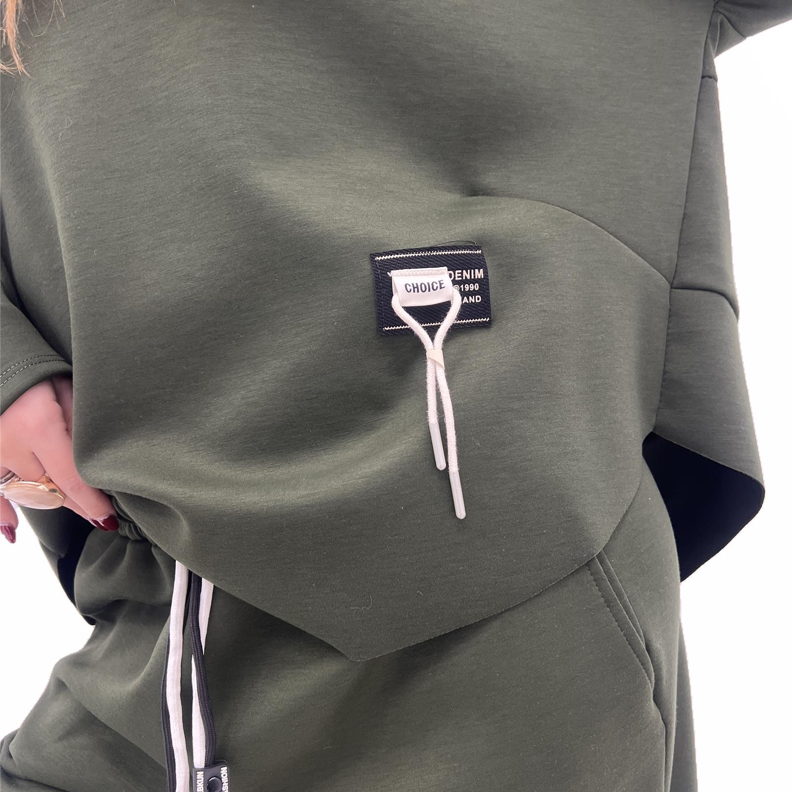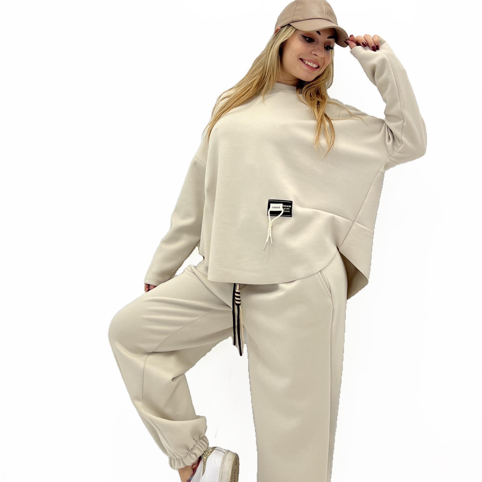 Maglia over girocollo , taglio vivo sul fondo e patch sul lato