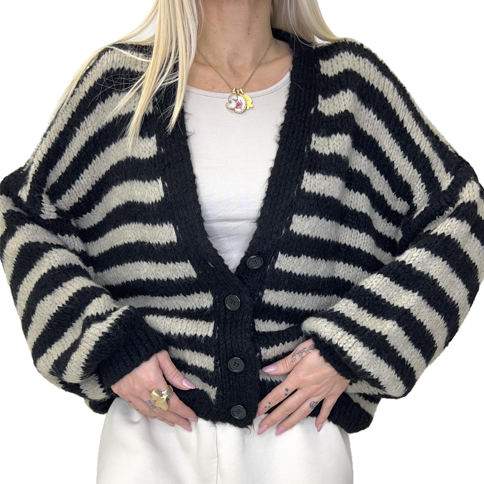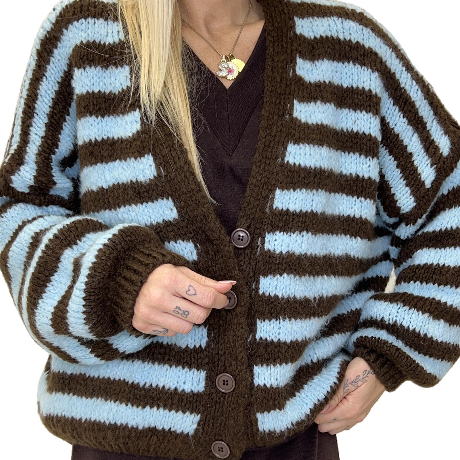 cardigan a righe con quattro bottoni di chiusura