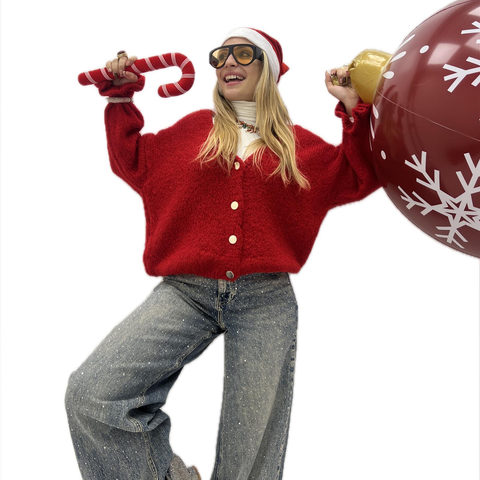Cardigan con bottoni reali sul davanti e polsino leggermente arricciato che crea un effetto balloon leggero
