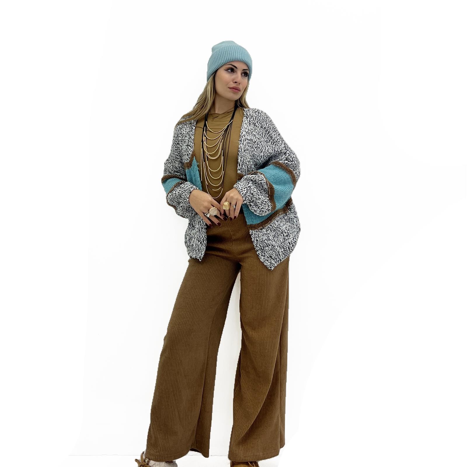 Cardigan senza bottone con alternanza di colore