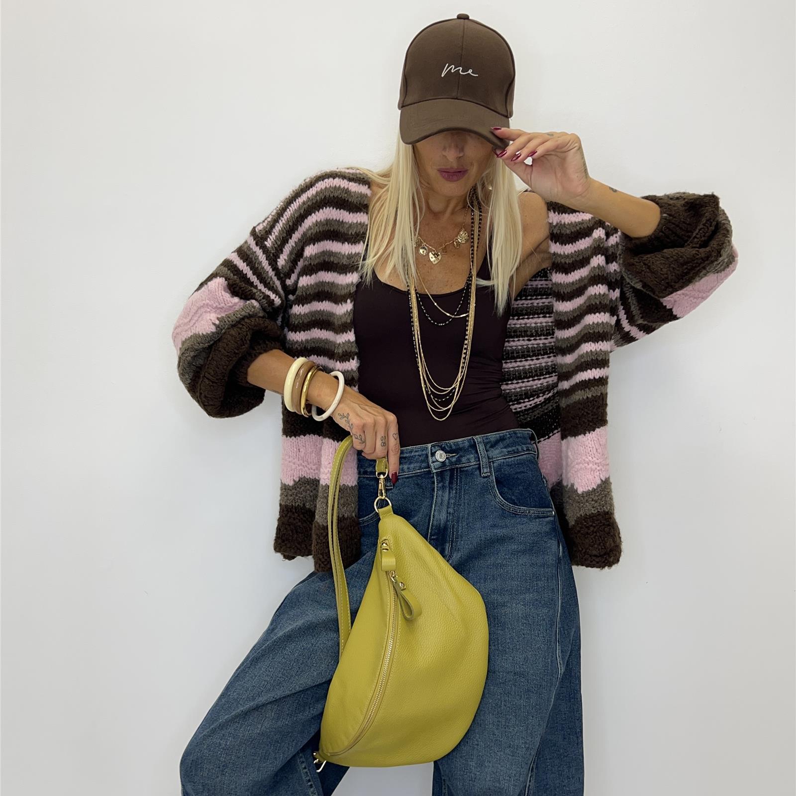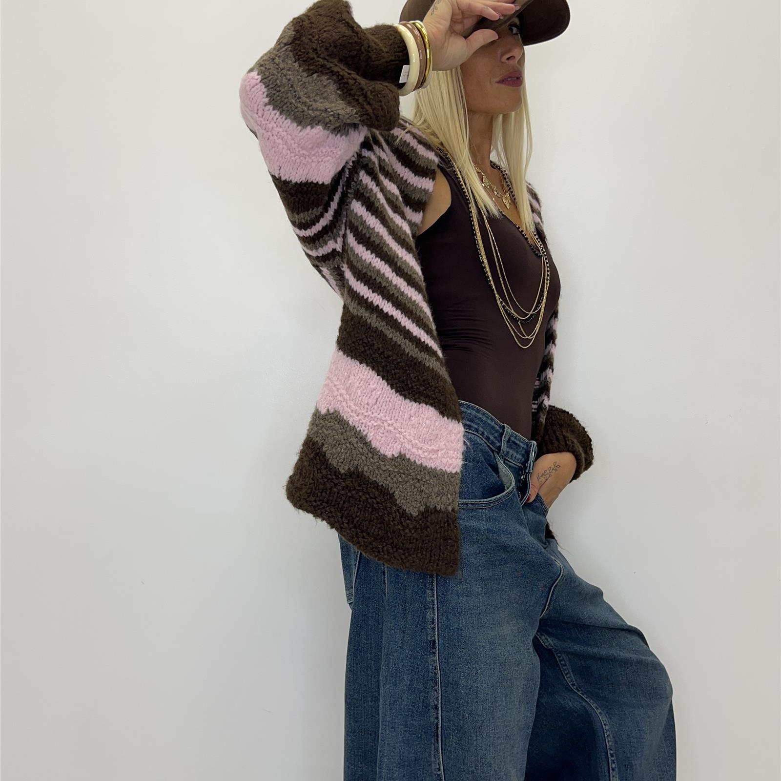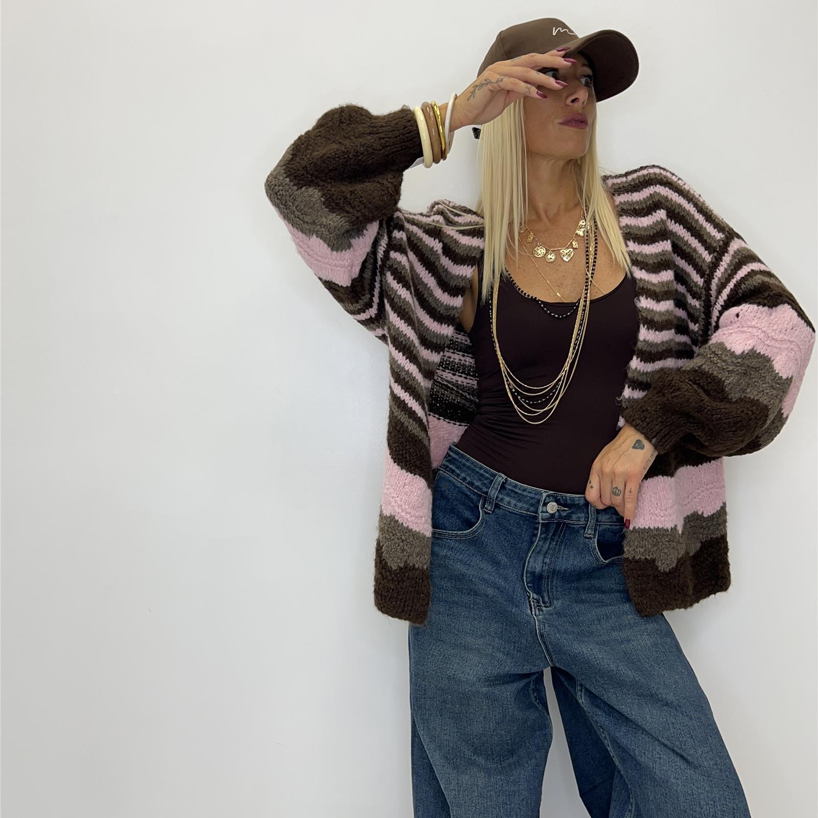 Cardigan corto fantasia rigata senza bottone di chiusura