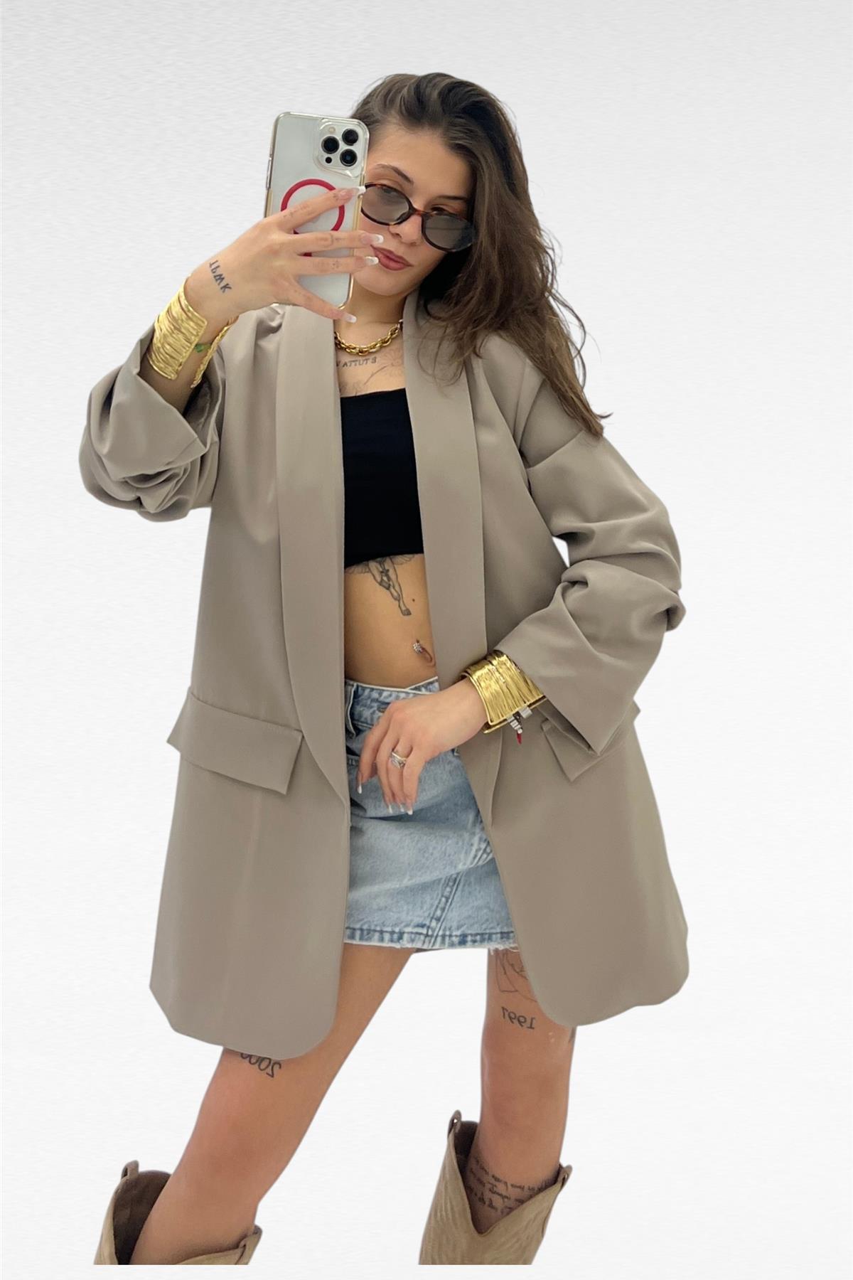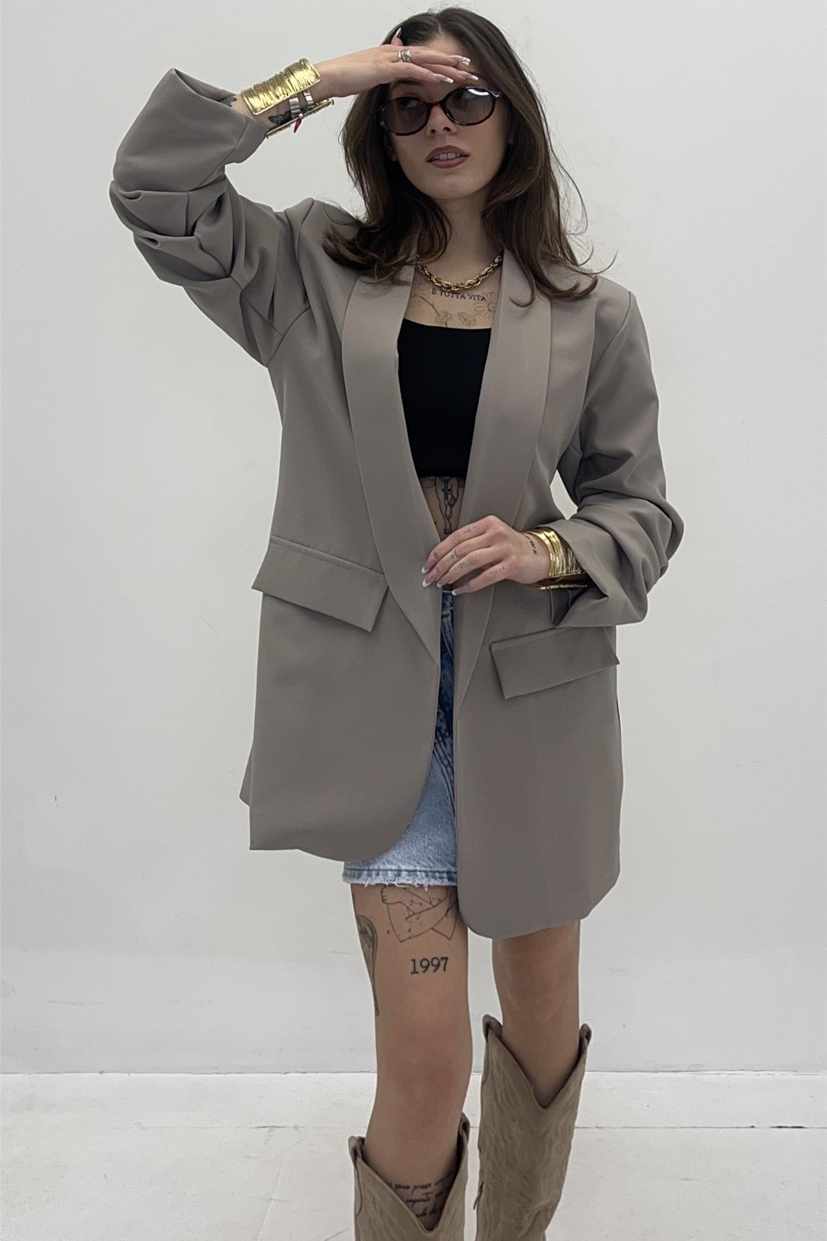 Giacca casual senza bottoni con maniche 3/4 arricciate. Foderata e con spallini imbottiti