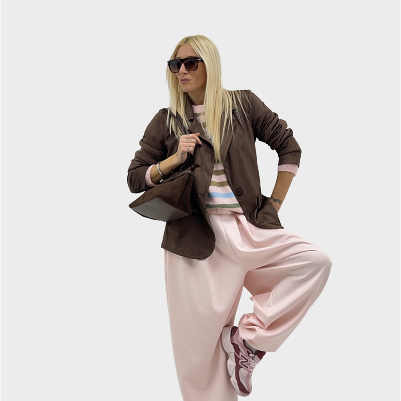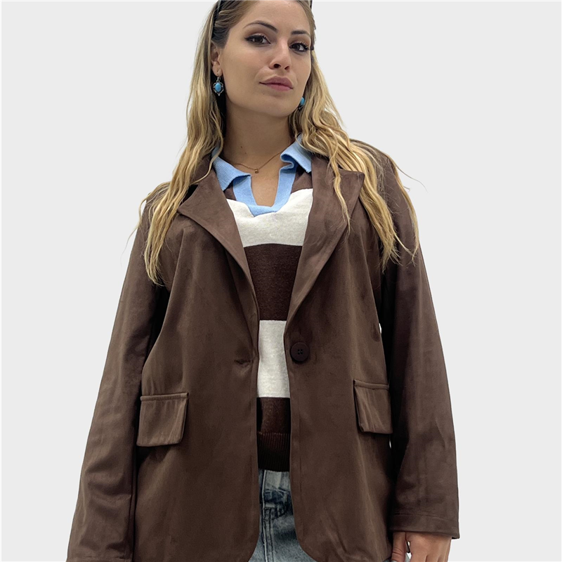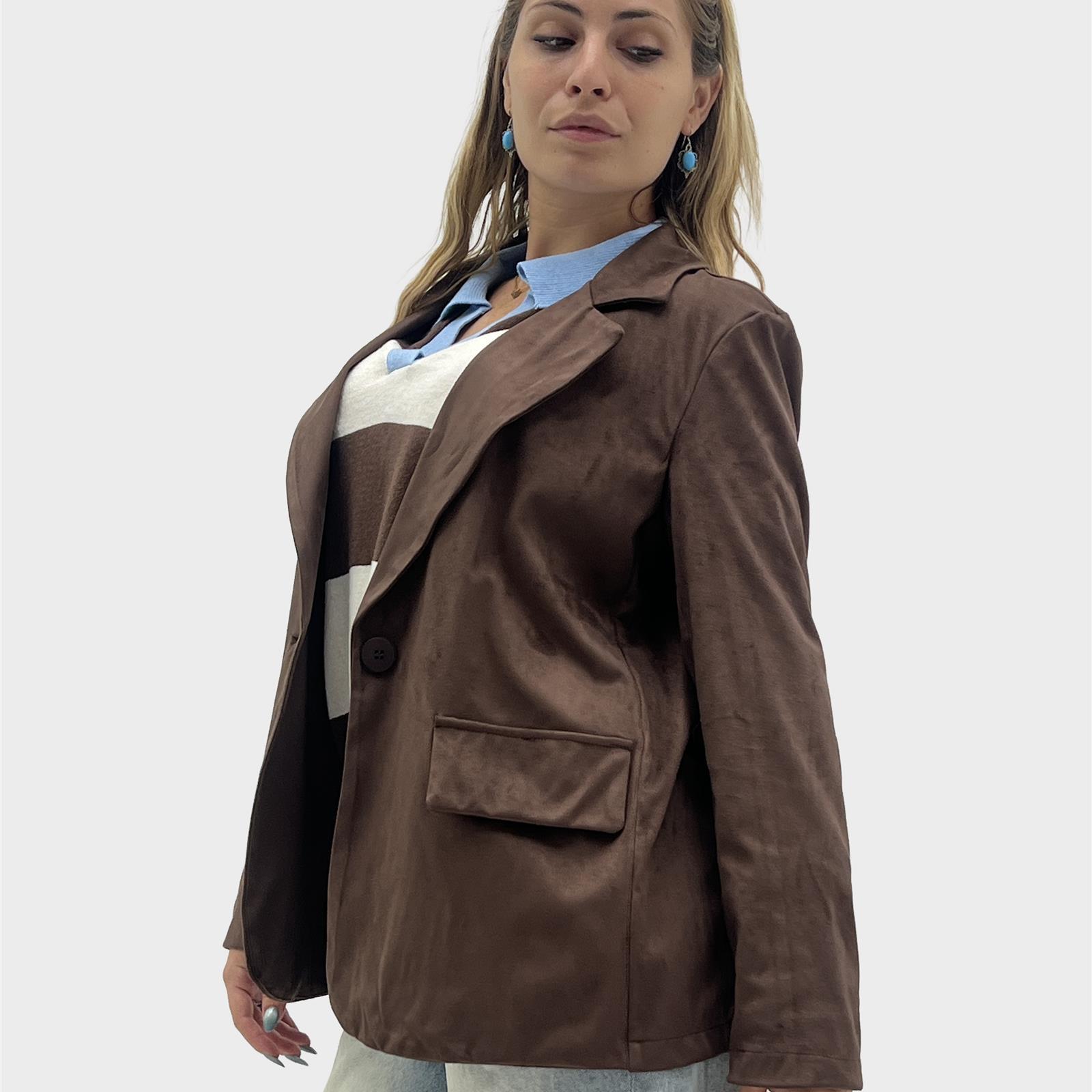 Giacca in alcantara con tasche sul davanti decorative, con bottone per chiusura