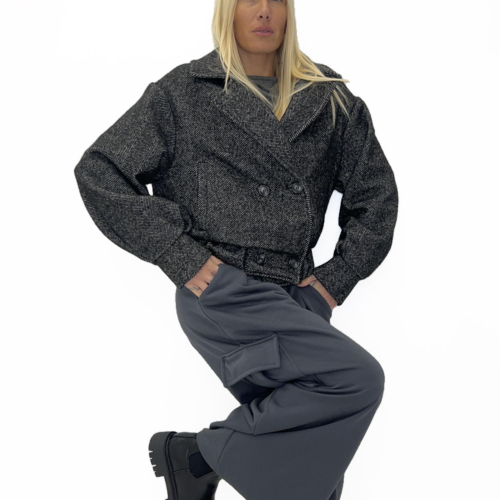 Giubbotto foderato con colletto, doppio bottone frontale ed elastico sul fondo