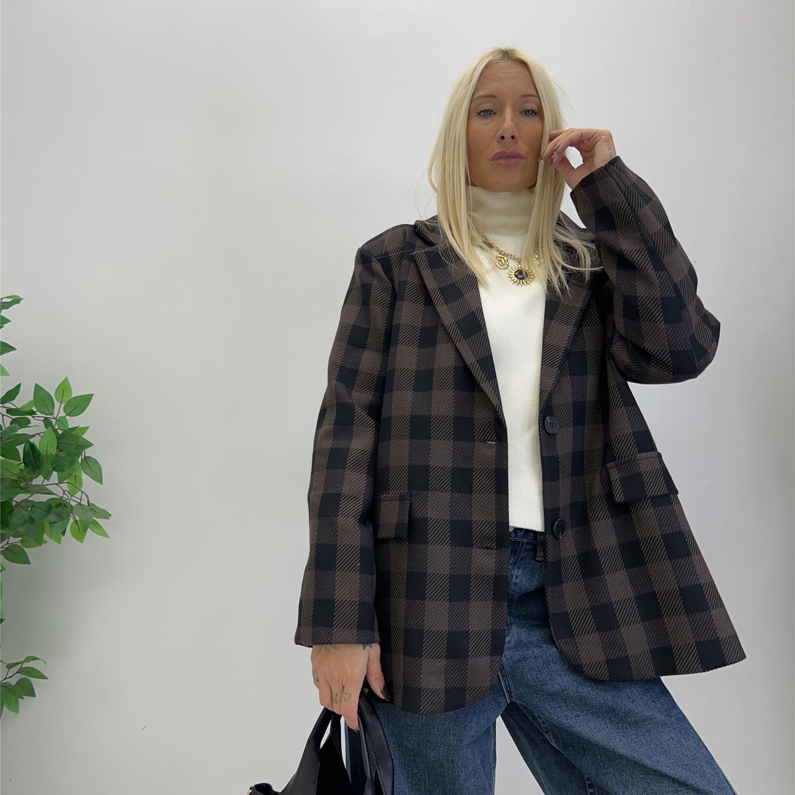 Giacca foderata, con spallino imbottito e bottone di chiusura